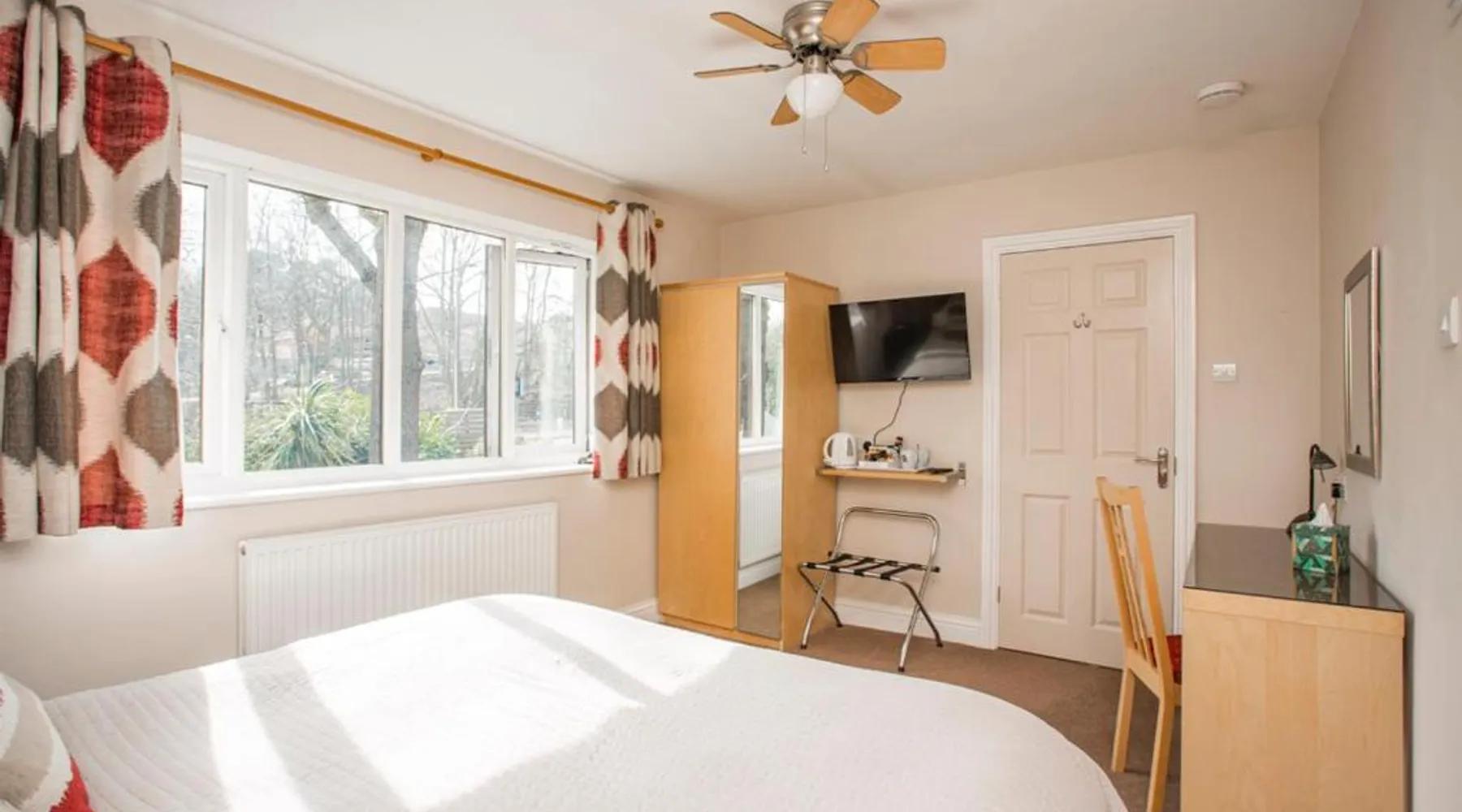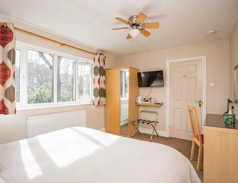 Comfortable Accommodations: Pretty Maid House B&B in Sevenoaks offers four-star comfort with private bathrooms, walk-in showers, and free WiFi. Each room includes a work desk, TV, and electric kettle. Convenient Facilities: Guests benefit from free on-site parking, an electric vehicle charging station, and housekeeping service. Additional amenities include bathrobes, a kitchen, and a dining area. Delicious Breakfast: A continental or full English/Irish breakfast is served daily. Free toiletries and a hairdryer enhance the morning experience. Prime Location: Located 29 mi from London City Airport, the property is near attractions such as Ightham Mote (5.6 mi) and Hever Castle (17 mi). Highly rated for its breakfast and host. This room features a super king-size bed and an en-suite shower room with hairdryer. It includes a flat-screen Free view TV with a DVD player, a desk and a USB charging point, and tea/coffee making facilities and mini fridge.