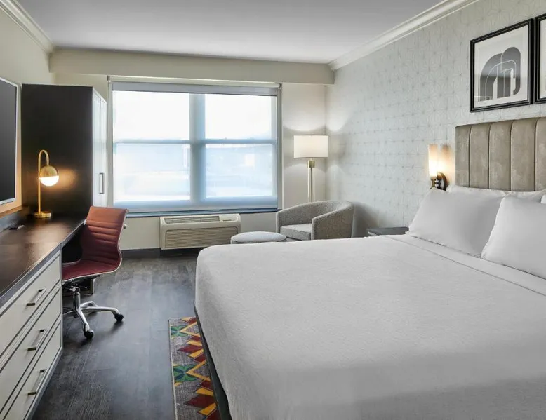 Hotel Indigo Cleveland Downtown is located in downtown Cleveland and is 1 mi from the Rock & Roll Hall of Fame. The hotel offers an on-site restaurant and free WiFi. Each room at the Hotel Indigo Cleveland Downtown features cable TV and in-room coffee makers. A large work desk is also provided. Hair dryers and ironing facilities are also provided in the rooms. Restaurant Headliner Bar and Eatery serves breakfast and dinner. A fitness center, four meeting rooms, and a business center are available. Rocket Mortgage Fieldhouse is located directly across the street and is within walking distance to the House of Blues Cleveland, Progressive Field, and the Cleveland Children’s Museum. The Cleveland Browns Stadium and the Botanical Garden are also near the hotel. The spacious double room features air conditioning, a tea and coffee maker, as well as a private bathroom boasting a walk-in shower and a hairdryer. This double room has a safe deposit box, heating and a flat-screen TV with cable channels. The unit has 2 beds.