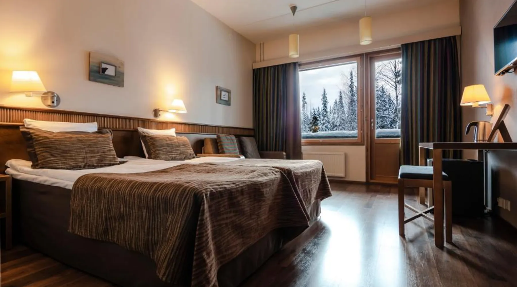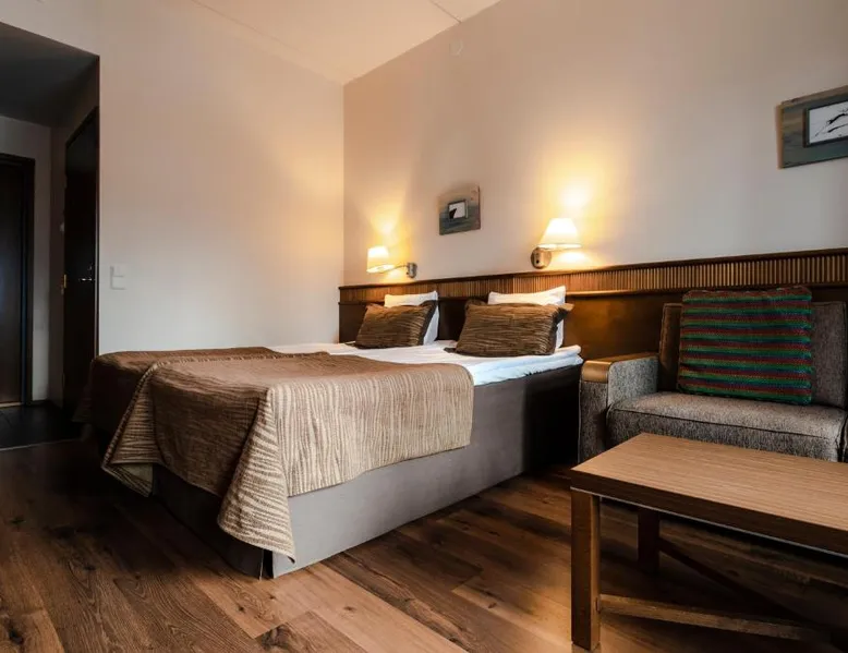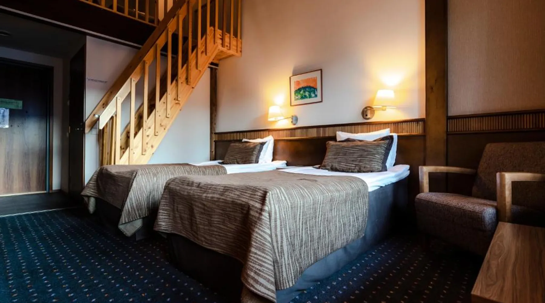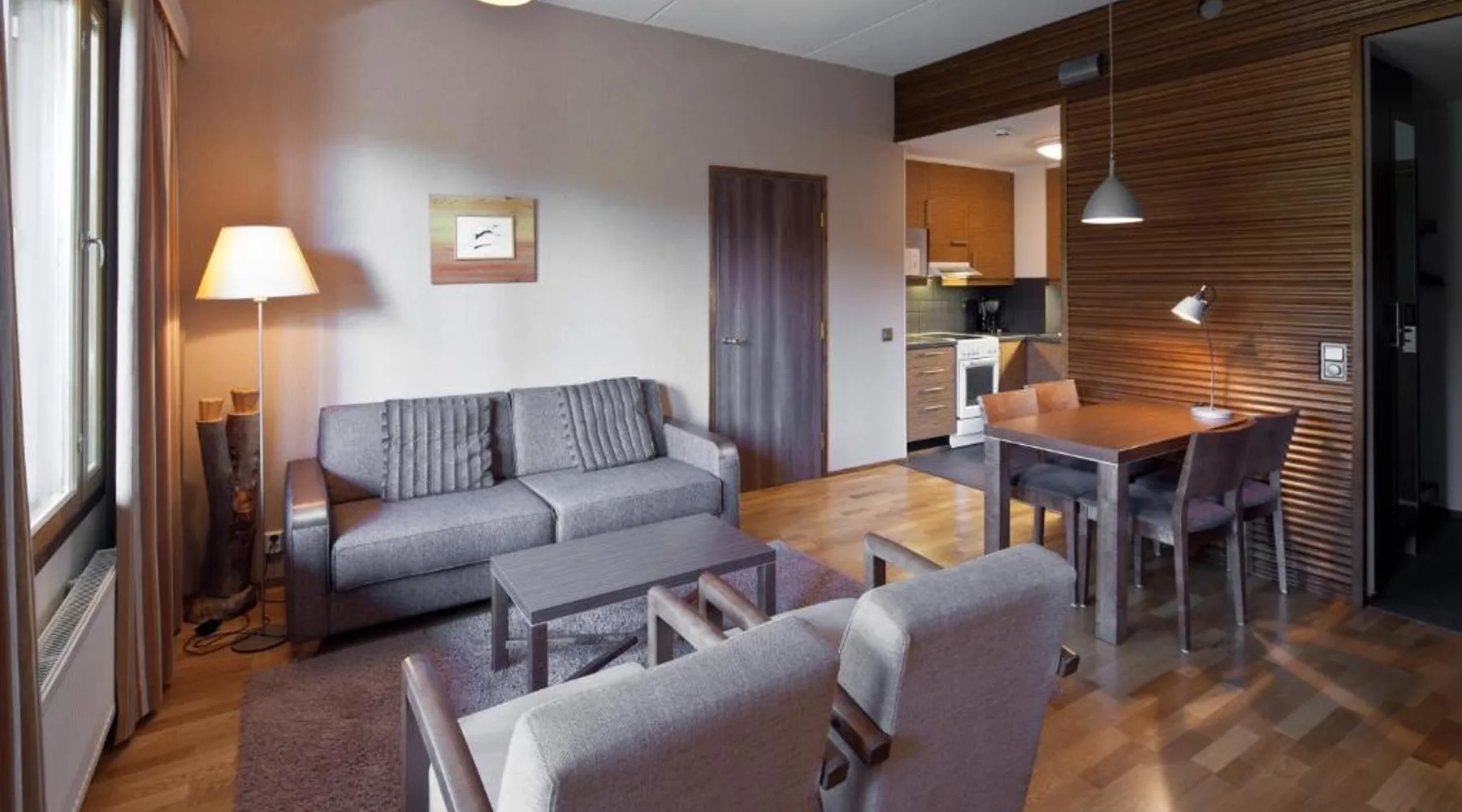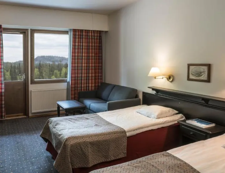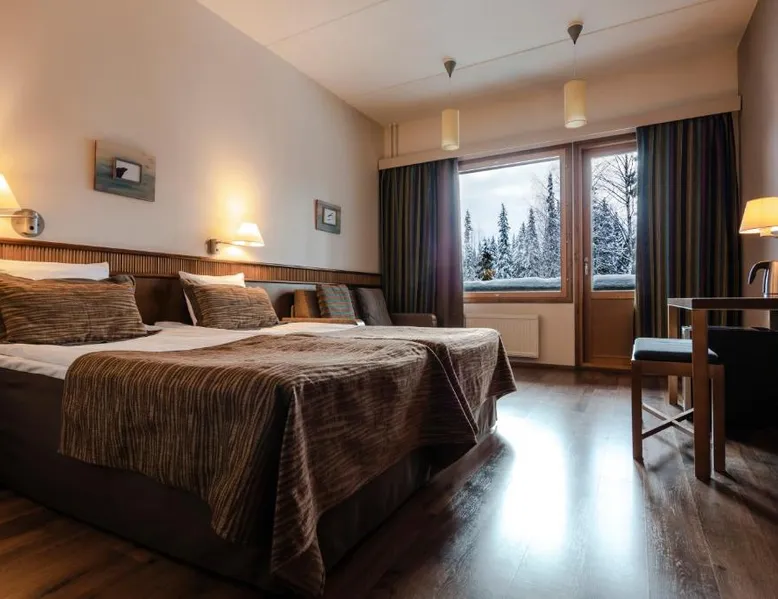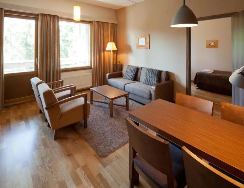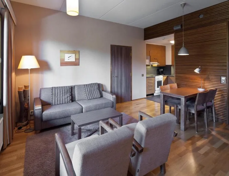 Spectacularly located by Pyhä-Luosto National Park, this spa hotel has 3 restaurants and 4 bars. Just about 90 min. drive from Rovaniemi Airport. Local public bus connection daily from Airport to the hotel. (extra charge) Accommodations options include rooms, cottages and apartments. WiFi is free. Lapland Hotel Luostotunturi’s rooms include free spa access and free WiFi. Most rooms offer panoramic views of Luosto Mountains. - Lapland Hotel Luostotunturi’s rooms and hotels apartments include free spa access. - Hotel apartments have a fully equipped kitchen and a private sauna. - In log cabins(silver pine cabins) have minikitchen, fireplace and sauna. - Pets are welcome, but we have limited amount of rooms/roomtypes available. If your pet is traveling with you, please check availibility from the Hotel. Amethyst Spa includes a multi-function pool, a gym and a sauna. Massage and many other treatments can be booked on site. Staff can help arrange guided ski trips and Northern Lights viewings. Spacious suite with private sauna, kitchen and a balcony. Most offer views of Luosto Mountains. Please note that pets are not allowed in this unit.