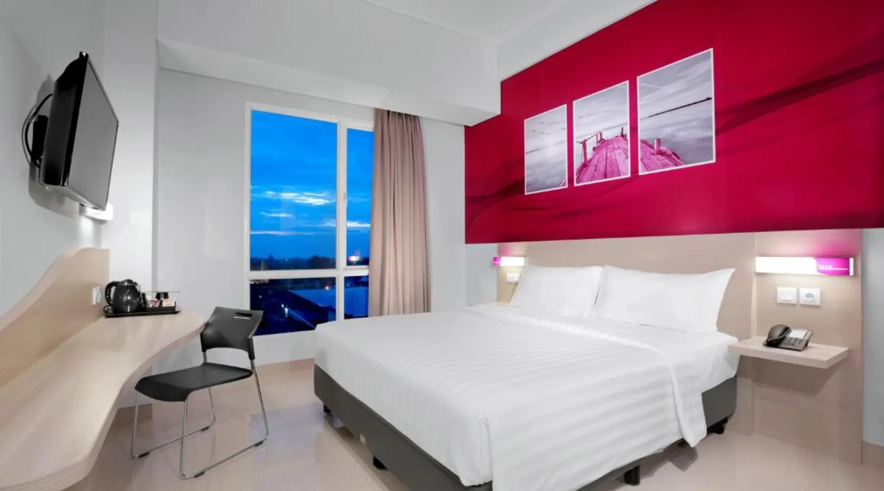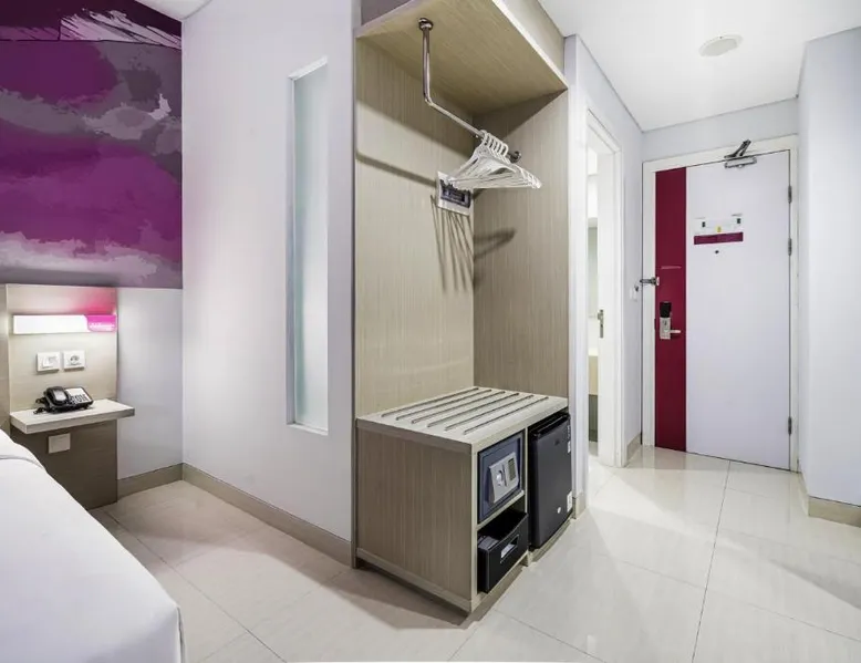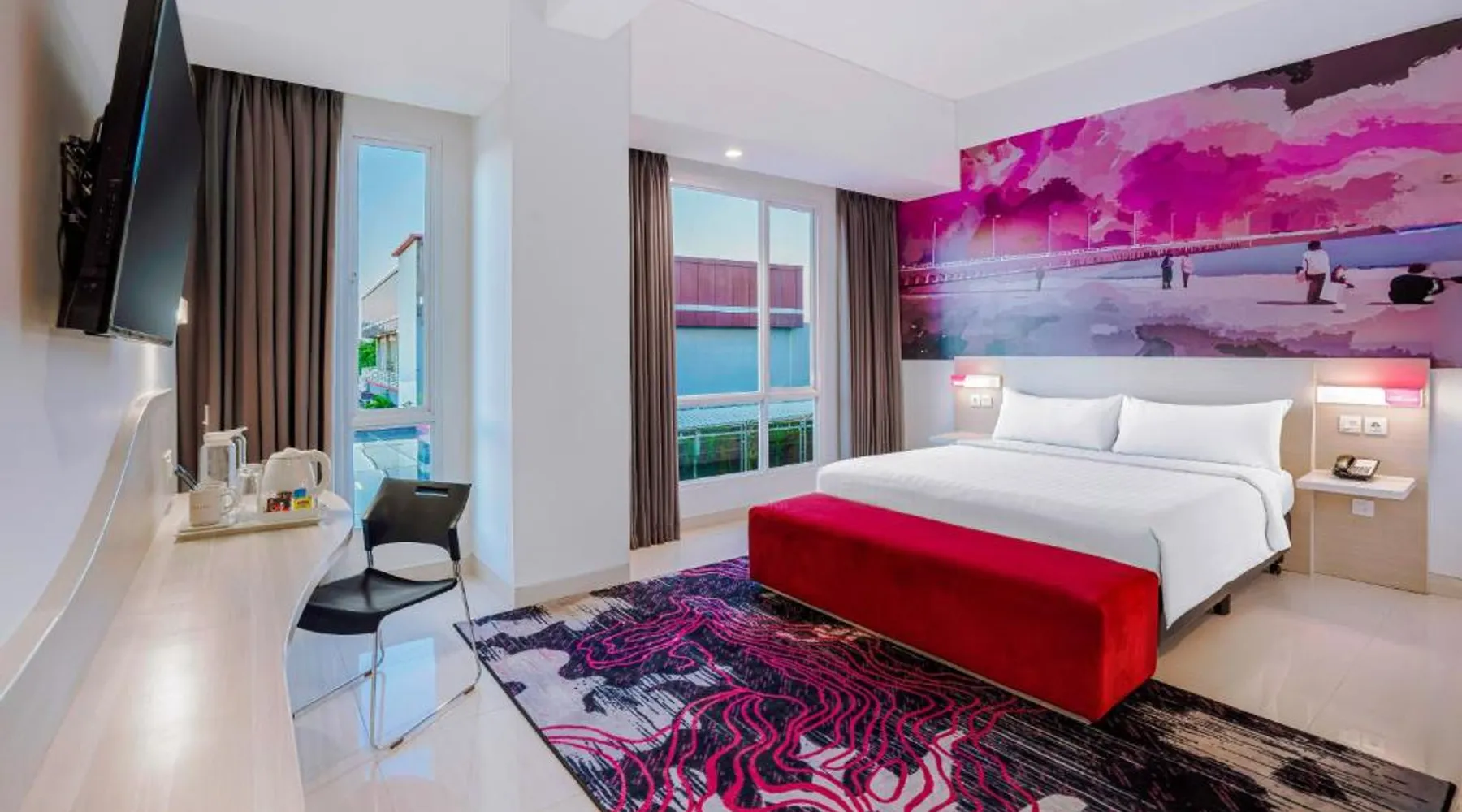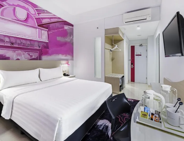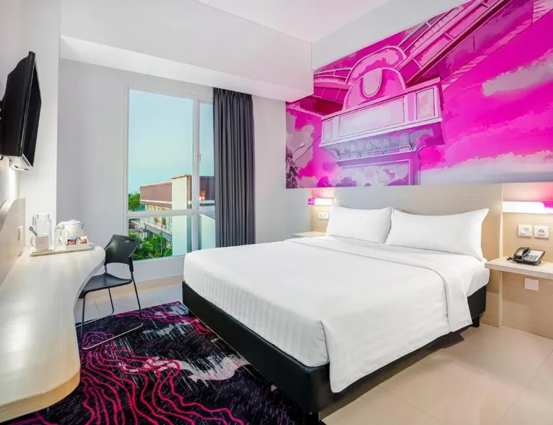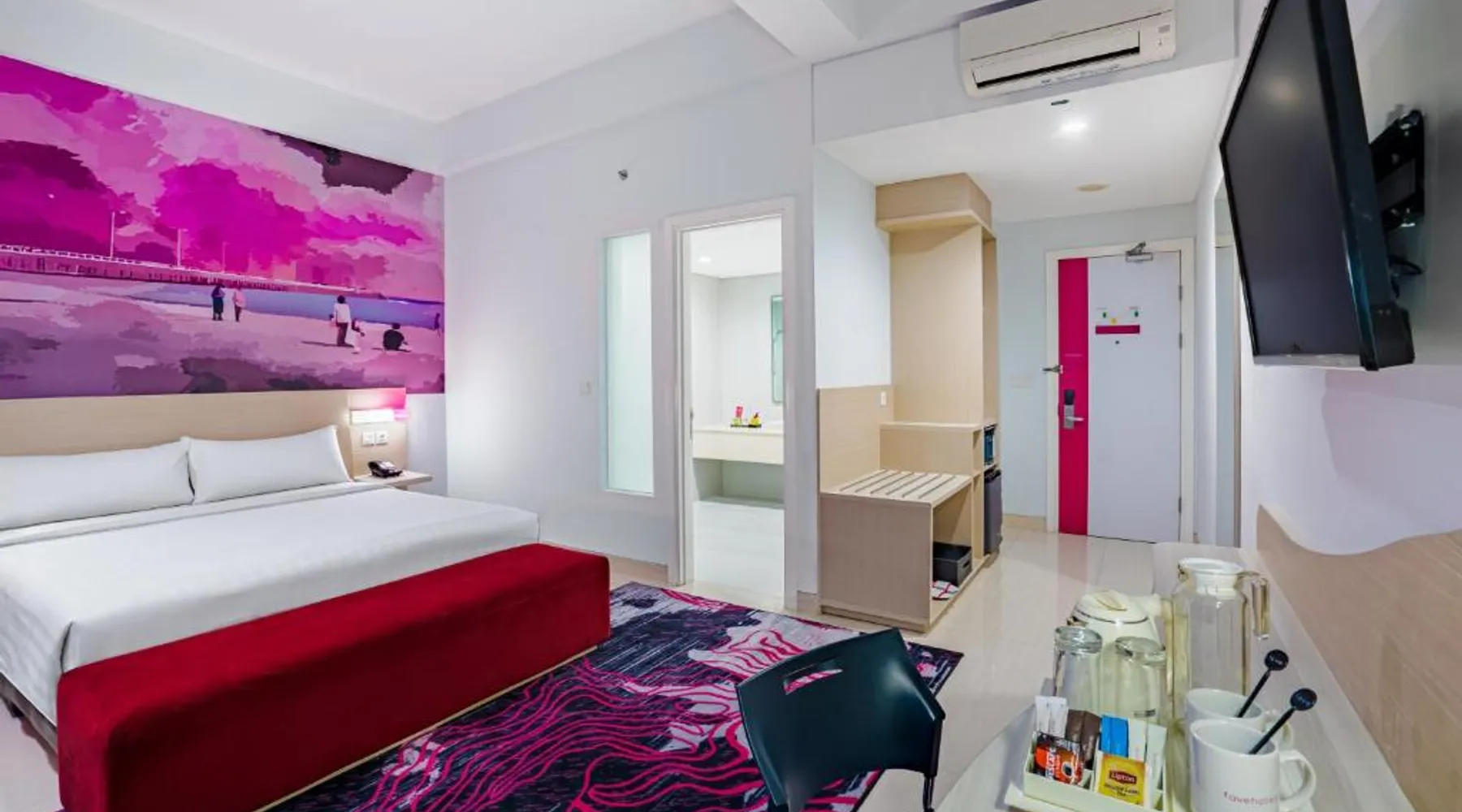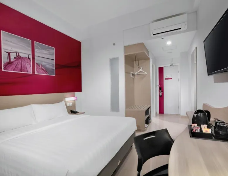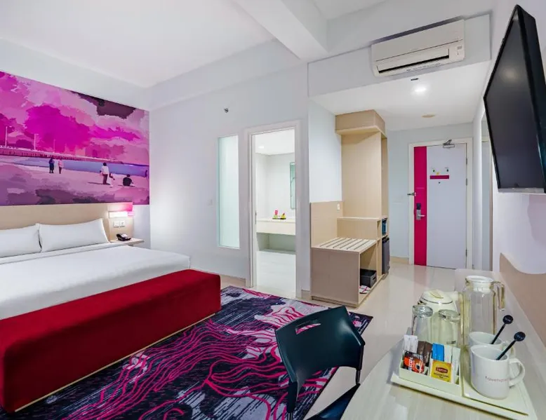 Comfortable Accommodations: favehotel Tuban in Tuban offers family rooms with air-conditioning, private bathrooms, and modern amenities. Each room includes a dining area, work desk, and free WiFi. Dining Experience: The family-friendly restaurant serves Indonesian cuisine for brunch, lunch, and dinner. Guests can enjoy live music and a relaxing terrace. Convenient Facilities: The hotel provides a terrace, restaurant, free WiFi, paid airport shuttle service, elevator, 24-hour front desk, concierge, housekeeping, room service, and free on-site private parking. Prime Location: Located 73 mi from Juanda International Airport, the hotel is 1.1 mi from Boom Beach and 23 mi from Lamongan Marine Tourism. Guests appreciate the convenient location, room cleanliness, and quietness. The spacious double room provides air conditioning, a tea and coffee maker, as well as a private bathroom featuring a shower and slippers. This double room features a wardrobe, a safe deposit box and a flat-screen TV. The unit offers 1 bed.