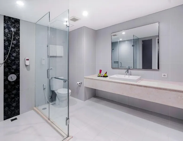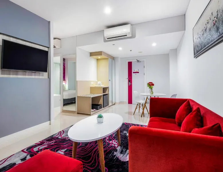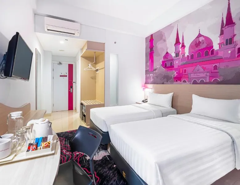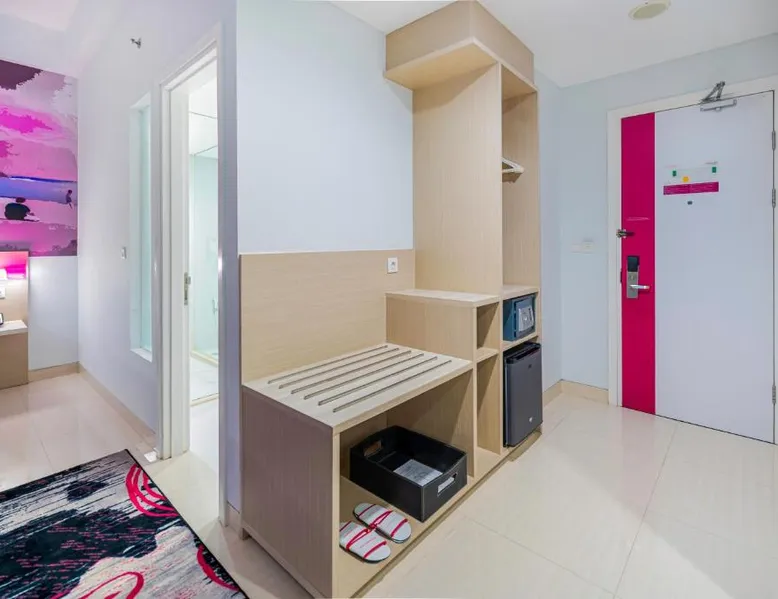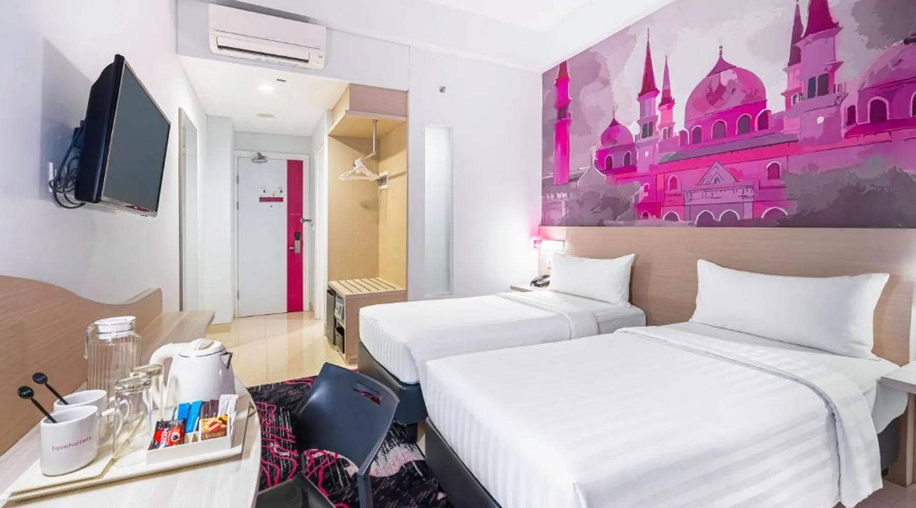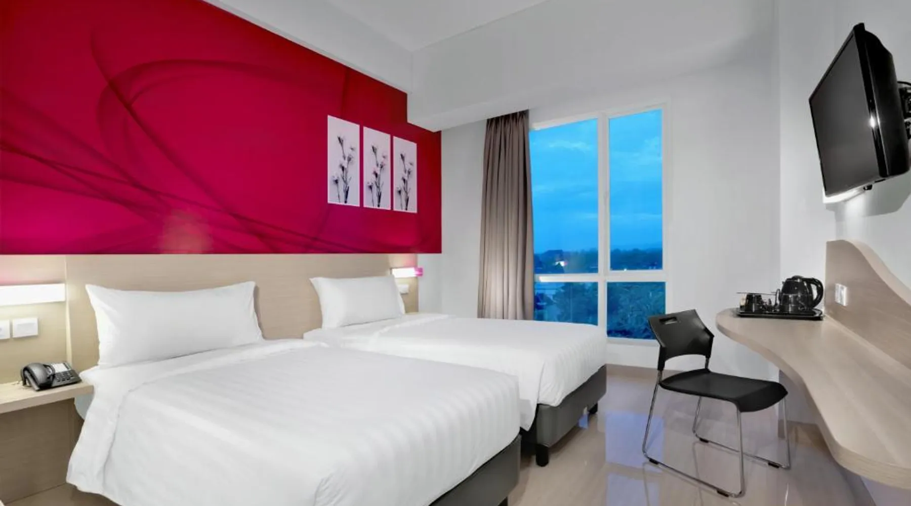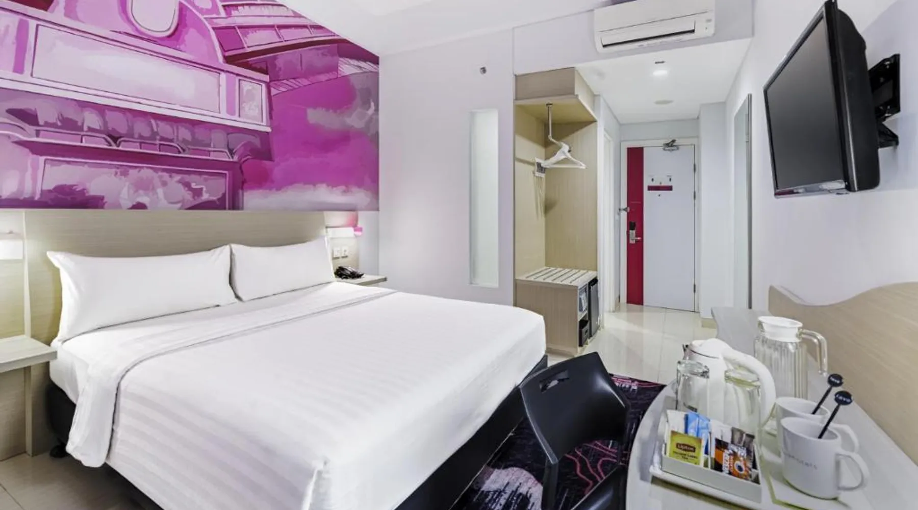 Comfortable Accommodations: favehotel Tuban in Tuban offers family rooms with air-conditioning, private bathrooms, and modern amenities. Each room includes a dining area, work desk, and free WiFi. Dining Experience: The family-friendly restaurant serves Indonesian cuisine for brunch, lunch, and dinner. Guests can enjoy live music and a relaxing terrace. Convenient Facilities: The hotel provides a terrace, restaurant, free WiFi, paid airport shuttle service, elevator, 24-hour front desk, concierge, housekeeping, room service, and free on-site private parking. Prime Location: Located 73 mi from Juanda International Airport, the hotel is 1.1 mi from Boom Beach and 23 mi from Lamongan Marine Tourism. Guests appreciate the convenient location, room cleanliness, and quietness. The spacious double room provides air conditioning, a tea and coffee maker, as well as a private bathroom featuring a shower and slippers. This double room features a wardrobe, a safe deposit box and a flat-screen TV. The unit offers 1 bed.