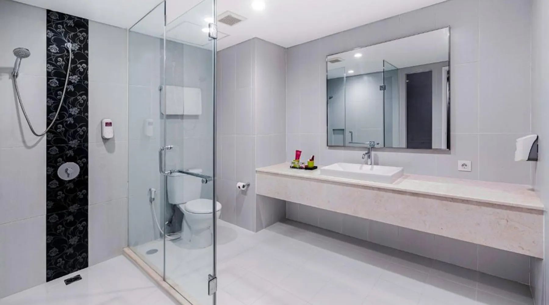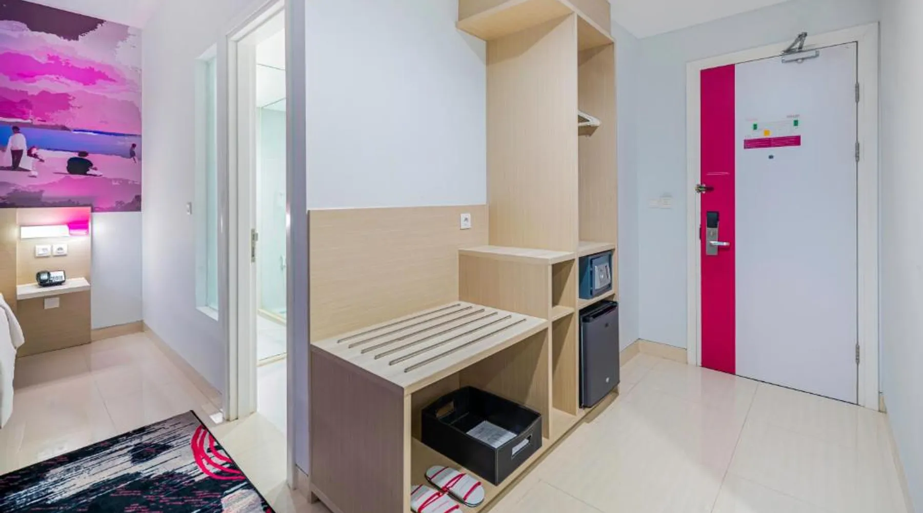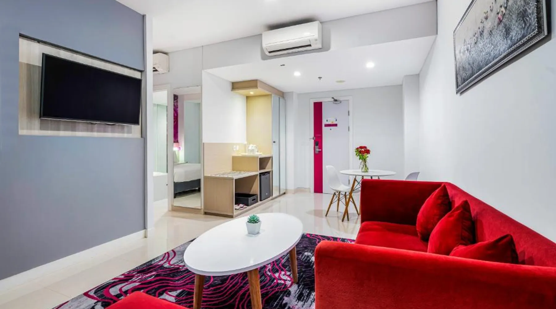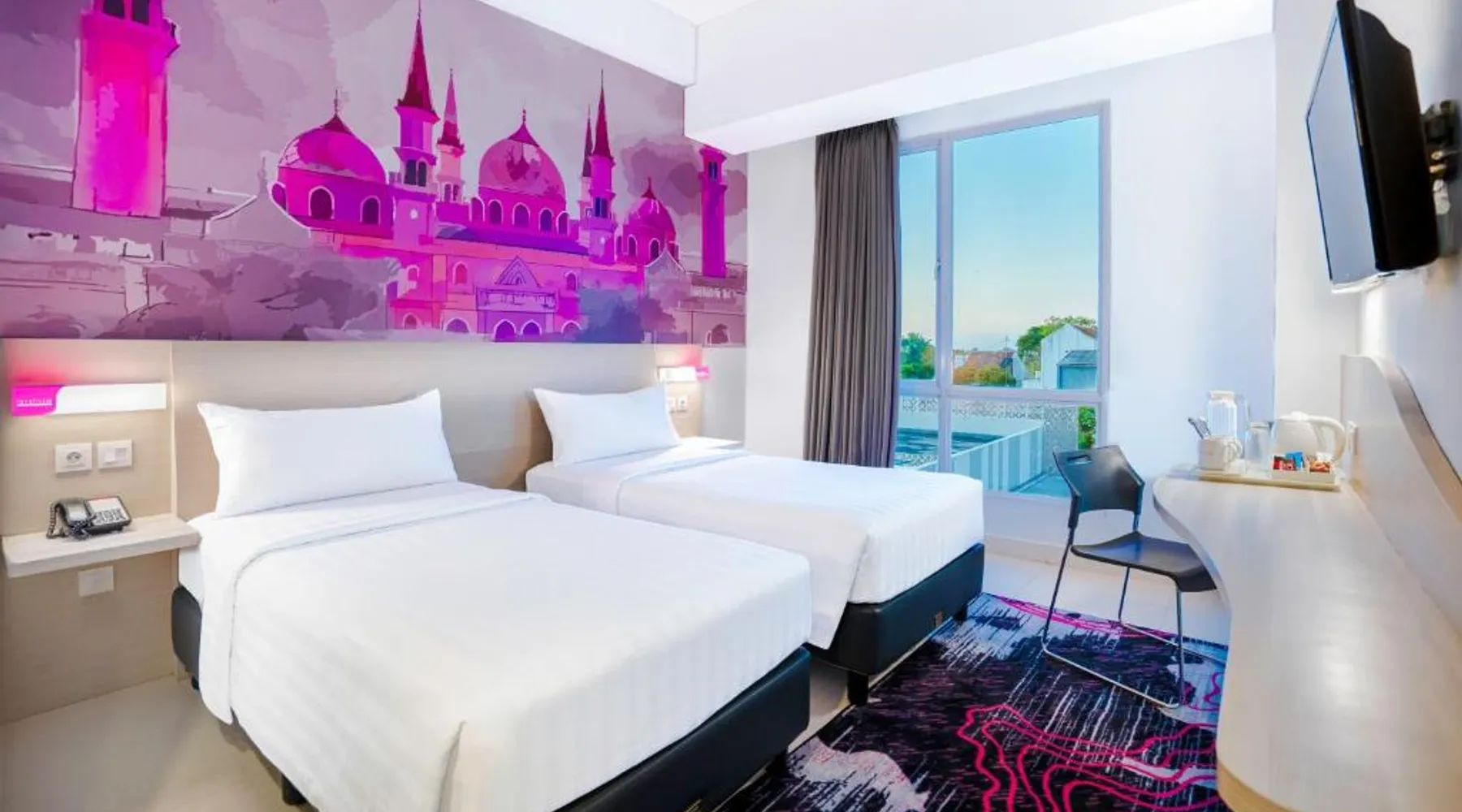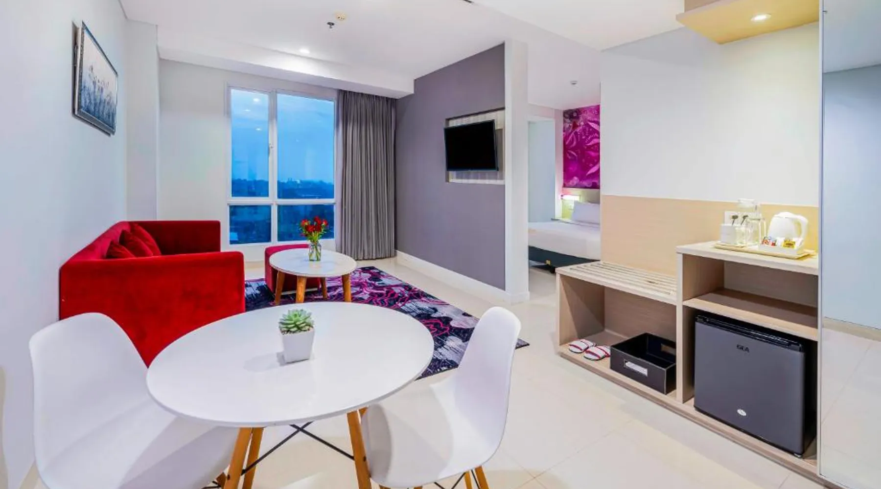 Comfortable Accommodations: favehotel Tuban in Tuban offers family rooms with air-conditioning, private bathrooms, and modern amenities. Each room includes a dining area, work desk, and free WiFi. Dining Experience: The family-friendly restaurant serves Indonesian cuisine for brunch, lunch, and dinner. Guests can enjoy live music and a relaxing terrace. Convenient Facilities: The hotel provides a terrace, restaurant, free WiFi, paid airport shuttle service, elevator, 24-hour front desk, concierge, housekeeping, room service, and free on-site private parking. Prime Location: Located 73 mi from Juanda International Airport, the hotel is 1.1 mi from Boom Beach and 23 mi from Lamongan Marine Tourism. Guests appreciate the convenient location, room cleanliness, and quietness. The spacious double room provides air conditioning, a tea and coffee maker, as well as a private bathroom featuring a shower and slippers. This double room features a wardrobe, a safe deposit box and a flat-screen TV. The unit offers 1 bed.
