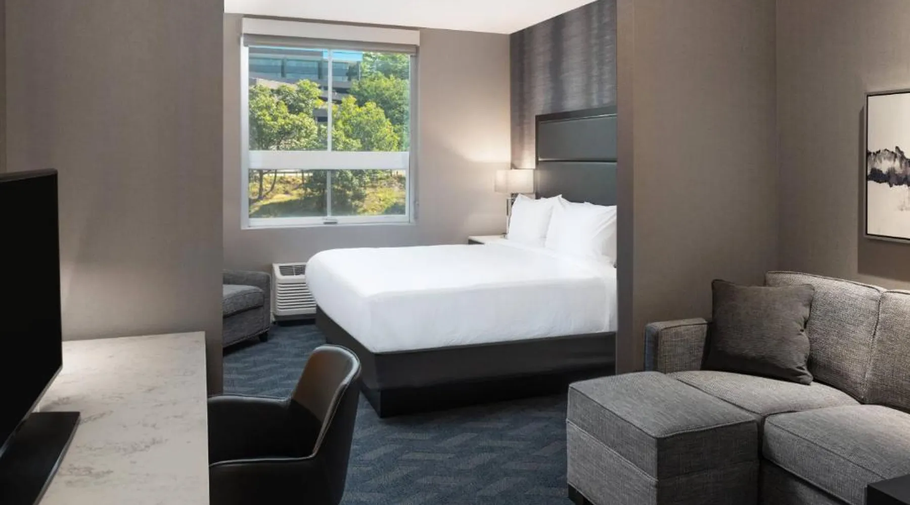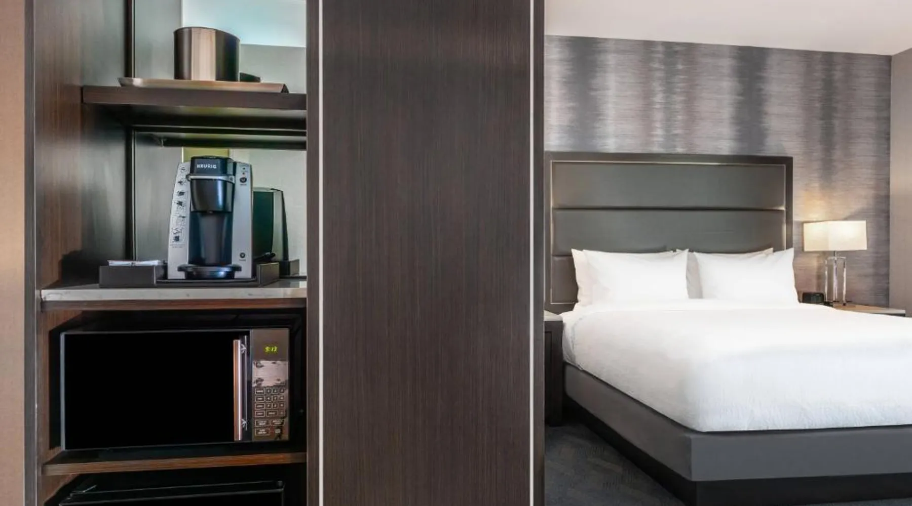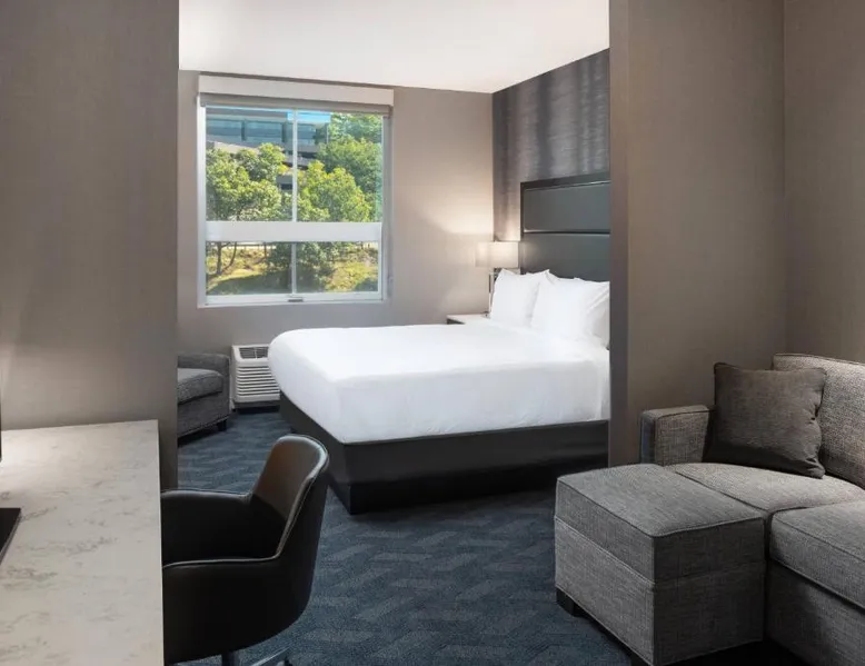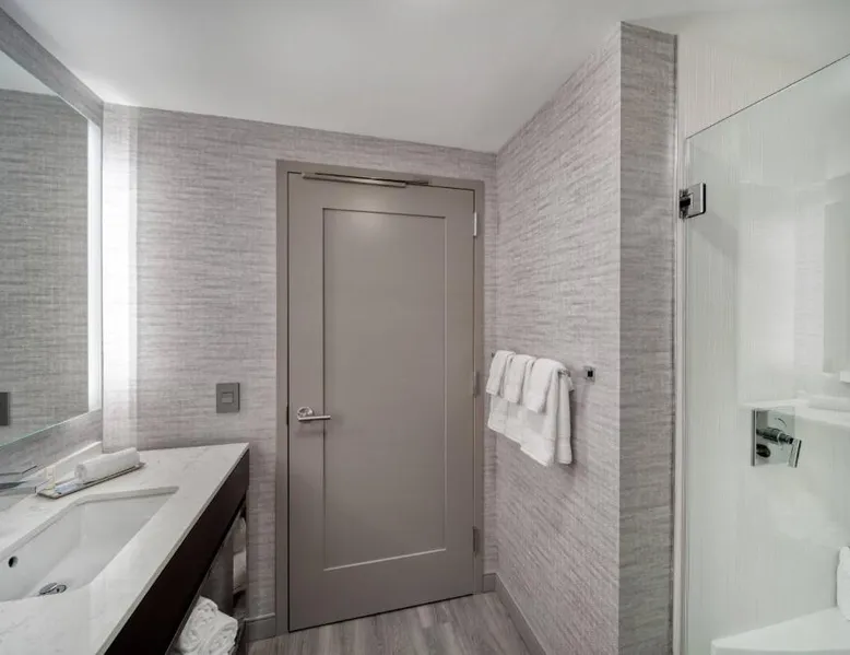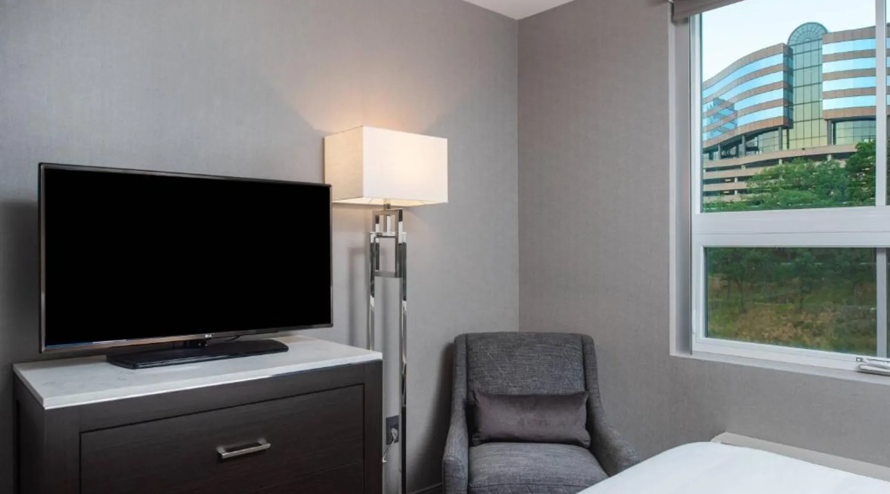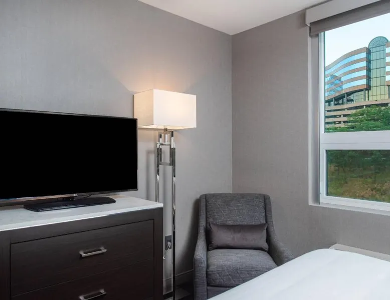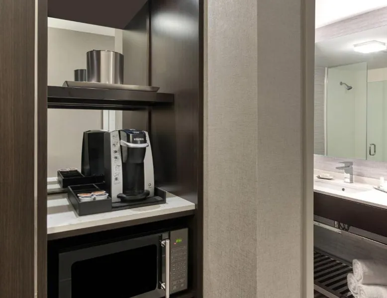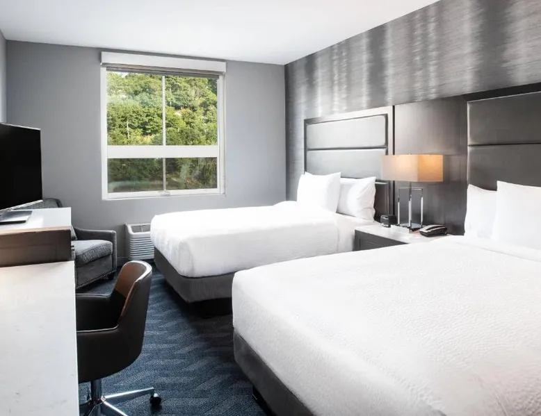 Comfortable Accommodations: Fairfield Inn & Suites by Marriott Boston Waltham in Waltham offers family rooms with air-conditioning, private bathrooms, and free WiFi. Each room includes a work desk, TV, and wardrobe. Leisure Facilities: Guests can enjoy a saltwater swimming pool, indoor pool, fitness center, and free bicycles. The property also features a lounge, fitness room, and outdoor seating area. Dining Options: The family-friendly restaurant serves American cuisine with a buffet breakfast. Additional amenities include a bar, minimarket, and electric vehicle charging station. Nearby Attractions: Located 5 mi from Minute Man National Historical Park and 3 mi from Brandeis University, the hotel is also close to Paint 'N Pour and Moody Street Historic District. The suite has 1 bedroom and 1 bathroom with a shower and free toiletries. The suite features carpeted floors, a seating area with a flat-screen TV with streaming services, air conditioning, a tea and coffee maker, as well as a wardrobe. The unit has 2 beds.