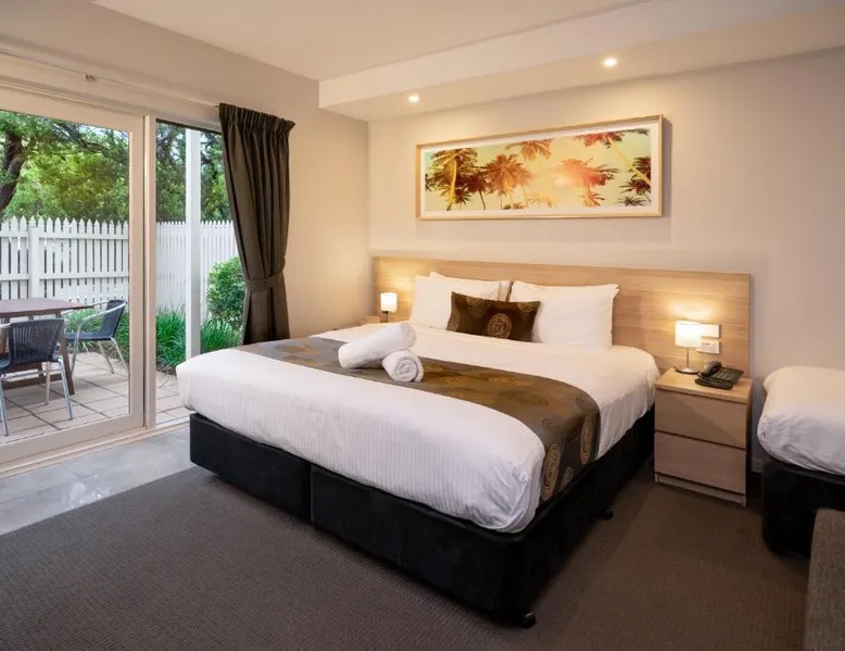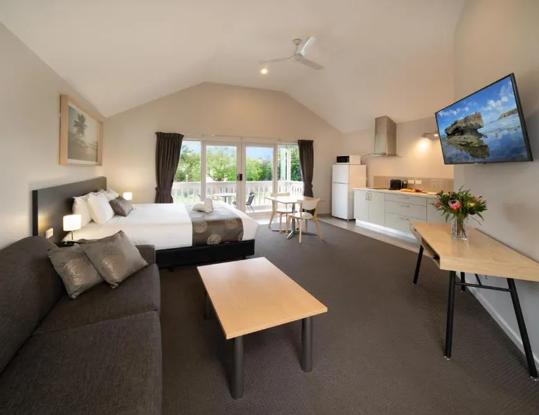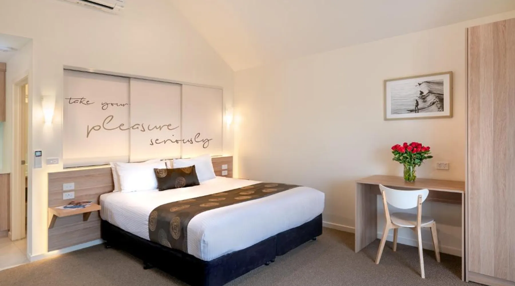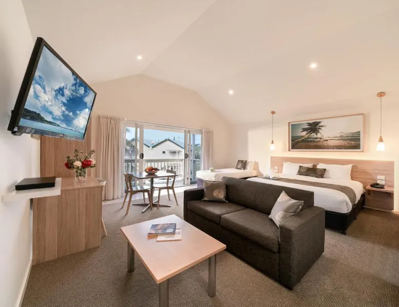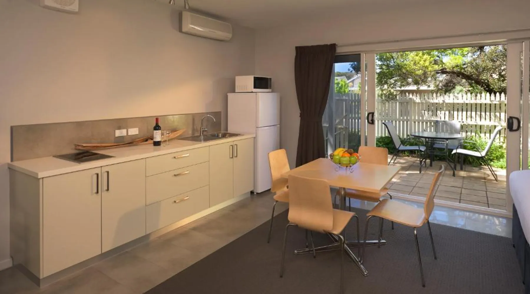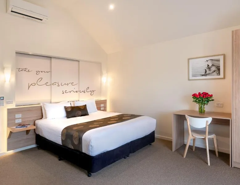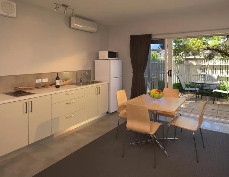 Ideally located opposite Blairgowrie beach, the Yacht Club and Marina, Boathouse Resort Studios and Suites offers free WiFi, an outdoor swimming pool and BBQ facilities. The resort features an onsite restaurant and bar, Panda. There are shopping and other dining options within a 2-minute walk. All split-system air-conditioned accommodations offers an open-plan living and dining area with a sofa and flat-screen TV with Blu-Ray DVD player. Each feature a separate bathroom with a hairdryer and complimentary amenities. There are tea/coffee making facilities, a refrigerator, microwave, sink and a Nespresso coffee machine in each accommodations. Each upstairs suite offers a balcony and high cathedral ceilings. Some accommodations features a spa bath. Located in the Mornington Peninsula, Boathouse Resort Studios and Suites is 4 minutes’ drive from the Sorrento car ferry. Peninsula Hot Springs is a 10-minute drive away. This spacious studio located upstairs includes a private balcony with outdoor setting. There is a king sized-bed with an electric blanket. The split-system air-conditioned suite includes an open-plan living and dining area, as well as a kitchenette with electric stovetop, toaster, kettle, microwave and refrigerator, and tea/ coffee making facilities The private bathroom includes a walk-in shower, spa bath, vanity, hairdryer and toiletries. The open-plan living area includes a TV and DVD player. Ironing facilities are available