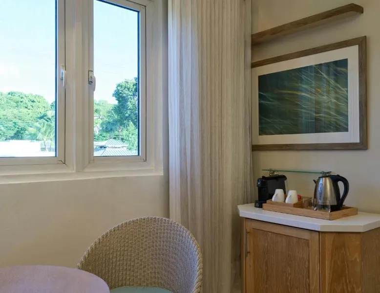 Beachfront Location: Waves Resort & Spa in Saint James offers direct beachfront access with stunning views. Guests can relax on the sun terrace or enjoy water sports activities such as snorkeling and windsurfing. Comfortable Accommodations: Rooms feature air-conditioning, balconies, private bathrooms, and modern amenities including bathrobes, tea and coffee makers, and flat-screen TVs. Family rooms and full-day security ensure a comfortable stay. Dining Experience: The family-friendly restaurant serves Mediterranean, Asian, and international cuisines for lunch and dinner. Breakfast is available as a buffet or full English/Irish. Evening entertainment and yoga classes enhance the stay. Leisure Facilities: Guests can enjoy a year-round outdoor swimming pool, fitness center, and free WiFi. Additional amenities include a hairdresser, beauty salon, and outdoor seating areas. Nearby Attractions: Fitts Village Beach is just a few steps away, Batts Rock Beach a 7-minute walk, and Paradise Beach less than 0.6 mi from the resort. Grantley Adams International Airport is 12 mi distant. The spacious air-conditioned quadruple room offers a TV with cable channels, a tea and coffee maker, a wardrobe and a safe deposit box. The unit has 2 beds.