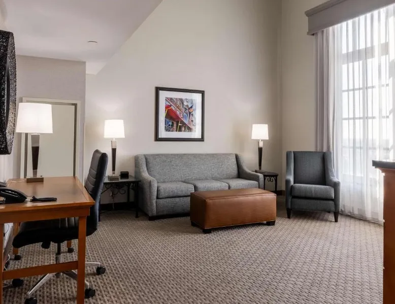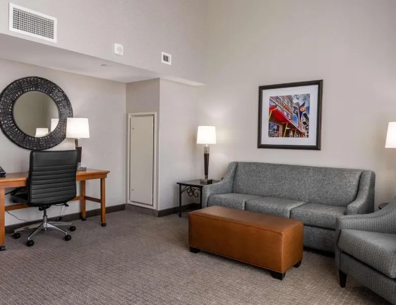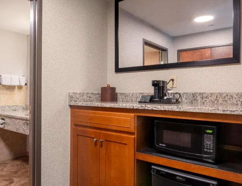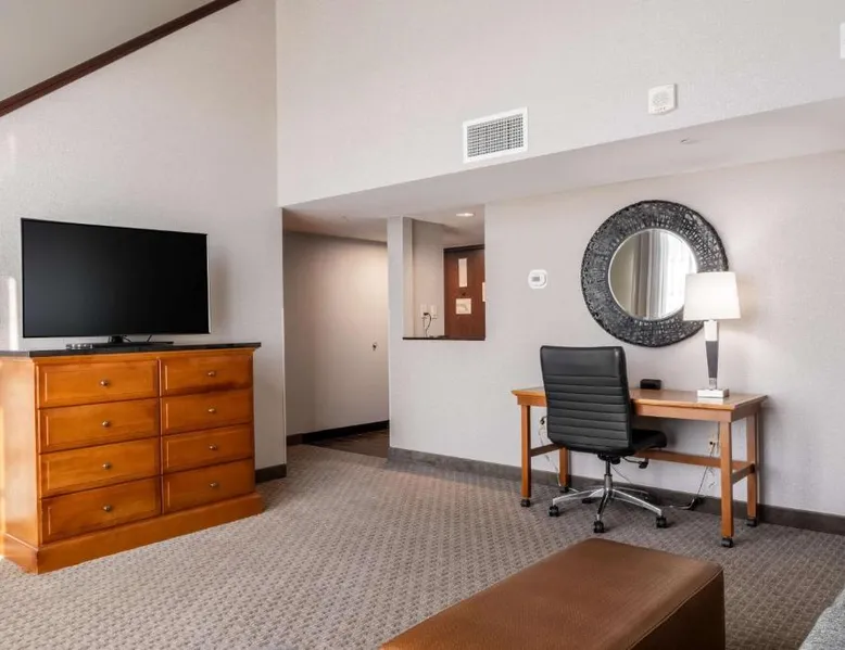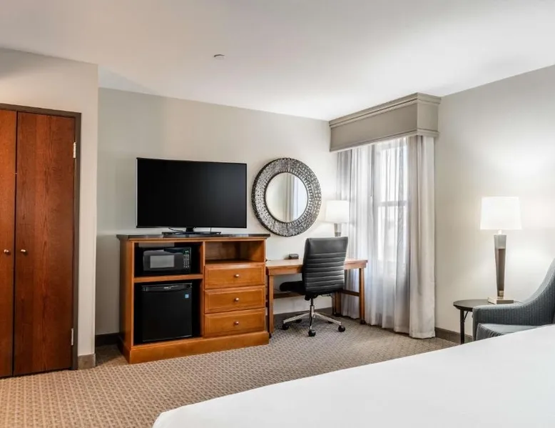 Located in the heart of downtown Wichita, just 6 miles from the Dwight D Eisenhower National Airport. The hotel features complimentary breakfast, evening hot food reception including alcoholic beverages and Wi-Fi. Enjoy the indoor pool and indoor/outdoor spa overlooking the Arkansas River. A flat-screen cable TV is included in every room at Drury Plaza Hotel Broadview Wichita. For added convenience, a microwave and fridge are also provided. Onsite restaurant is AVI Seabar and Chophouse is located on site and serves steak and seafood for lunch and dinner. The lofted bar offers cocktails and beers for guests to enjoy. A hot breakfast is served daily at this hotel. A hot tub and fitness center are available at Broadview Wichita Drury Plaza Hotel. Guests can make use of the launderette facilities during their stay. INTRUST Bank Arena is less than 1 mile away. The Sedgwick County Zoo can be reached in 12 minutes’ drive. This room will be located on the 7th or 8th floor of the building.