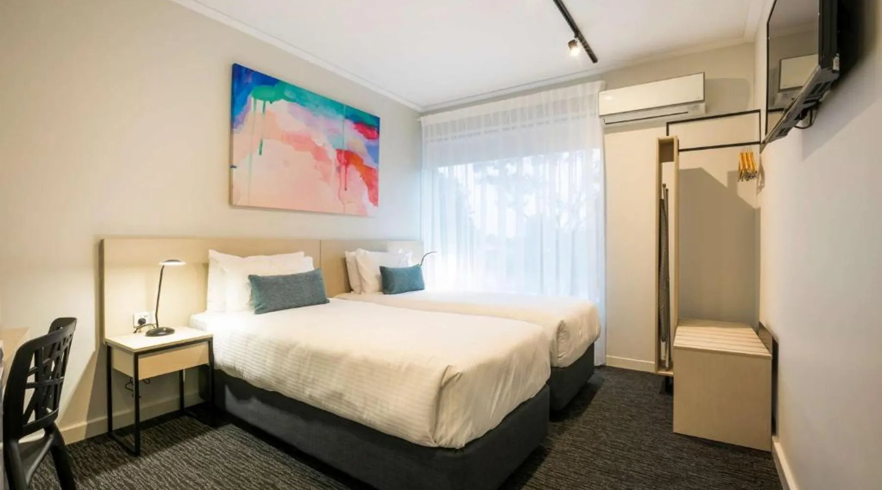 Comfortable Accommodations: Nightcap at Playford Tavern in Adelaide offers family rooms with air-conditioning, private bathrooms, and free WiFi. Each room includes a tea and coffee maker, refrigerator, work desk, free toiletries, shower, carpeted floors, TV, electric kettle, and wardrobe. Dining and Leisure: The family-friendly restaurant serves Australian cuisine in a traditional ambiance. Guests can also enjoy a bar and a child-friendly buffet. Additional facilities include a children's playground and free on-site parking. Convenient Location: Located 25 mi from Adelaide Airport, the hotel is near attractions such as Adelaide Oval (18 mi), Adelaide Botanic Garden (18 mi), and Rundle Mall (19 mi). Guests appreciate the room cleanliness, attentive staff, and excellent service support. Located on the 2nd floor, this air-conditioned studio is accessible via stairs. It offers a TV, a refrigerator and tea/coffee making facilities.