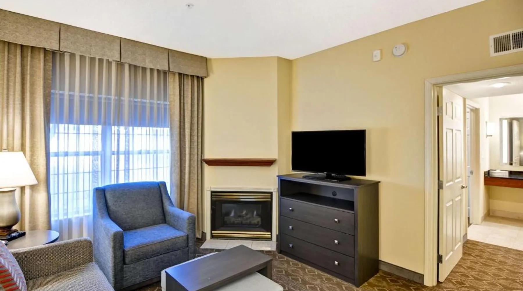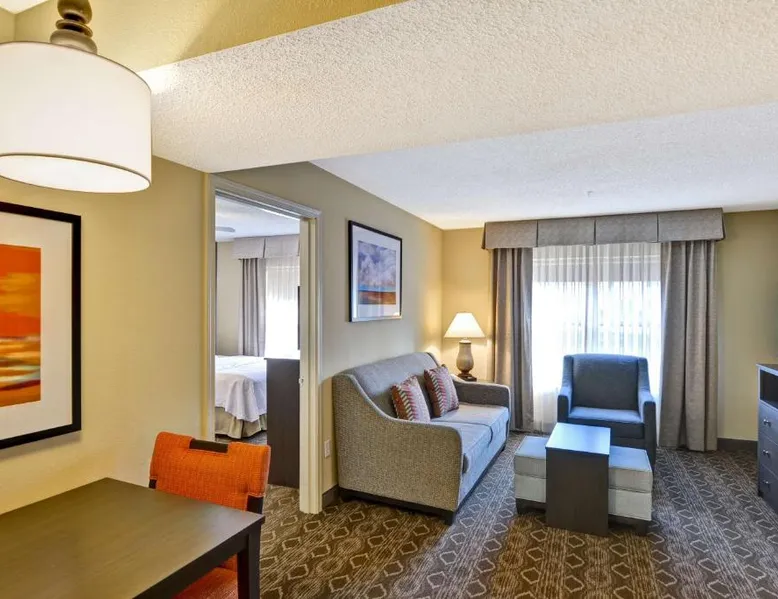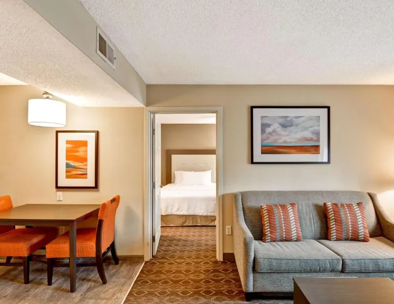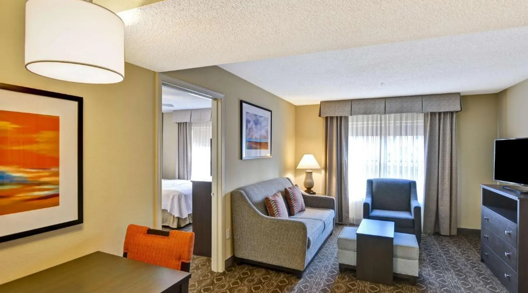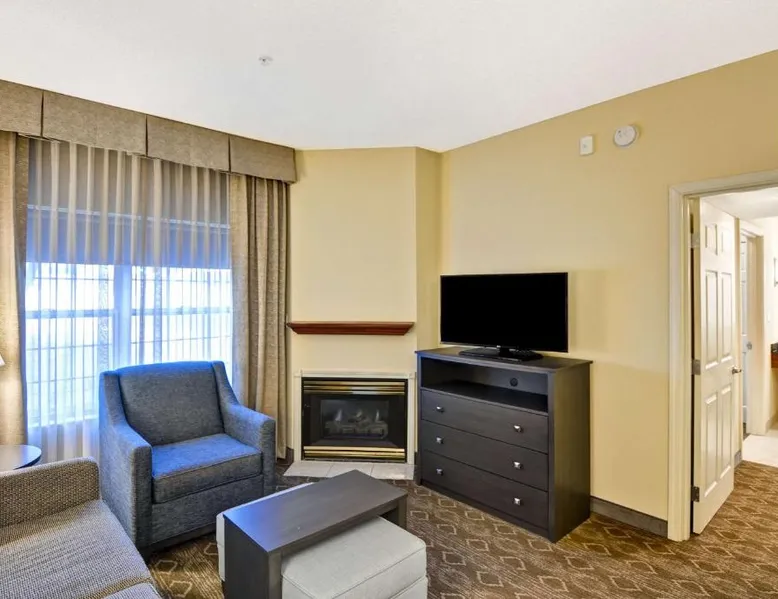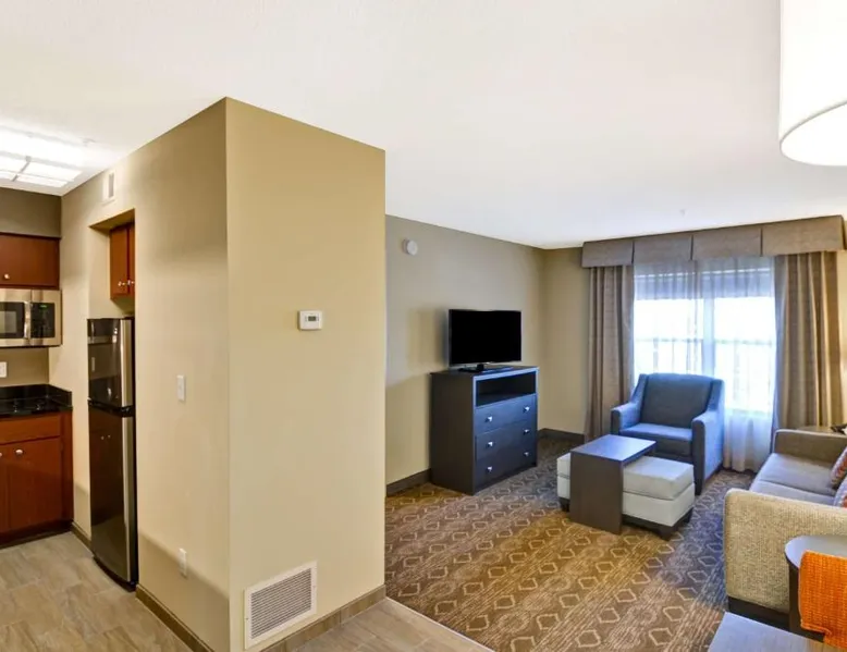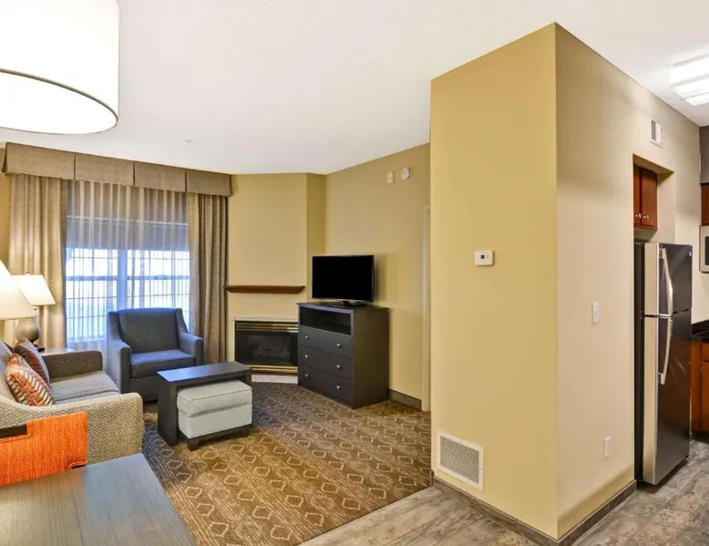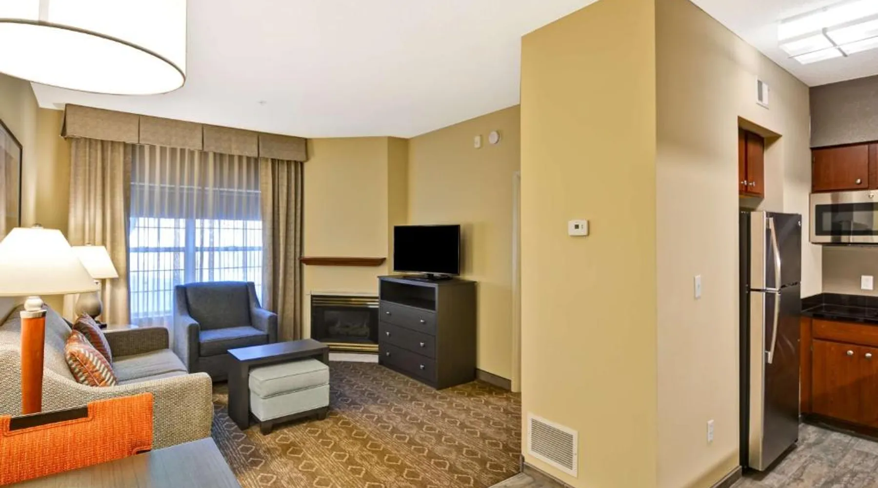 Comfortable Accommodations: Homewood Suites by Hilton Kansas City/Overland Park in Overland Park offers family rooms with air-conditioning, kitchen facilities, and free WiFi. Each room includes a sofa bed, work desk, and seating area. Leisure and Fitness: Guests can enjoy a seasonal outdoor swimming pool, fitness room, and free on-site parking. The property also features a 24-hour front desk and elevator access. Convenient Location: Located 29 mi from Kansas City International Airport, the hotel is near attractions such as the National World War I Museum at Liberty Memorial (14 mi) and Union Station Kansas City (14 mi). Free toiletries and a fireplace enhance the stay. Guest Satisfaction: Highly rated for room cleanliness and breakfast provided by the property, guests appreciate the comfortable accommodations and excellent service. This master suite features a separate living room with a fireplace and a fully equipped kitchenette. Free Wi-Fi and flat-screen TV are also provided.