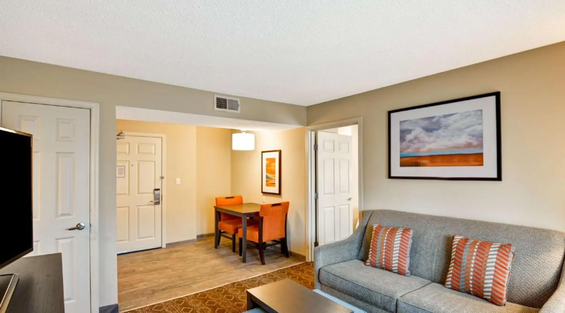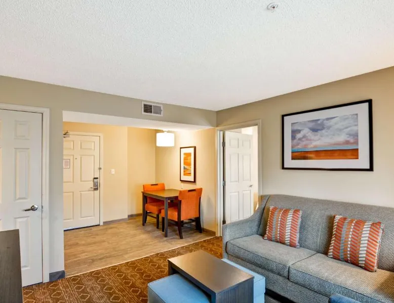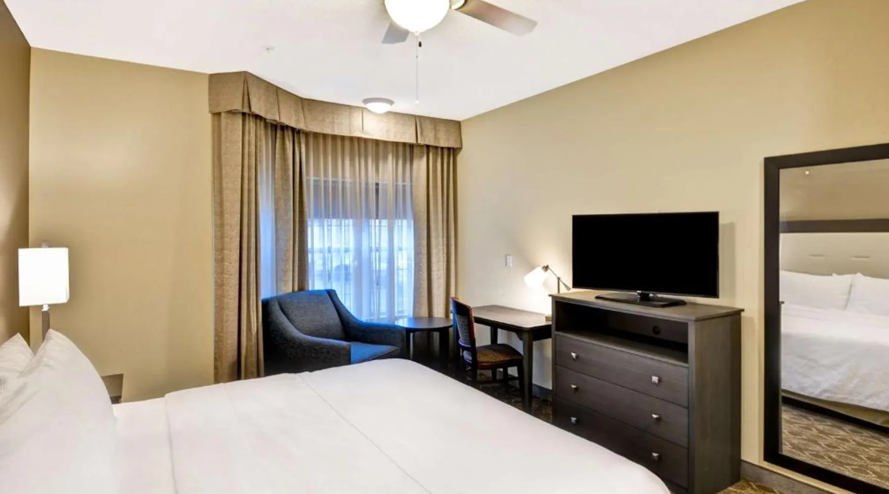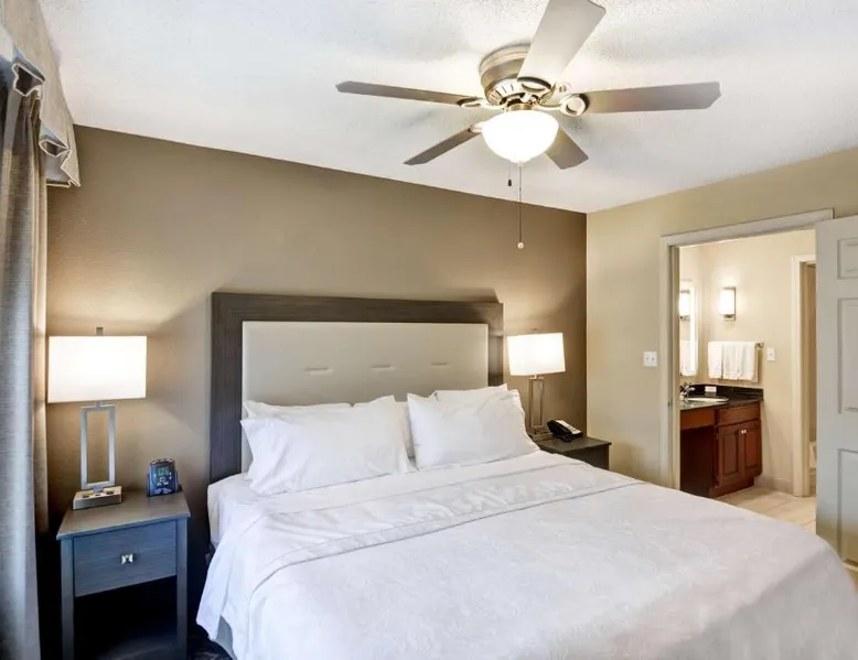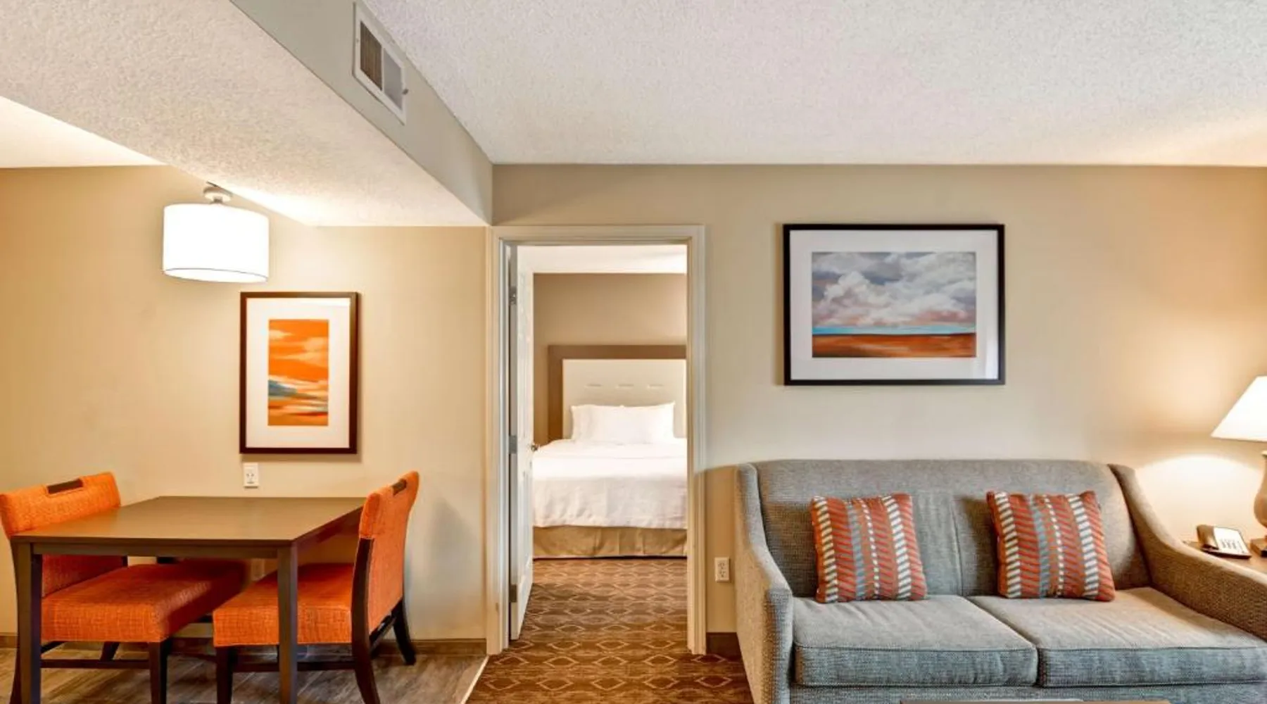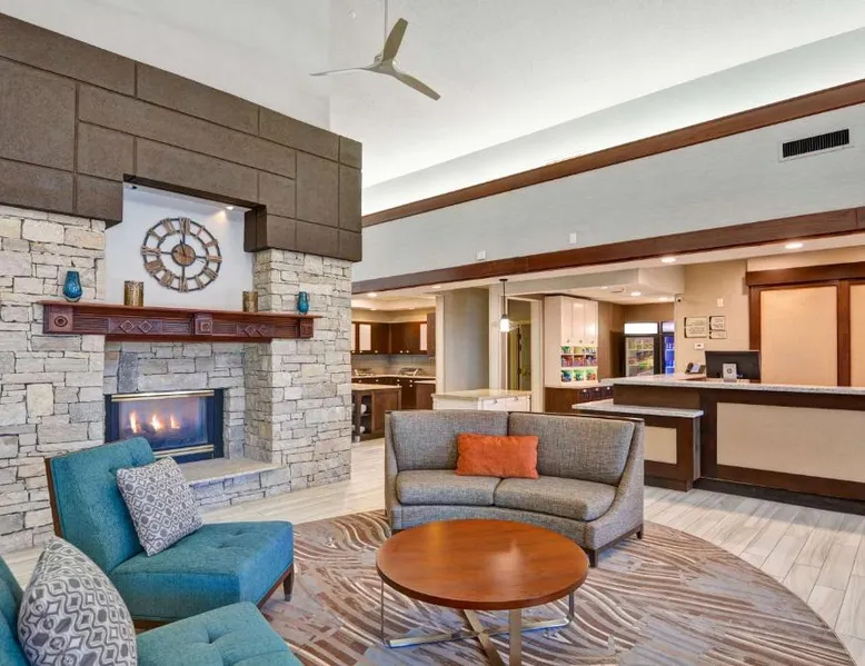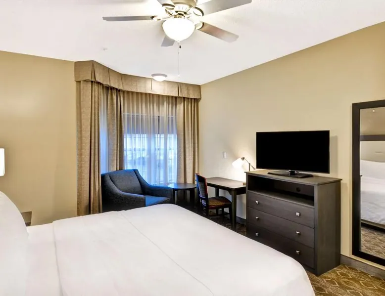 Comfortable Accommodations: Homewood Suites by Hilton Kansas City/Overland Park in Overland Park offers family rooms with air-conditioning, kitchen facilities, and free WiFi. Each room includes a sofa bed, work desk, and seating area. Leisure and Fitness: Guests can enjoy a seasonal outdoor swimming pool, fitness room, and free on-site parking. The property also features a 24-hour front desk and elevator access. Convenient Location: Located 29 mi from Kansas City International Airport, the hotel is near attractions such as the National World War I Museum at Liberty Memorial (14 mi) and Union Station Kansas City (14 mi). Free toiletries and a fireplace enhance the stay. Guest Satisfaction: Highly rated for room cleanliness and breakfast provided by the property, guests appreciate the comfortable accommodations and excellent service. This master suite features a separate living room with a fireplace and a fully equipped kitchenette. Free Wi-Fi and flat-screen TV are also provided.