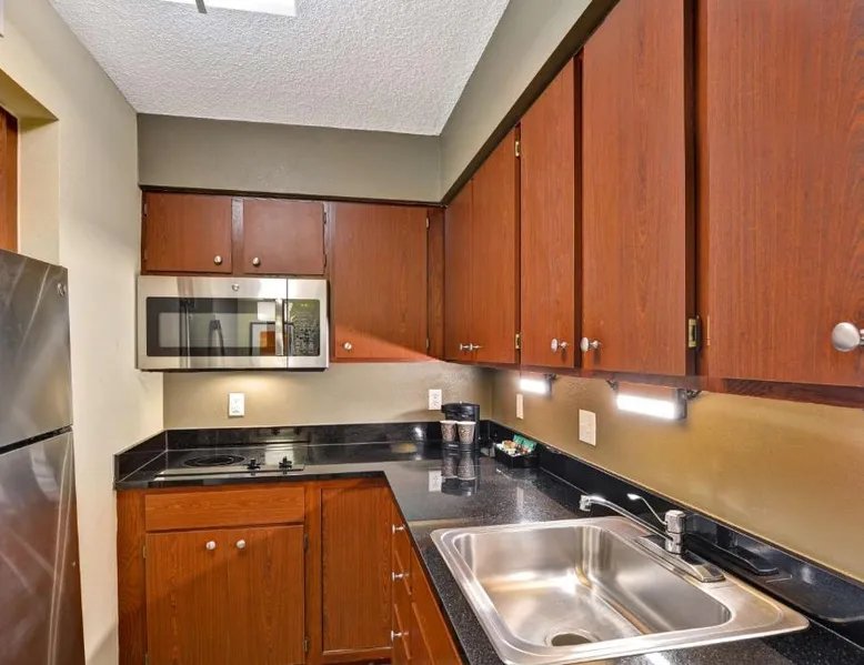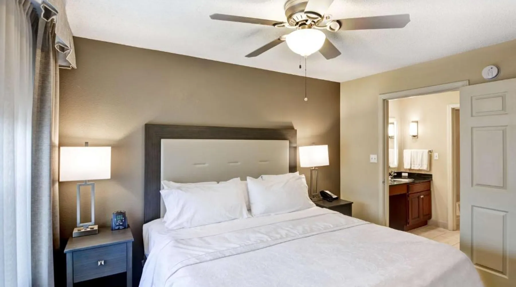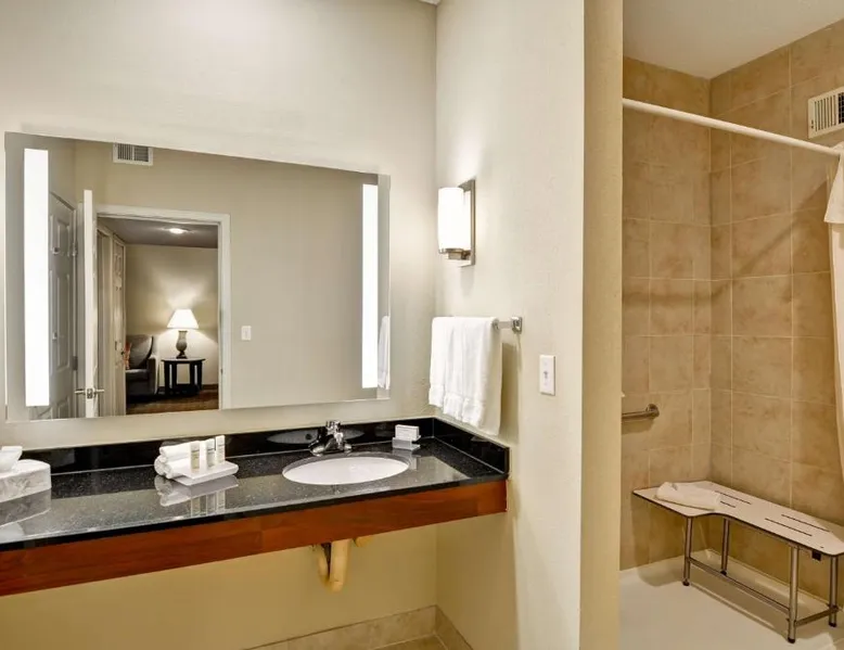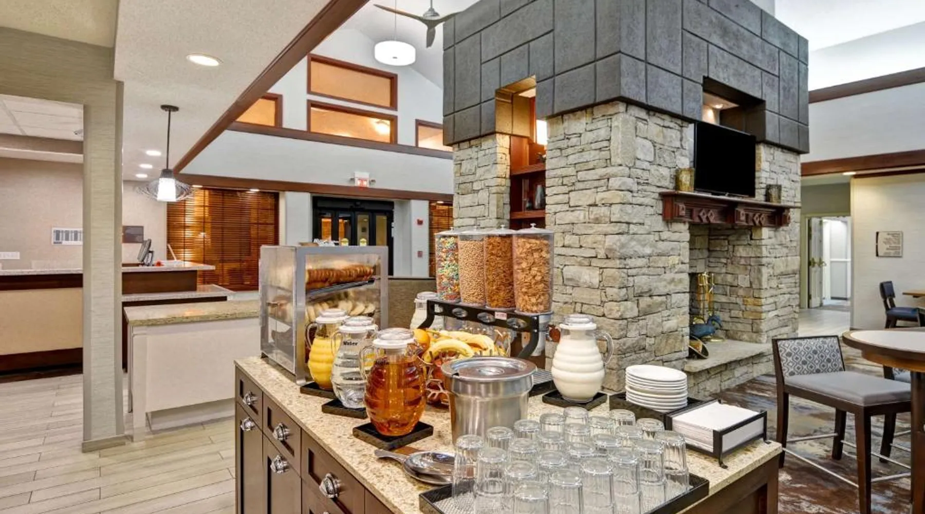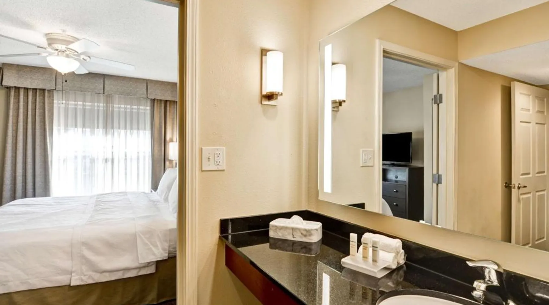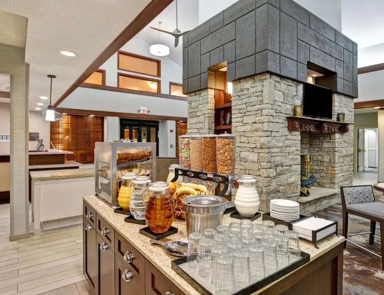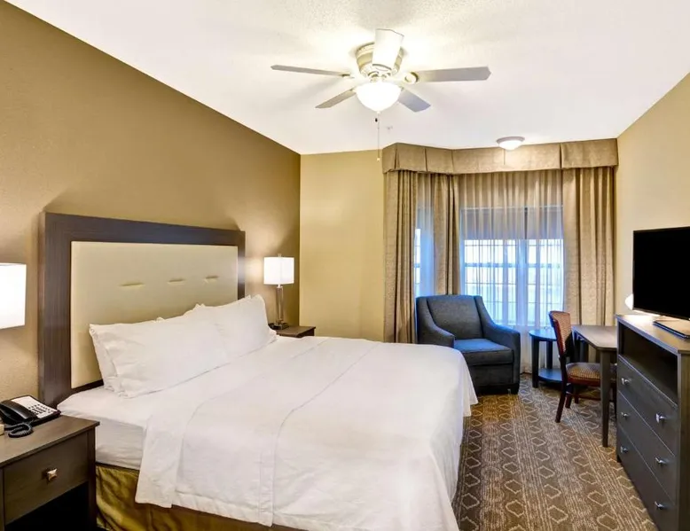 Comfortable Accommodations: Homewood Suites by Hilton Kansas City/Overland Park in Overland Park offers family rooms with air-conditioning, kitchen facilities, and free WiFi. Each room includes a sofa bed, work desk, and seating area. Leisure and Fitness: Guests can enjoy a seasonal outdoor swimming pool, fitness room, and free on-site parking. The property also features a 24-hour front desk and elevator access. Convenient Location: Located 29 mi from Kansas City International Airport, the hotel is near attractions such as the National World War I Museum at Liberty Memorial (14 mi) and Union Station Kansas City (14 mi). Free toiletries and a fireplace enhance the stay. Guest Satisfaction: Highly rated for room cleanliness and breakfast provided by the property, guests appreciate the comfortable accommodations and excellent service. This master suite features a separate living room with a fireplace and a fully equipped kitchenette. Free Wi-Fi and flat-screen TV are also provided.
