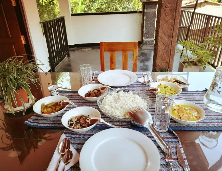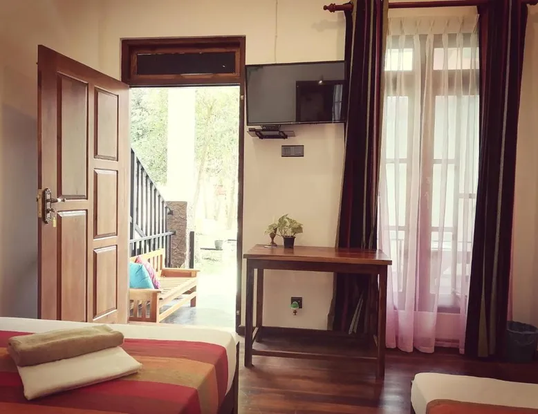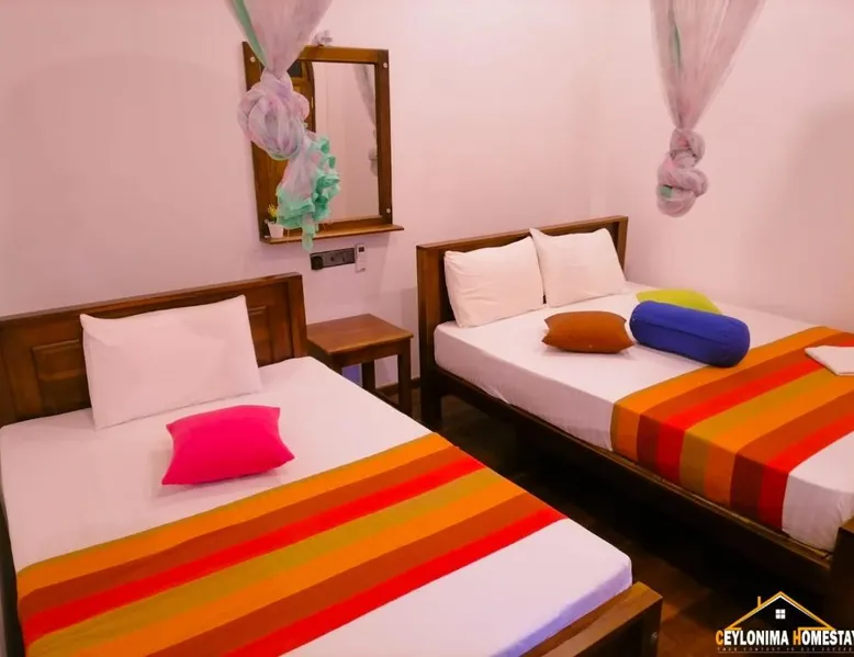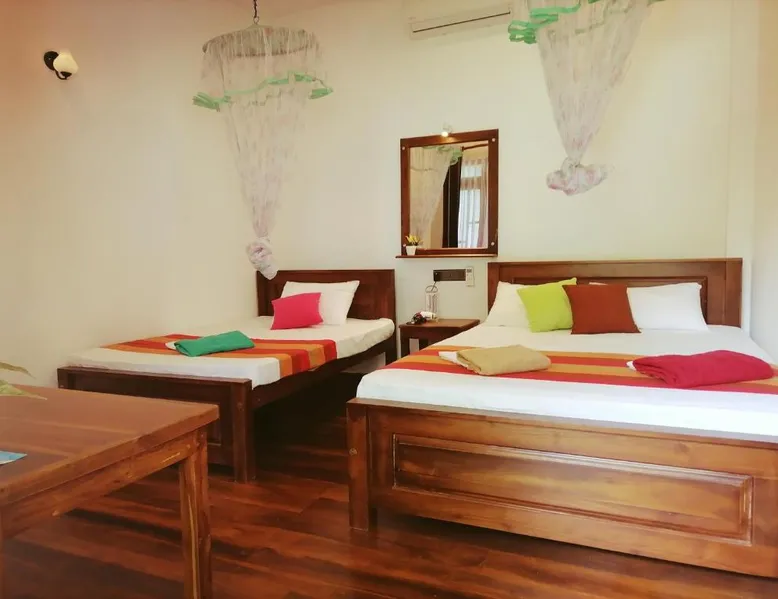 Comfortable Accommodations: Ceylonima Home Stay in Anuradhapura offers family rooms with air-conditioning, private bathrooms, and garden views. Each room includes a dining area, work desk, and free WiFi. Leisure Facilities: Guests can relax on the sun terrace or in the garden. The property features an outdoor play area and outdoor seating. Free on-site private parking is available. Dining Experience: The restaurant serves dinner with menus for special diets. Breakfast is available in the room, and room service enhances convenience. Convenient Location: Sigiriya Airport is 40 mi away. Nearby attractions include Attikulama Tank (1.9 mi) and Jaya Sri Maha Bodhi (5 mi). Free WiFi is accessible throughout the property. This air-conditioned double room is consisted of of a flat-screen TV with cable channels, a private bathroom as well as a terrace with garden views. The unit has 1 bed.