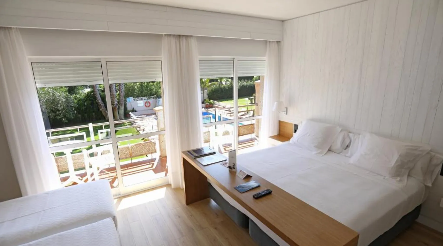 Located on Galicia’s beautiful O Grove Peninsula, Hotel Spa Atlantico is 1640 feet from San Vicente Beach and Marina. This family-run hotel offers large garden areas, an outdoor pool, spa and free WiFi. Rooms at the Spa Atlantico Hotel include air conditioning and a flat-screen TV with satellite channels. They also feature a balcony, overlooking the landscaped gardens or countryside. The Atlantico’s luxurious spa offers Turkish baths and a heated indoor pool with water jets. Treatments include body wraps, massages and facials. The elegant snack bar serves characteristic Galician dishes and there are also various restaurants in the fishing village of O Grove, a 10-minute drive away. The nearest beach is A Barrosa less than 1969 feet away. Free parking is offered on site. Featuring free toiletries, this twin/double room includes a private bathroom with a bath or a shower and a hairdryer. The twin/double room features a mini-bar, a wardrobe, a safe deposit box, a sofa and a flat-screen TV with satellite channels.