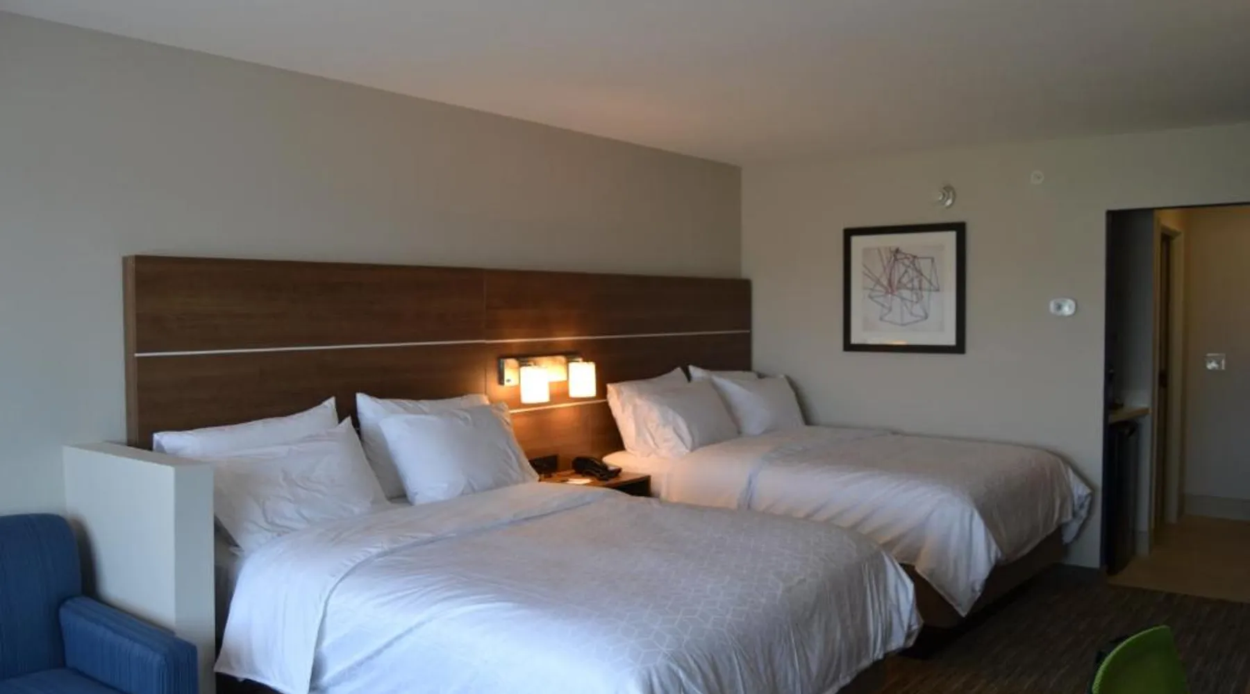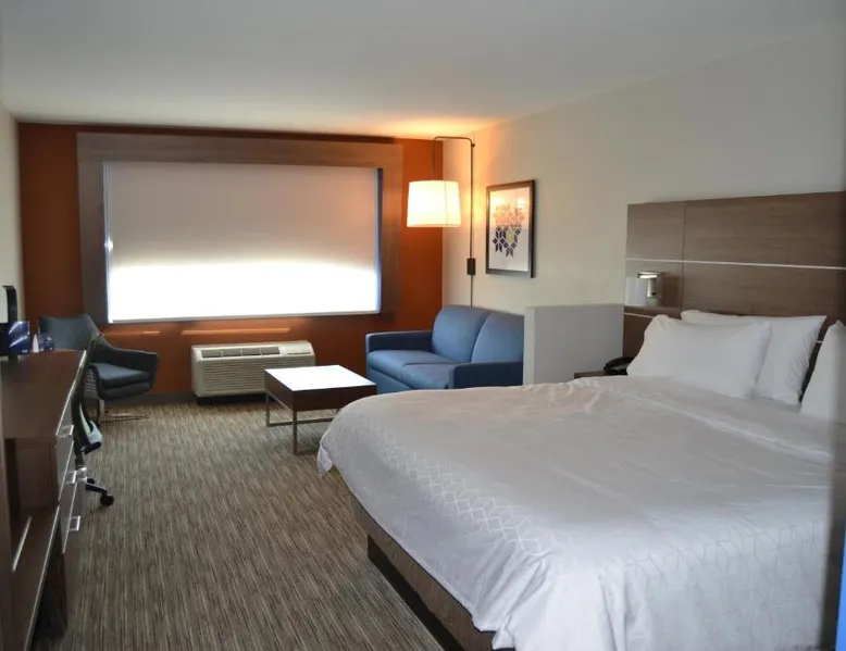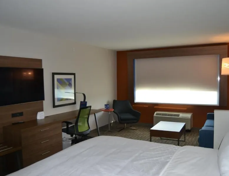 Comfortable Accommodations: Holiday Inn Express & Suites Goodlettsville N - Nashville by IHG in Goodlettsville offers family rooms with private bathrooms, air-conditioning, and free WiFi. Each room includes a tea and coffee maker, hairdryer, free toiletries, TV, and work desk. Exceptional Facilities: Guests can enjoy a fitness center, indoor swimming pool, and outdoor fireplace. Additional amenities include a elevator, 24-hour front desk, child-friendly buffet, business area, outdoor seating, picnic area, and luggage storage. Delicious Breakfast: A continental and American buffet breakfast is served daily, highly praised by guests for its quality and variety. Prime Location: Located 19 mi from Nashville International Airport, the hotel is near attractions such as The Hermitage (12 mi), Nissan Stadium and Grand Ole Opry (13 mi), and Johnny Cash Museum (14 mi). Free on-site parking is available. This air-conditioned suite is consisted of of a flat-screen TV with cable channels and a private bathroom. The unit has 2 beds.
