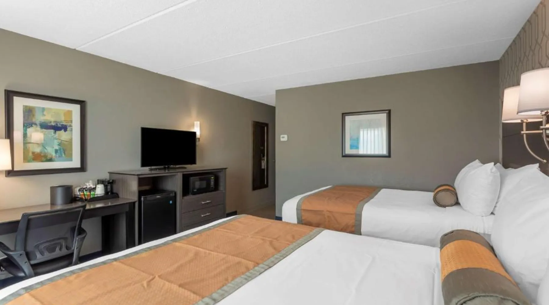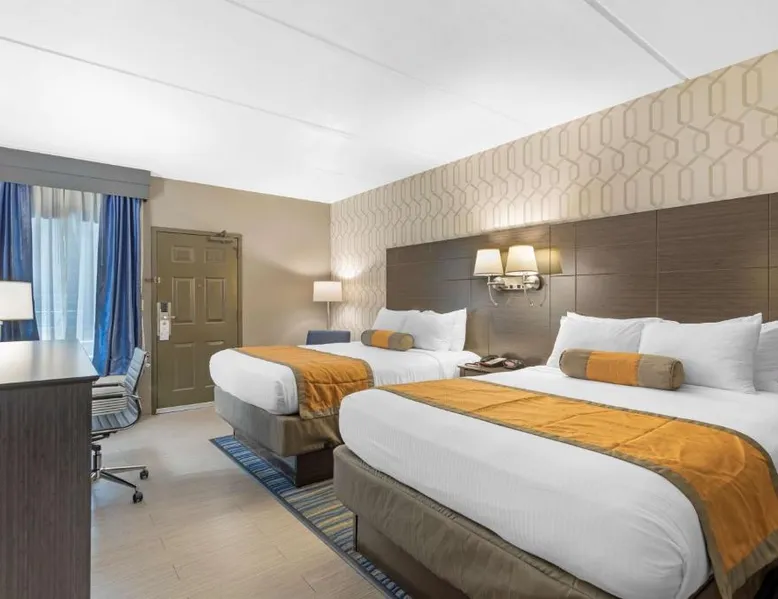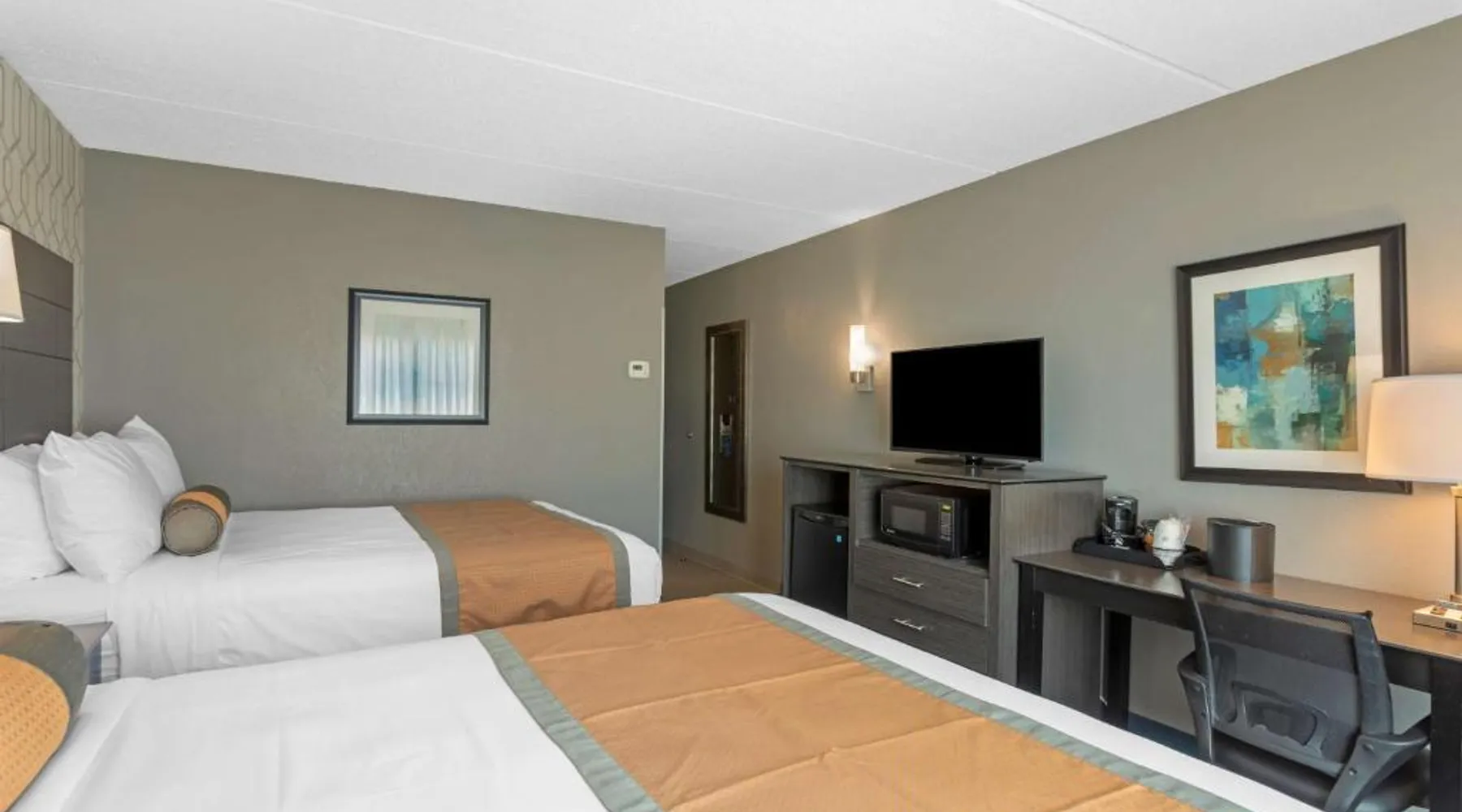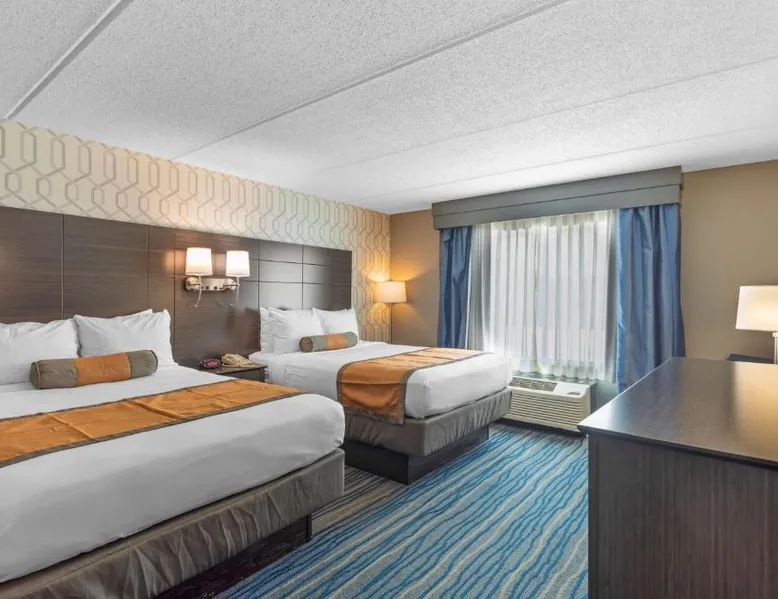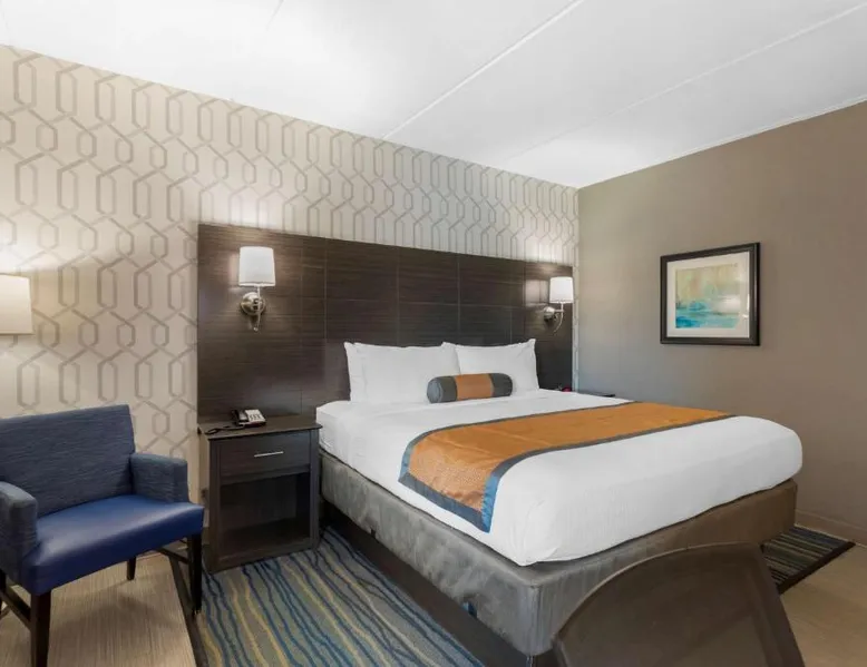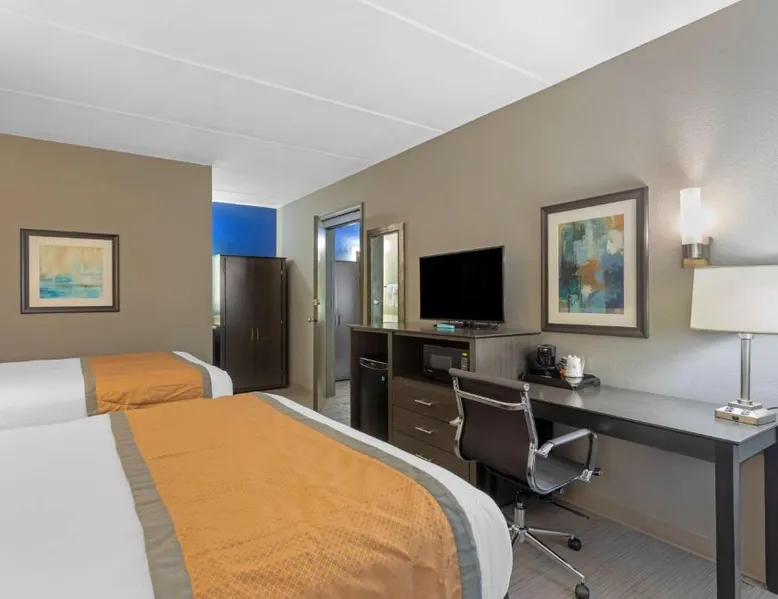 The Best Western Bowling Green is convenient to all of the area’s major attractions, including the National Corvette Museum and Beech Bend Park. Just one hour from Nashville and all of its attractions, this hotel also offers easy access to Western Kentucky University and E.A. Diddle Arena. Guests of the hotel can appreciate a variety of amenities including free wireless high-speed Internet access. Business travelers are invited to take advantage of access to copy and fax machines, or make use of the meeting room. All guest rooms offer a coffee maker, desk, hair dryer, alarm clock, iron and ironing board. Some rooms feature a flat-screen television, refrigerator and microwave. This handicap-friendly room is located on the first floor and is accessible through an exterior entrance.