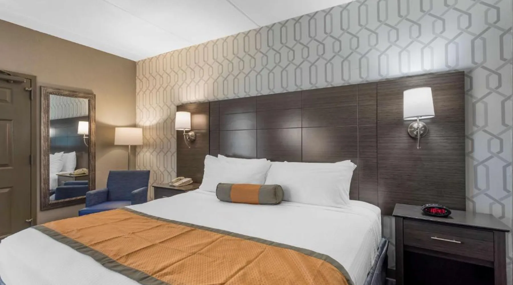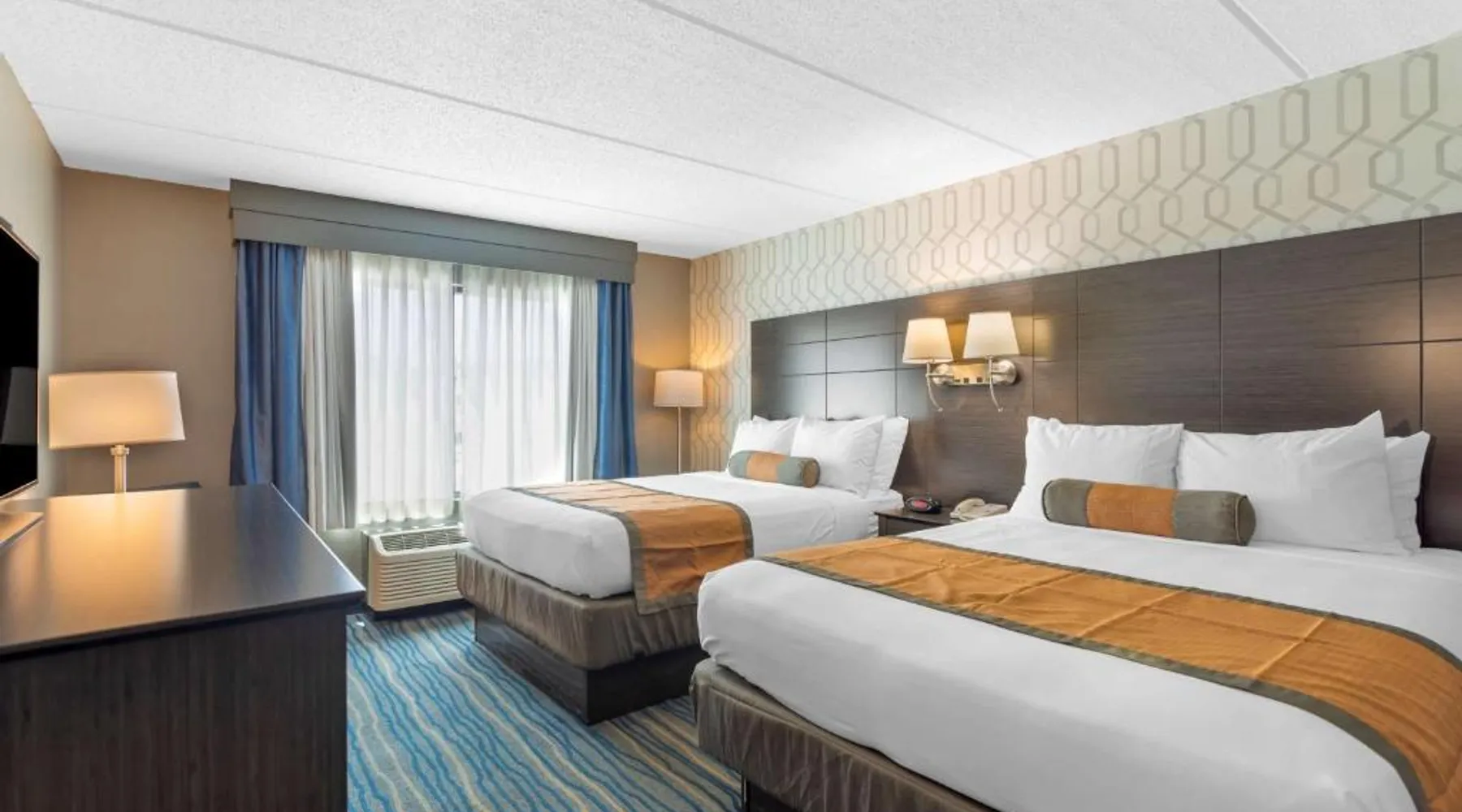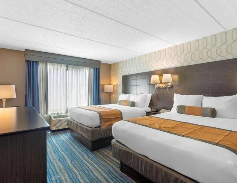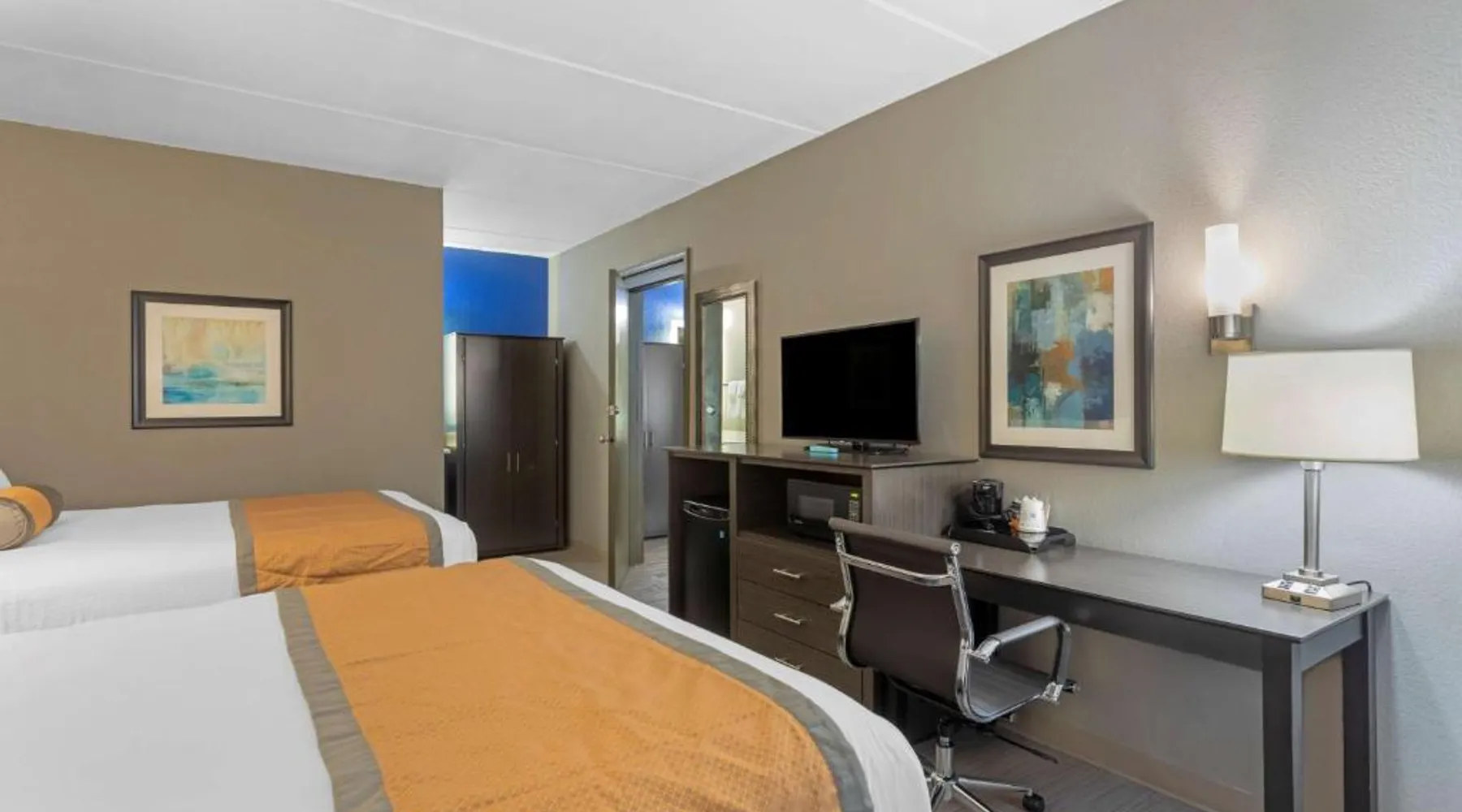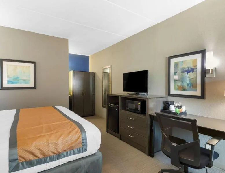 The Best Western Bowling Green is convenient to all of the area’s major attractions, including the National Corvette Museum and Beech Bend Park. Just one hour from Nashville and all of its attractions, this hotel also offers easy access to Western Kentucky University and E.A. Diddle Arena. Guests of the hotel can appreciate a variety of amenities including free wireless high-speed Internet access. Business travelers are invited to take advantage of access to copy and fax machines, or make use of the meeting room. All guest rooms offer a coffee maker, desk, hair dryer, alarm clock, iron and ironing board. Some rooms feature a flat-screen television, refrigerator and microwave. This handicap-friendly room is located on the first floor and is accessible through an exterior entrance.