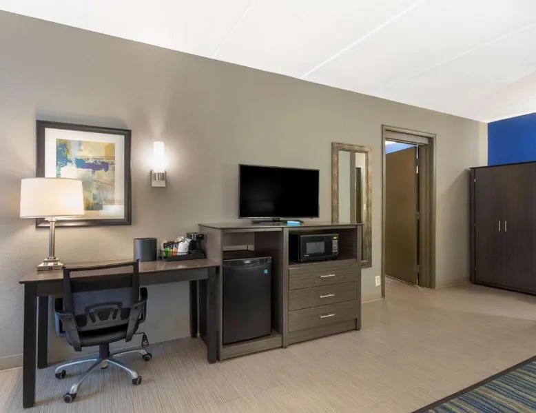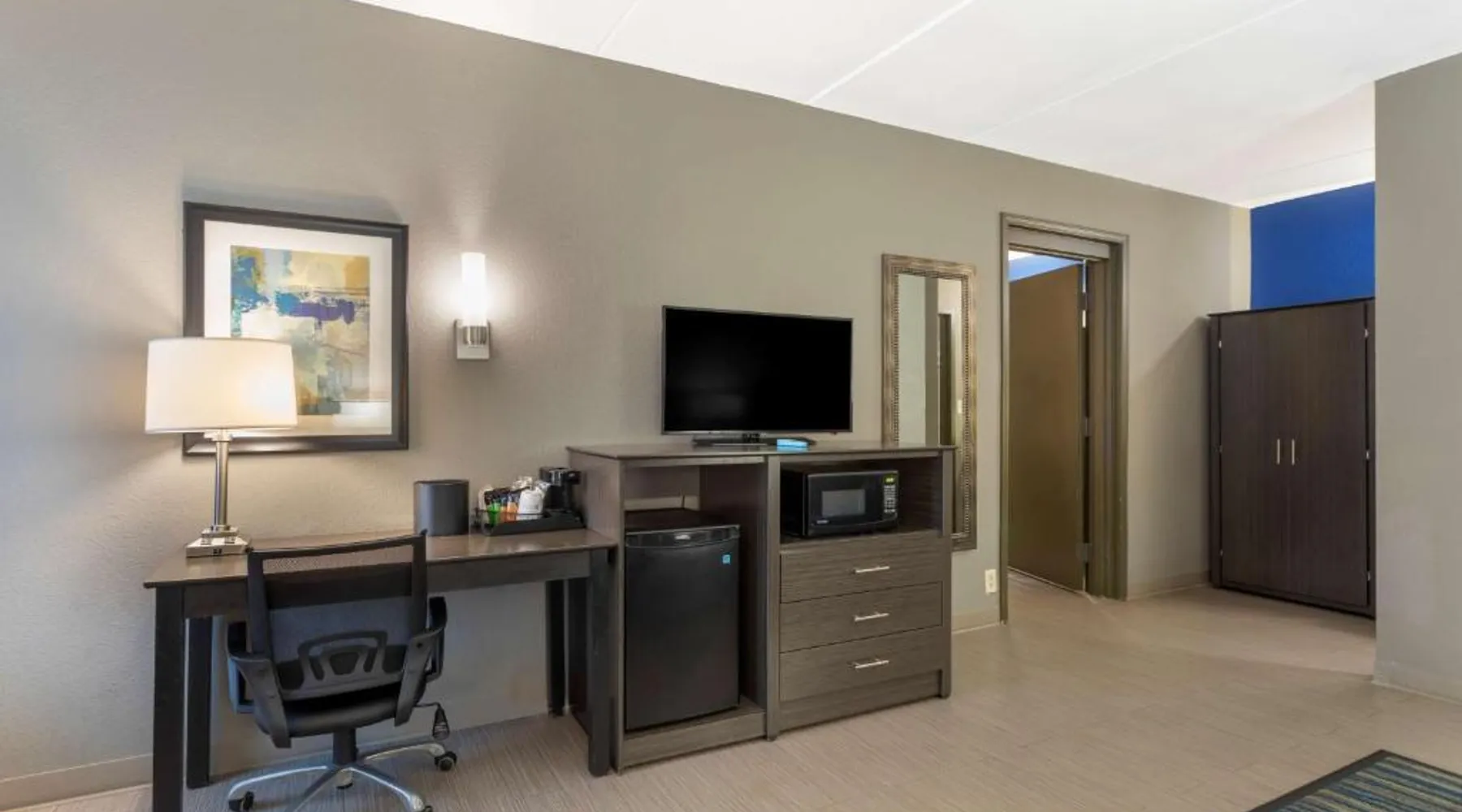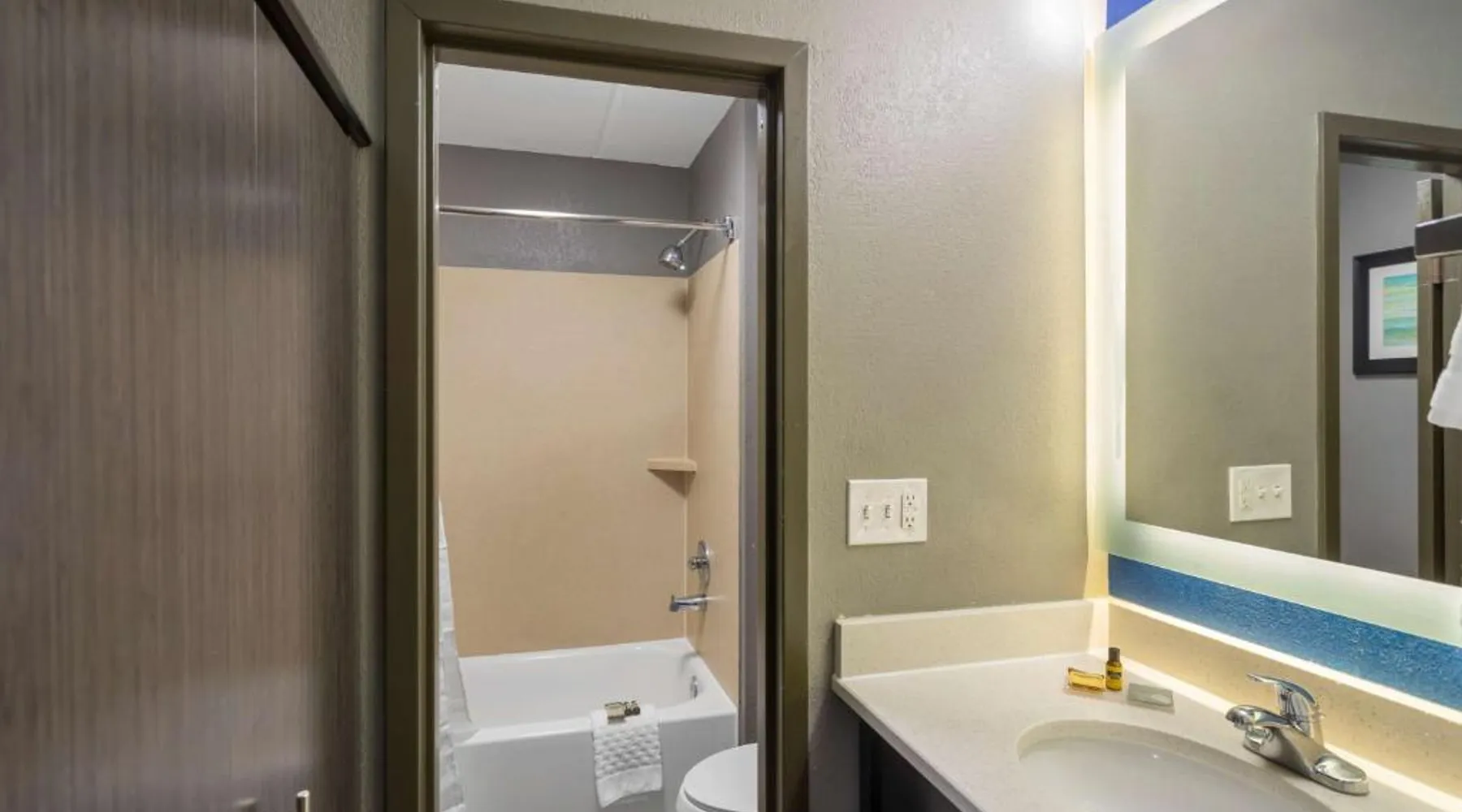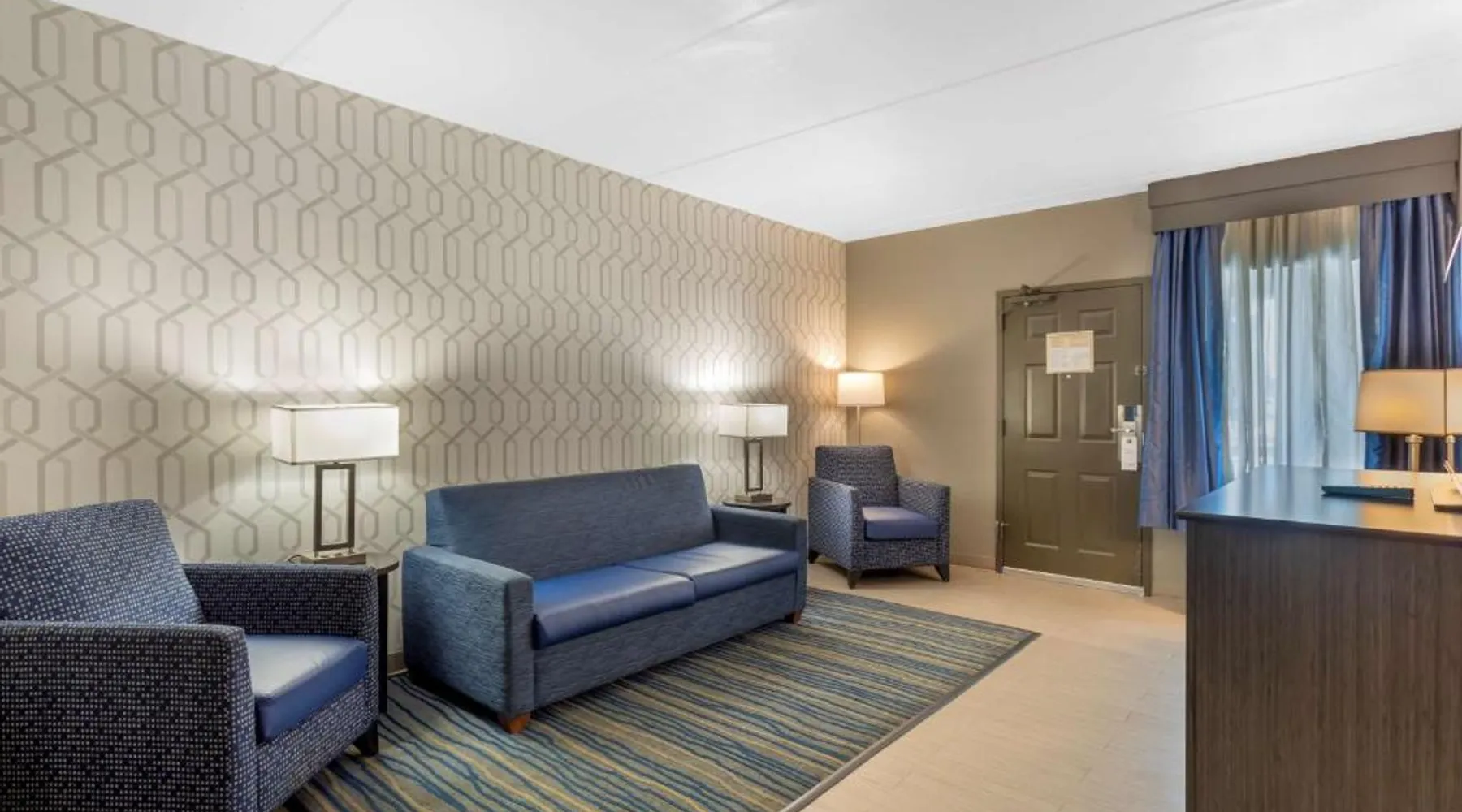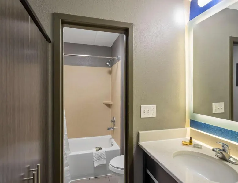 The Best Western Bowling Green is convenient to all of the area’s major attractions, including the National Corvette Museum and Beech Bend Park. Just one hour from Nashville and all of its attractions, this hotel also offers easy access to Western Kentucky University and E.A. Diddle Arena. Guests of the hotel can appreciate a variety of amenities including free wireless high-speed Internet access. Business travelers are invited to take advantage of access to copy and fax machines, or make use of the meeting room. All guest rooms offer a coffee maker, desk, hair dryer, alarm clock, iron and ironing board. Some rooms feature a flat-screen television, refrigerator and microwave. This handicap-friendly room is located on the first floor and is accessible through an exterior entrance.