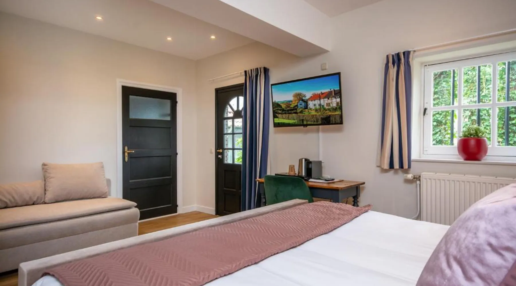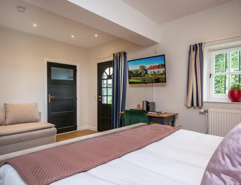 Tucked in the middle of the beautiful Strijthagen nature reserve, just 984 feet away from Snow World, lays an impressive estate in traditional style, and is only 20 minutes by car from Aachen, Valkenburg and Maastricht. This protected sanctuary offers marvelous walking and cycling opportunities as well as a range of sports facilities in the area. Embedded in tranquility yet close to a number of charming cities and the German border, this hotel is the ideal spot for a holiday get away, business trip or for travelers en route. GaiaZOO and the gardens of Mondo Verde are both less than a 10-minute drive away. This room comes with a desk, mini-bar and safety deposit box. The bathroom is fitted with a shower or a bath/shower combination.