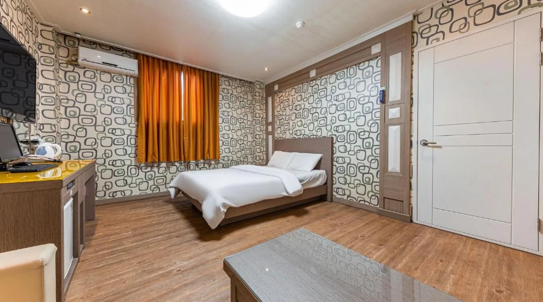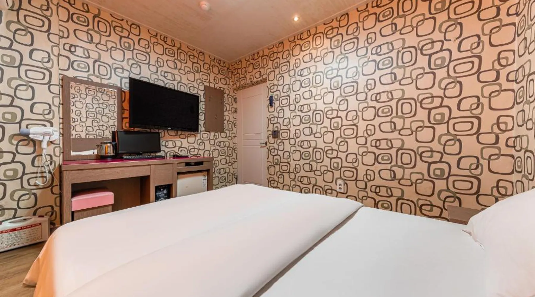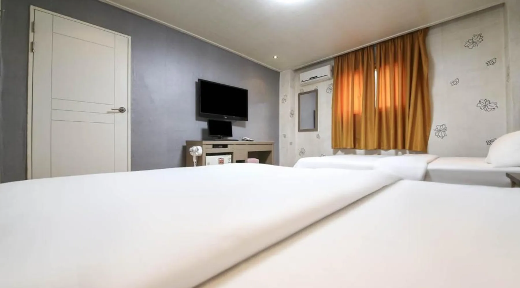 Comfortable Accommodations: Su Motel in Buyeo offers adults-only rooms with private bathrooms, air-conditioning, and city views. Each room includes a washing machine, refrigerator, and free toiletries. Essential Facilities: Guests enjoy free WiFi, private check-in and check-out, a 24-hour front desk, housekeeping, full-day security, bicycle parking, and luggage storage. Free on-site private parking is available. Local Attractions: Jeongnimsaji Temple Site is a 5-minute walk away, Busosanseong Fortress lies 0.6 mi nearby, and Naghwa Rock is 1.2 mi from the property. Gunsan Airport is 37 mi distant. Guest Favorites: Guests appreciate the convenient location with public transport options and the quiet street views. The hot tub is the standout feature of this twin room. Featuring free toiletries and bathrobes, this twin room includes a private bathroom with a bath, a shower and a hairdryer. The air-conditioned twin room features a flat-screen TV with cable channels, a washing machine, a private entrance and soundproof walls. The unit has 2 beds.