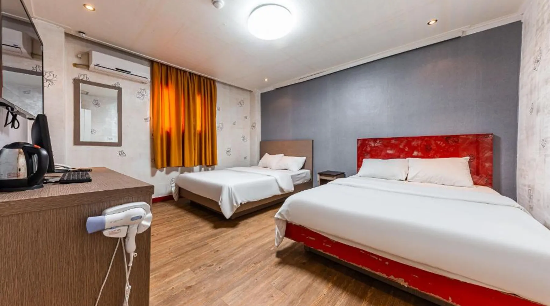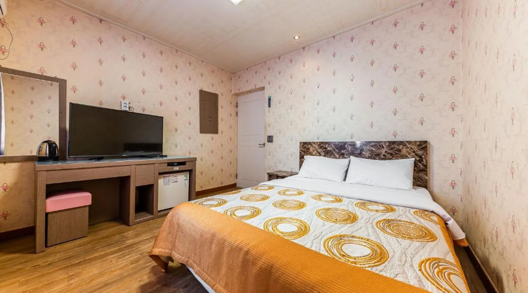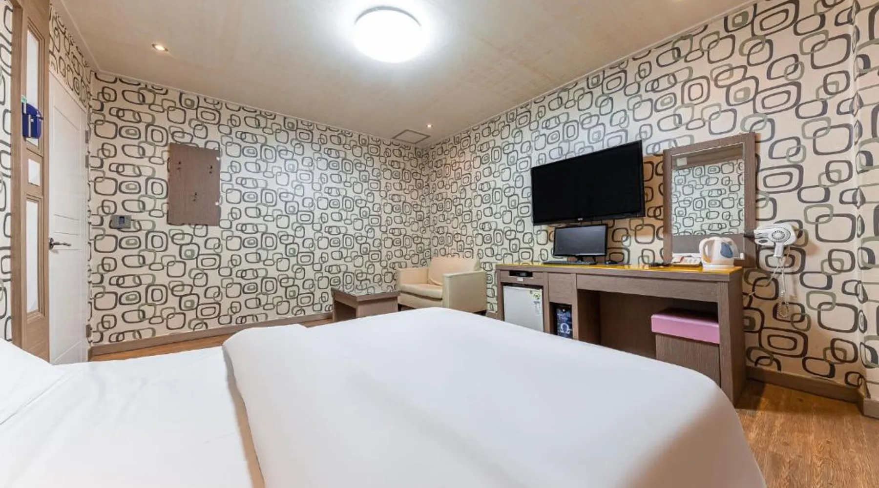 Comfortable Accommodations: Su Motel in Buyeo offers adults-only rooms with private bathrooms, air-conditioning, and city views. Each room includes a washing machine, refrigerator, and free toiletries. Essential Facilities: Guests enjoy free WiFi, private check-in and check-out, a 24-hour front desk, housekeeping, full-day security, bicycle parking, and luggage storage. Free on-site private parking is available. Local Attractions: Jeongnimsaji Temple Site is a 5-minute walk away, Busosanseong Fortress lies 0.6 mi nearby, and Naghwa Rock is 1.2 mi from the property. Gunsan Airport is 37 mi distant. Guest Favorites: Guests appreciate the convenient location with public transport options and the quiet street views. The hot tub is the standout feature of this twin room. Featuring free toiletries and bathrobes, this twin room includes a private bathroom with a bath, a shower and a hairdryer. The air-conditioned twin room features a flat-screen TV with cable channels, a washing machine, a private entrance and soundproof walls. The unit has 2 beds.