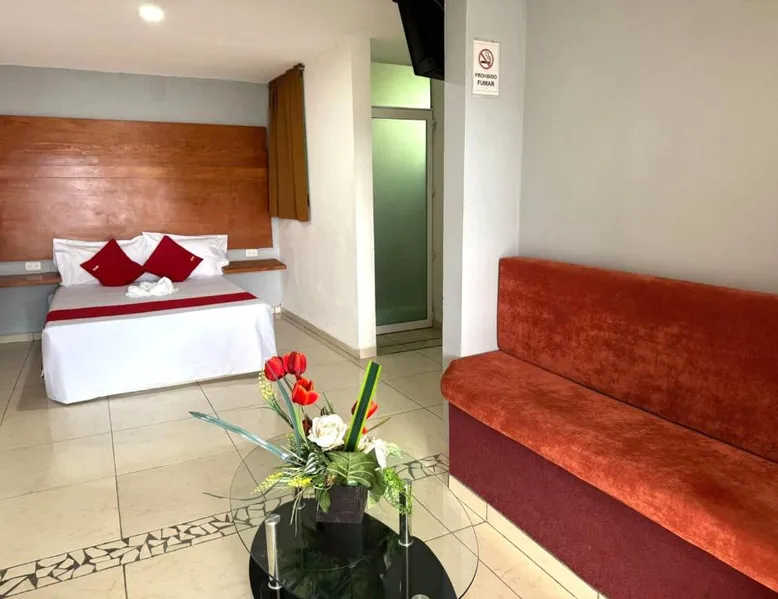 Comfortable Accommodations: OYO Hotel Familiar Tollan Cholula in Cholula offers family rooms with private bathrooms, bidets, and free toiletries. Each room includes a seating area, TV, and wardrobe, ensuring a pleasant stay. Essential Facilities: Guests enjoy free WiFi, private check-in and check-out, a 24-hour front desk, and full-day security. The hotel features an outdoor seating area and free private parking, catering to all needs. Convenient Location: Located 7.5 mi from Hermanos Serdán International Airport, the hotel is near attractions such as the Acropolis Puebla (11 mi) and the International Museum of the Baroque (5.6 mi). Guests appreciate the attentive staff and room cleanliness. The spacious double room provides a seating area, a wardrobe, as well as a private bathroom featuring a shower and a bidet. This double room offers a TV. The unit offers 1 bed.