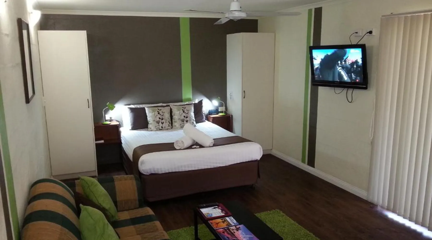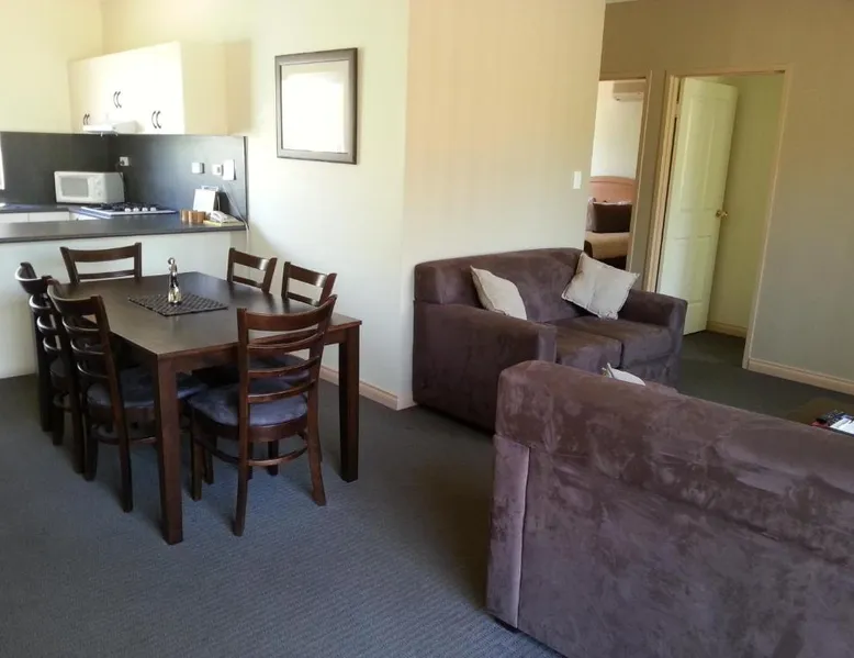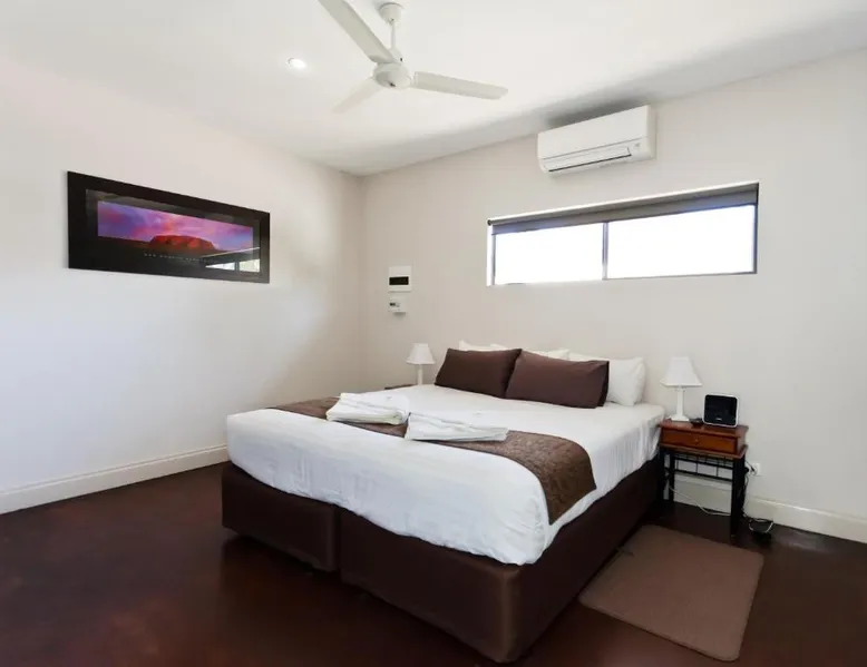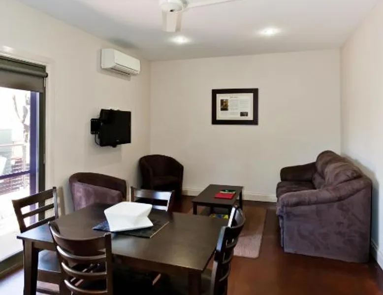 Just 5 minutes’ drive from central Alice Springs, Alice on Todd Apartments offer self-catering accommodations with flat-screen TVs and free Wi-Fi internet. Guests have access to the outdoor swimming pool. Alice on Todd Apartments are located just 1 minute’s walk from the Todd River. Alice Springs Golf Course and Todd Mall are each a 5-minute drive away. The air-conditioned rooms come with a well-equipped kitchenette or kitchen and laundry facilities. All rooms have a balcony or patio where guests can relax. The Alice on Todd barbecue area is the perfect place for a get-together with friends. For all Pet friendly room bookings the Pet fee has not been included in the rate displayed. Please pay direct at the motel. Several of these apartments are pet friendly, on application only, charges apply. This large 1-bedroom deluxe apartment contains an private bathroom, 2 plasma TVs, split-system air-conditioning in the bedroom and living area, fully equipped kitchen, sofa lounge in the living room (for the 3rd and 4th guest), a 4 piece dining setting and an outdoor area located on a private balcony. The apartments have full laundry facilities including an iron and ironing board.
