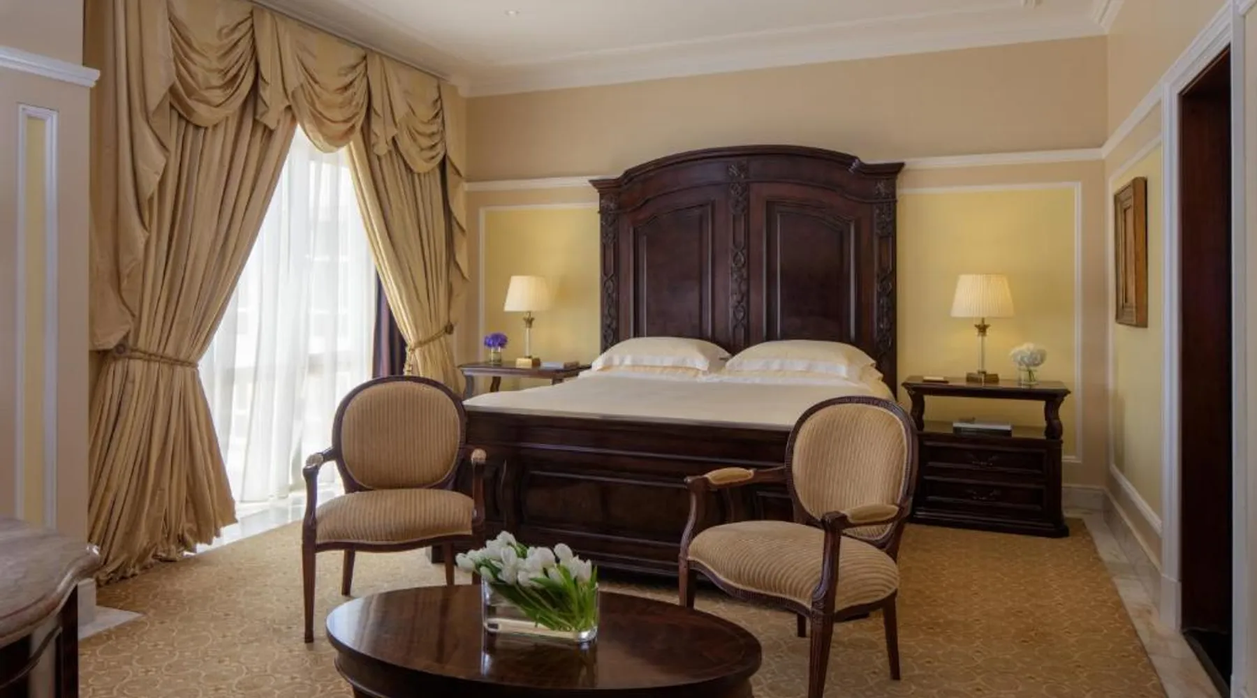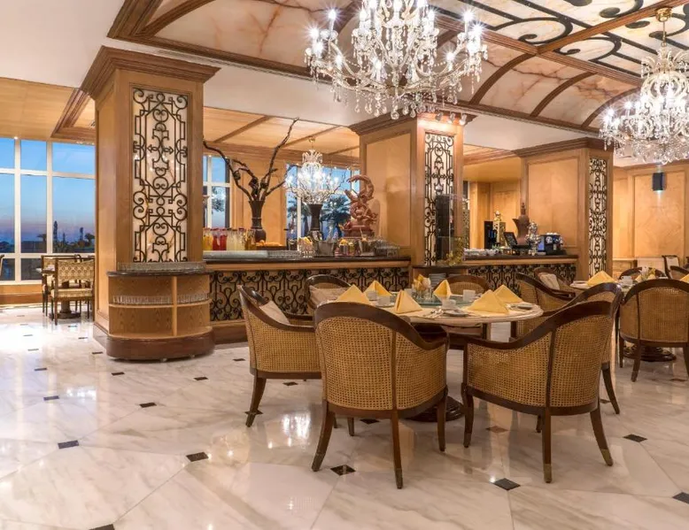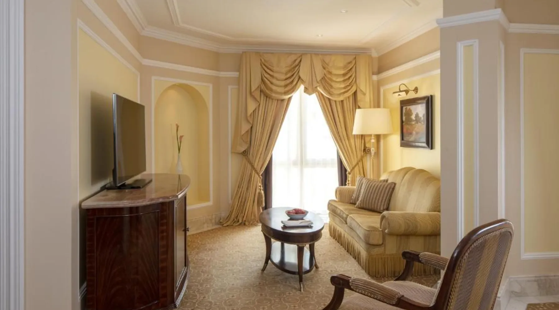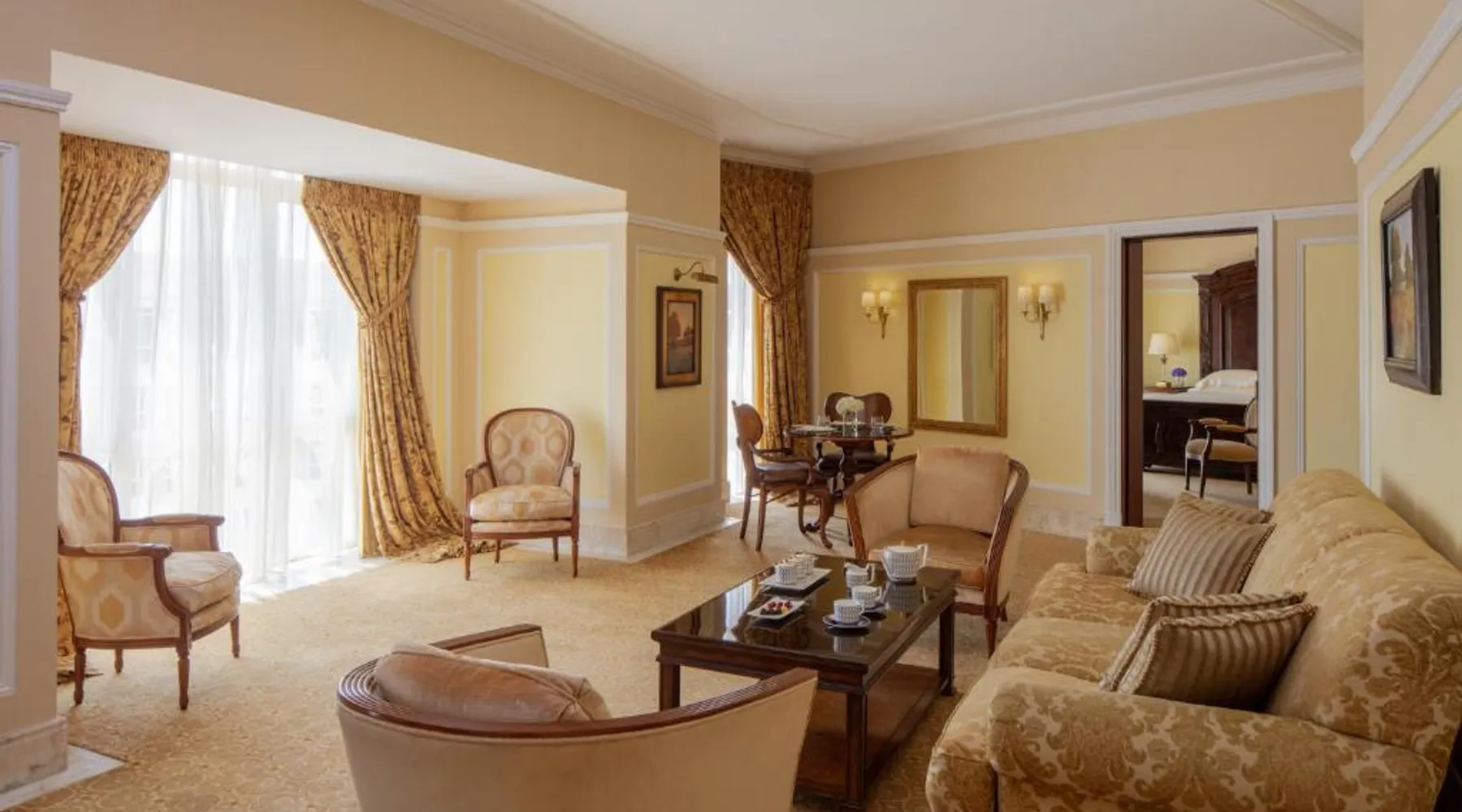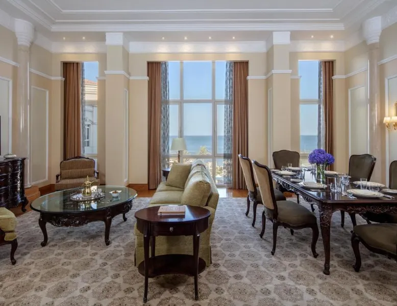 Prime Location: The Regency Hotel Kuwait is located in Kuwait city center, offering easy access to key attractions. City Center Salmiya lies 1.6 mi away, while Al Fanar Complex and The Scientific Center are each 2.5 mi distant. Exceptional Facilities: Guests enjoy a private beach area, beachfront, infinity swimming pool, fitness center, and lush gardens. Additional amenities include a terrace, restaurant, free WiFi, and a kids' club. Comfortable Accommodations: Rooms feature air-conditioning, private bathrooms, sea views, and modern amenities such as mini-bars and flat-screen TVs. Family rooms and interconnected rooms cater to all travelers. Dining Experience: The family-friendly restaurant serves international cuisine with halal, vegetarian, and vegan options. Breakfast includes fresh pastries, pancakes, and a variety of beverages. Kubbar Suite is a 160 sqm suite decorated in a classic mix of Middle Eastern and European styles, with an opulent bedroom, a spectacular marble bathroom boasting a hot tub, exceptional dining-living area and a sea views. Room Facilities: • Complimentary Bottled Water • Complimentary WiFi • Breakfast included • Free Parking • Mini Fridge • Complimentary Tea and Coffee making facilities • Full range of custom-made bathroom amenities • Electronic In-room safe • Writing Desk • Two Flat Screen TVs • Separate lounge • Two separate entrances to bedroom and lounge