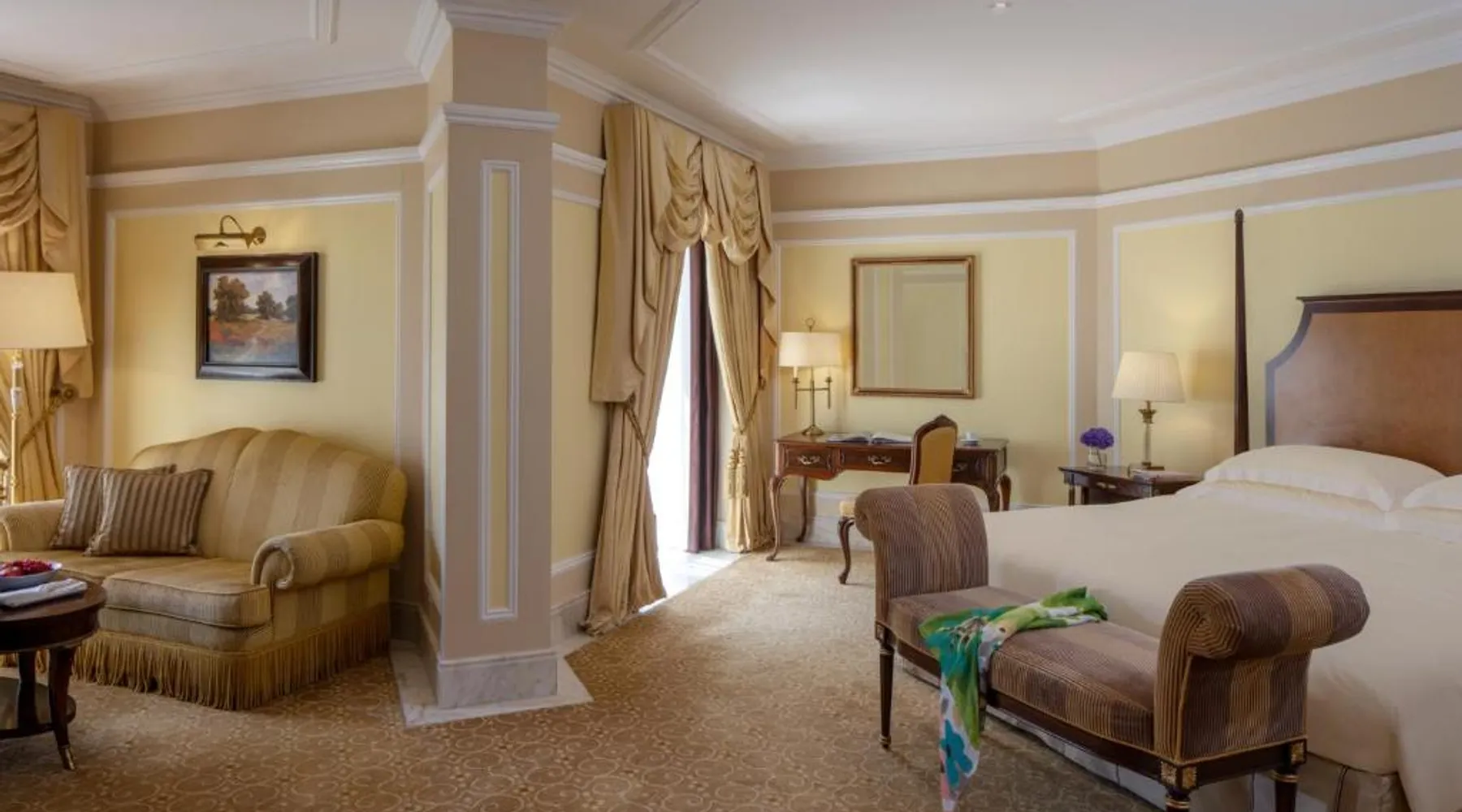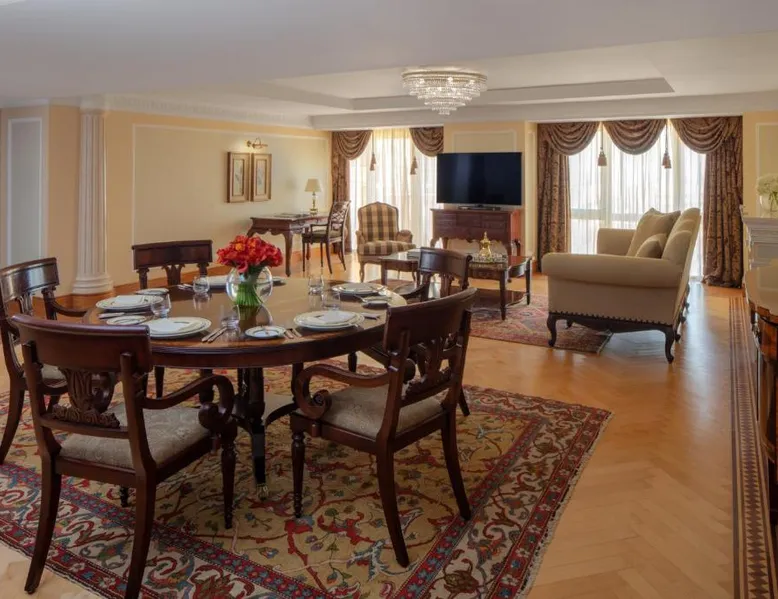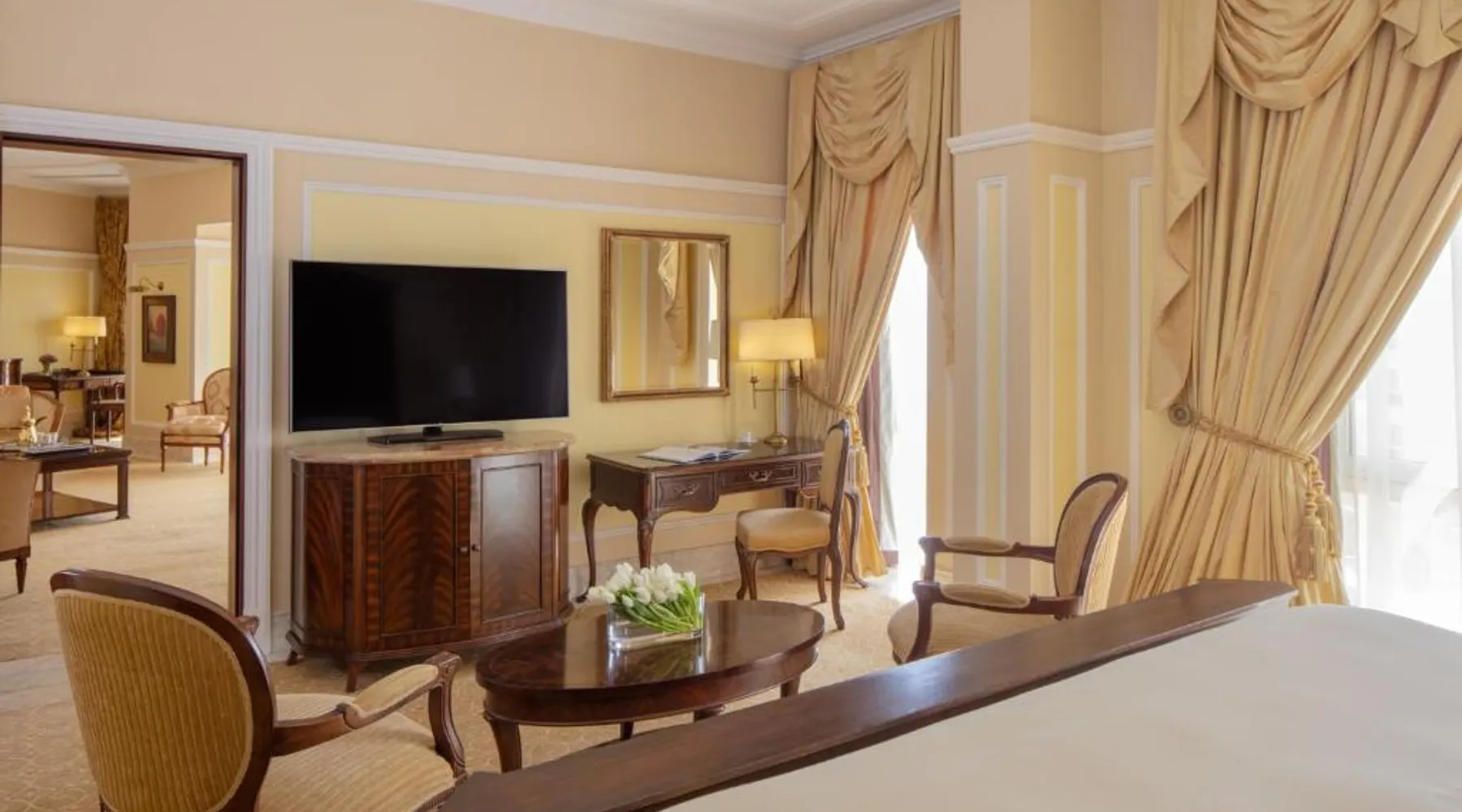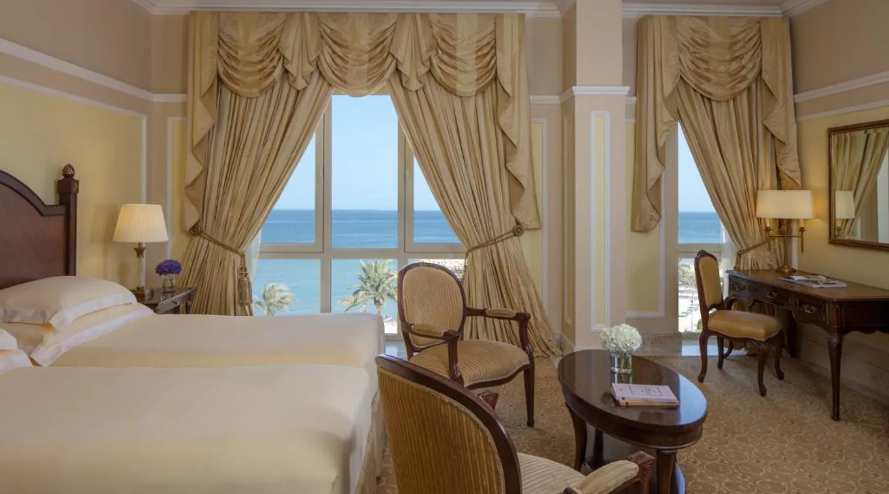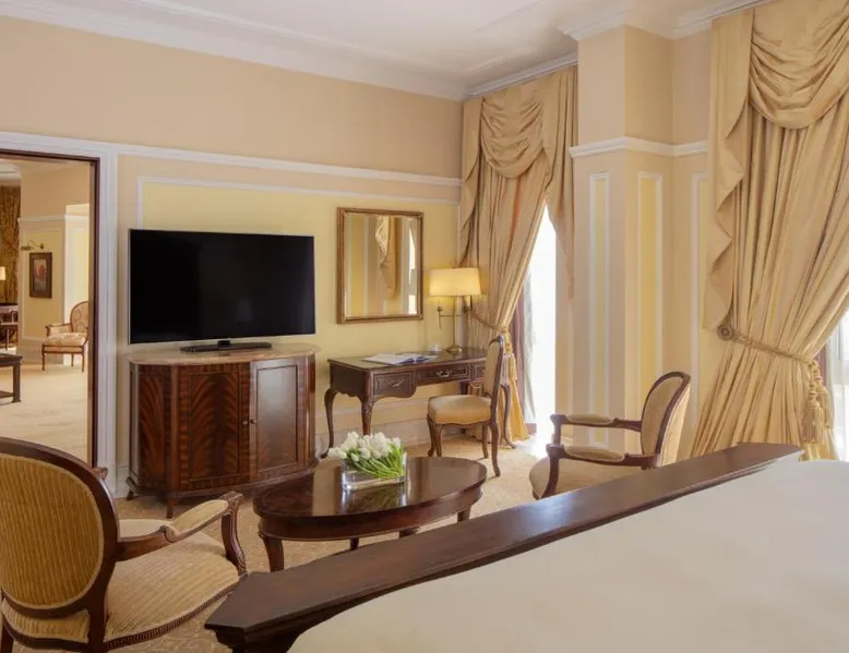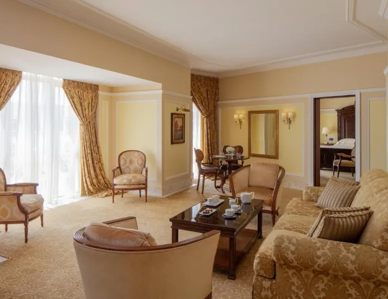 Prime Location: The Regency Hotel Kuwait is located in Kuwait city center, offering easy access to key attractions. City Center Salmiya lies 1.6 mi away, while Al Fanar Complex and The Scientific Center are each 2.5 mi distant. Exceptional Facilities: Guests enjoy a private beach area, beachfront, infinity swimming pool, fitness center, and lush gardens. Additional amenities include a terrace, restaurant, free WiFi, and a kids' club. Comfortable Accommodations: Rooms feature air-conditioning, private bathrooms, sea views, and modern amenities such as mini-bars and flat-screen TVs. Family rooms and interconnected rooms cater to all travelers. Dining Experience: The family-friendly restaurant serves international cuisine with halal, vegetarian, and vegan options. Breakfast includes fresh pastries, pancakes, and a variety of beverages. Kubbar Suite is a 160 sqm suite decorated in a classic mix of Middle Eastern and European styles, with an opulent bedroom, a spectacular marble bathroom boasting a hot tub, exceptional dining-living area and a sea views. Room Facilities: • Complimentary Bottled Water • Complimentary WiFi • Breakfast included • Free Parking • Mini Fridge • Complimentary Tea and Coffee making facilities • Full range of custom-made bathroom amenities • Electronic In-room safe • Writing Desk • Two Flat Screen TVs • Separate lounge • Two separate entrances to bedroom and lounge