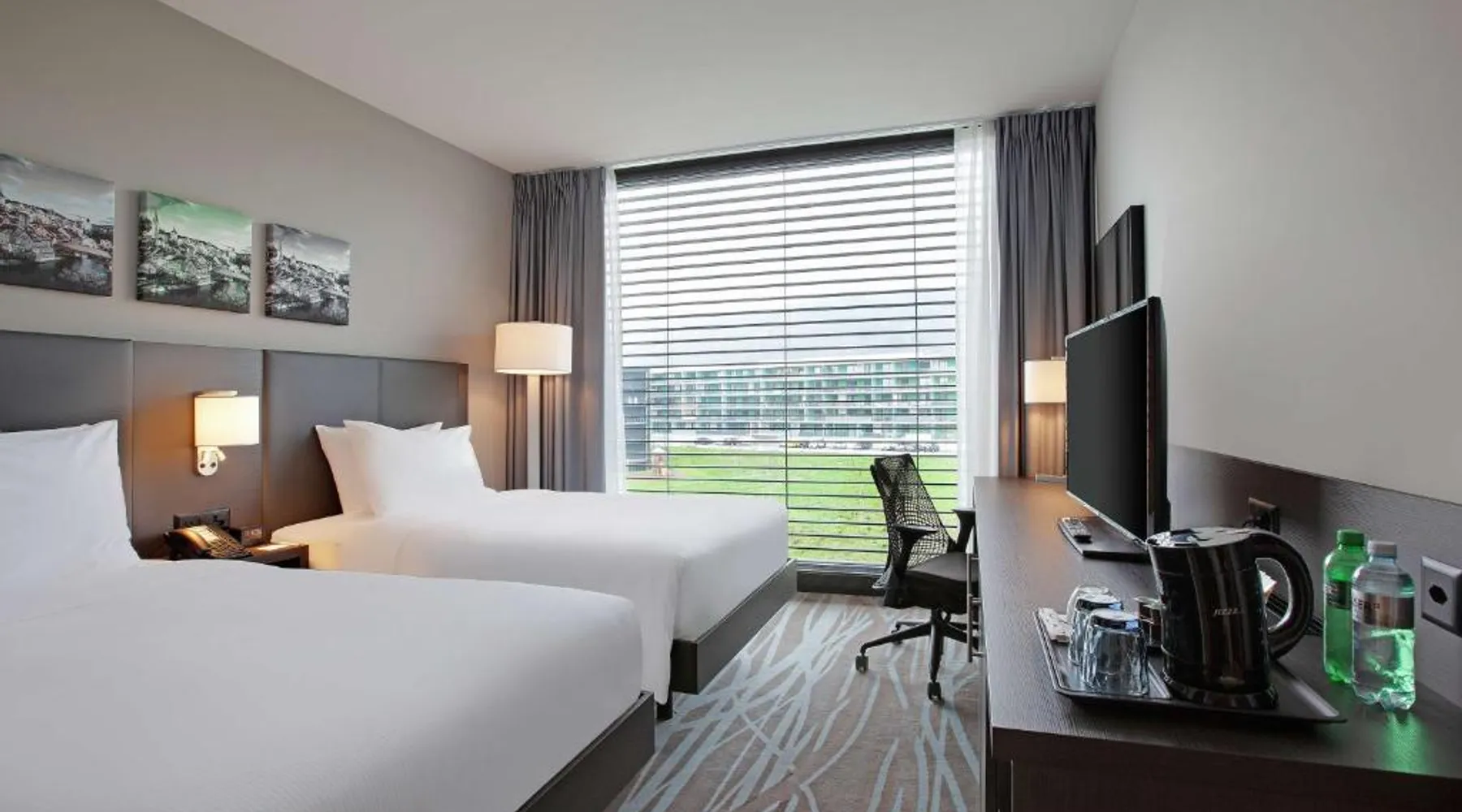 Located in Spreitenbach, Hilton Garden Inn Zurich Limmattal features a restaurant with a show grill and bar with spacious sun terrace. Free WiFi is provided in all areas. Rooms are functional and feature a flat-screen TV with satellite channels and a private bathroom. All rooms are equipped with large desk with an ergonomic chair, air conditioning, an (unfilled) mini fridge, ironing facilities, a safe and a tea/coffee maker. The bathroom has a walk-in shower or a bath/shower combination. A sumptuous buffet breakfast is offered each morning. The hotel also has a cigar lounge serving premium spirits, and also has its own terrace. Hot and cold drinks as well as snacks are available all day long in the lobby bar and pavilion. The on-site fitness center can be used 24/7 free of charge. Guests at Hilton Garden Inn Zurich Limmattal will be able to enjoy activities in and around Spreitenbach, such as jogging or cycling. Shoppi Tivoli (shopping center) and Umweltarena Spreitenbach (convention center) are within walking distance. Staff at the 24-hour front desk can help guests with any queries that they may have. The hotel also has 12 flexible event rooms with 2953 ft² and an additional 2297 ft² terrace with versatile combination possibilities for meetings and events Hilton Garden Inn Zurich Limmattal is 6.2 mi from Baden AG, 11 mi from Zürich and 11 mi from Zürich Airport. This triple room is air-conditioned and has a flat-screen TV, a tea and coffee maker and a safe deposit box. The unit has 2 beds.