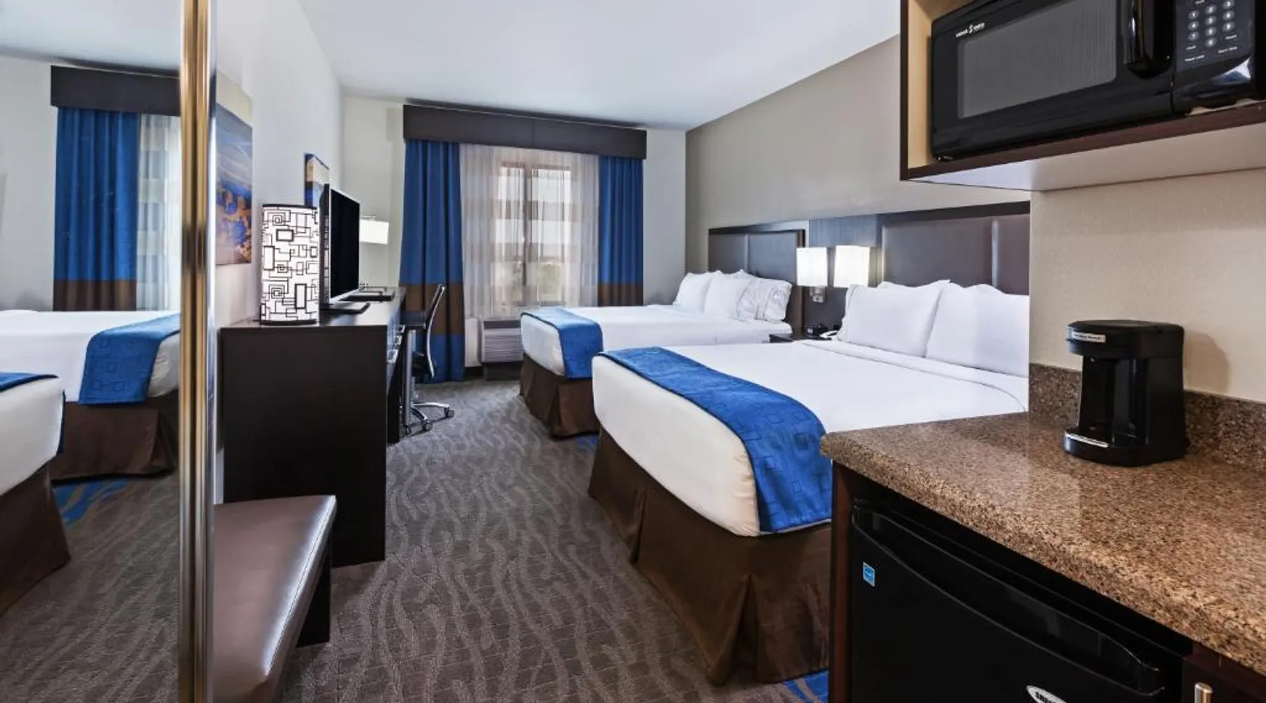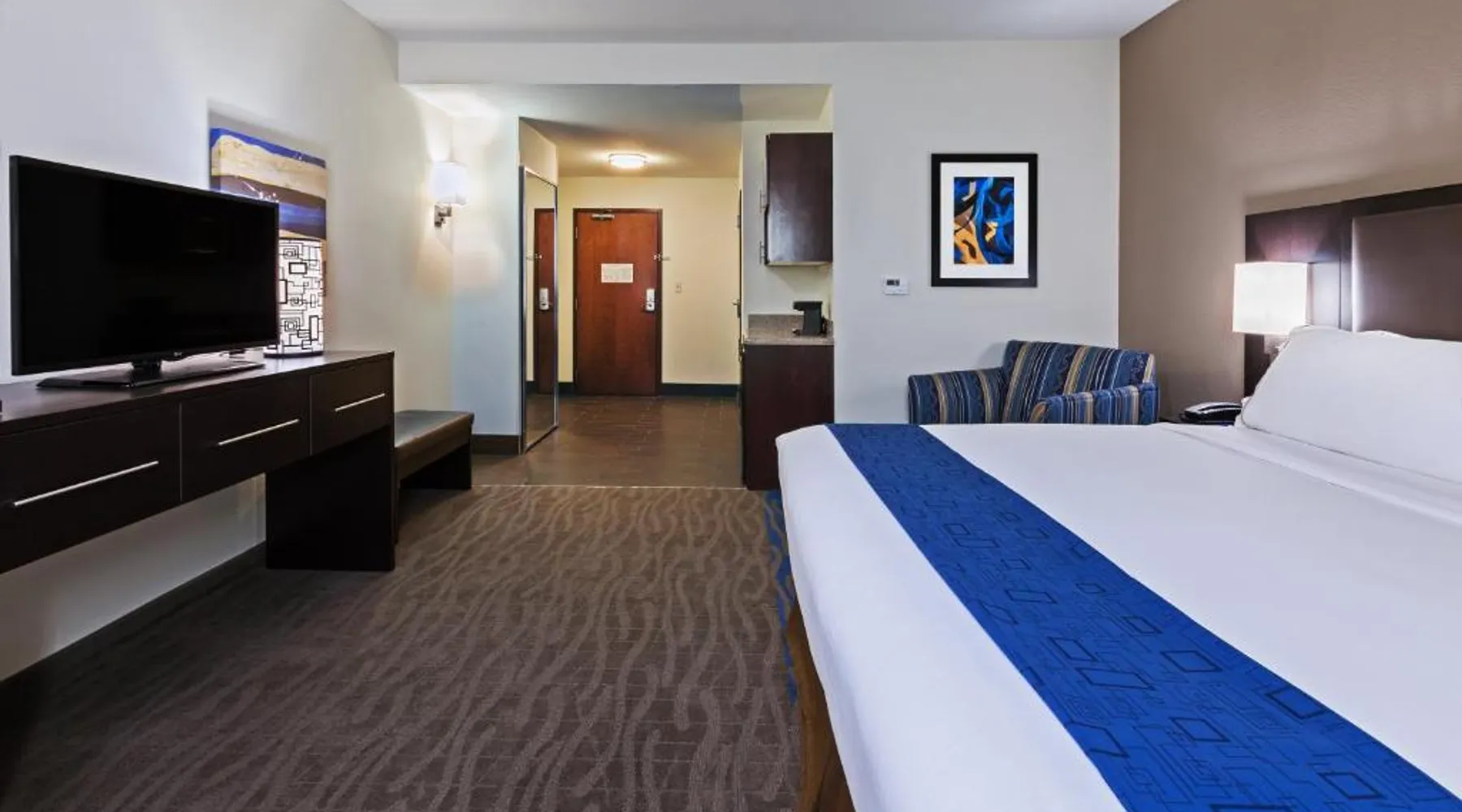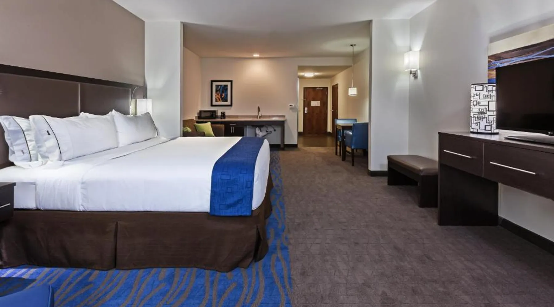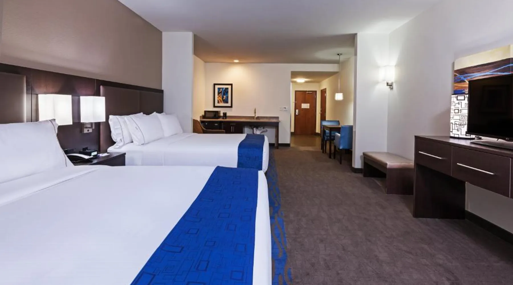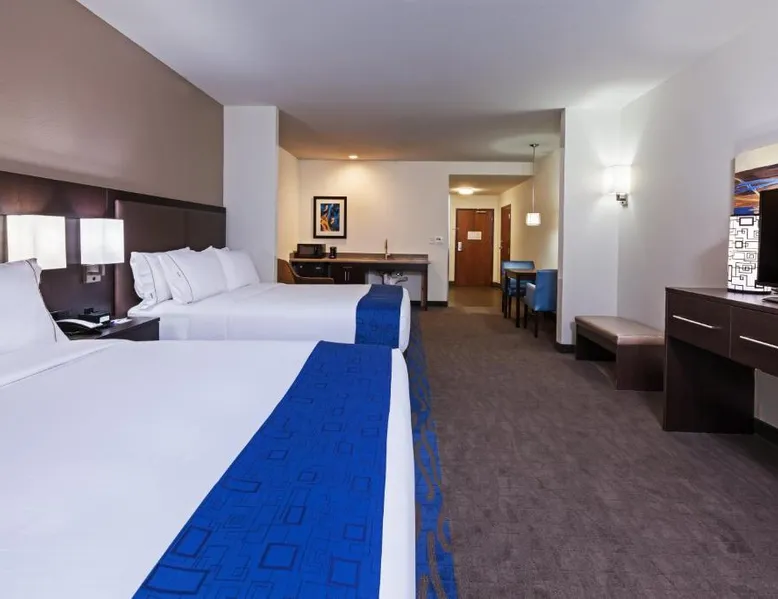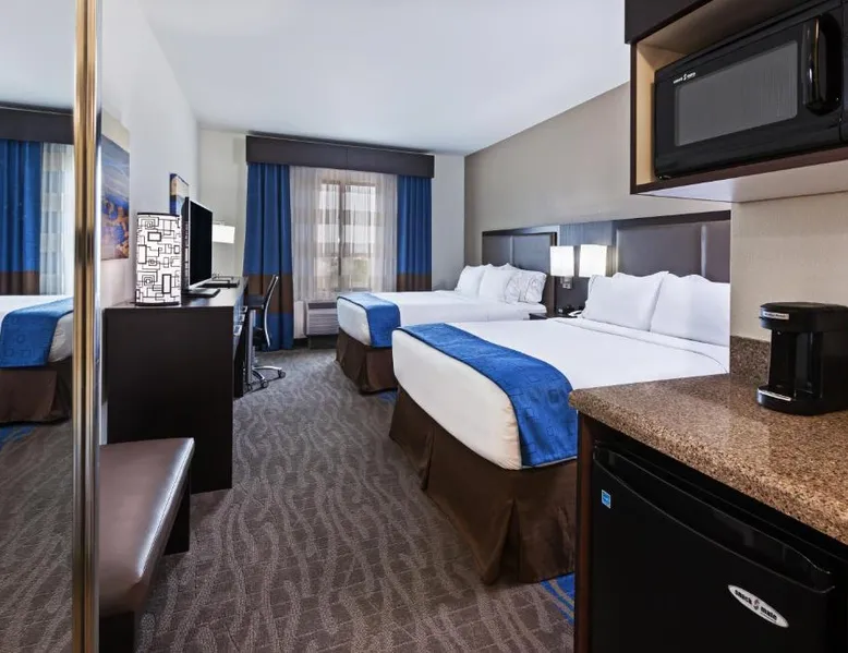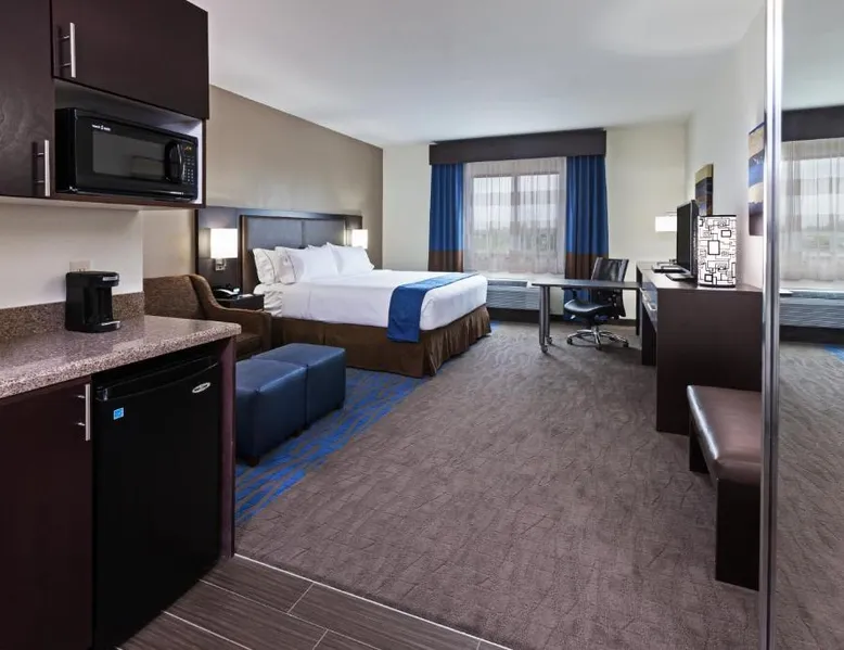 Comfortable Accommodations: Holiday Inn Express & Suites Glenpool by IHG in Glenpool offers family rooms with air-conditioning, private bathrooms, and free WiFi. Each room includes a work desk, TV, and wardrobe. Leisure Facilities: Guests can enjoy an indoor swimming pool, fitness center, and a serene garden. Additional amenities include a lounge, outdoor fireplace, and outdoor seating area. Dining Options: A buffet breakfast is served daily, featuring pancakes and fresh fruits. Free on-site parking is available for all visitors. Convenient Location: Located 21 mi from Tulsa International Airport, the hotel is near attractions such as Philbrook Museum (12 mi) and Brady Theater (13 mi). Guests appreciate the attentive staff and excellent service. Featuring a separate seating area, this suite also comes with a cable TV. There are also a microwave, refrigerator and coffee machine. Ironing facilities and a hairdryer are included.