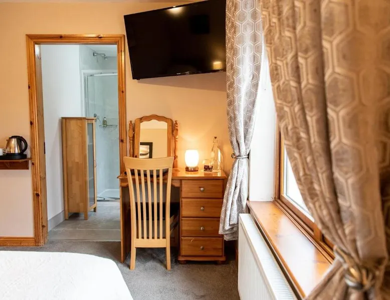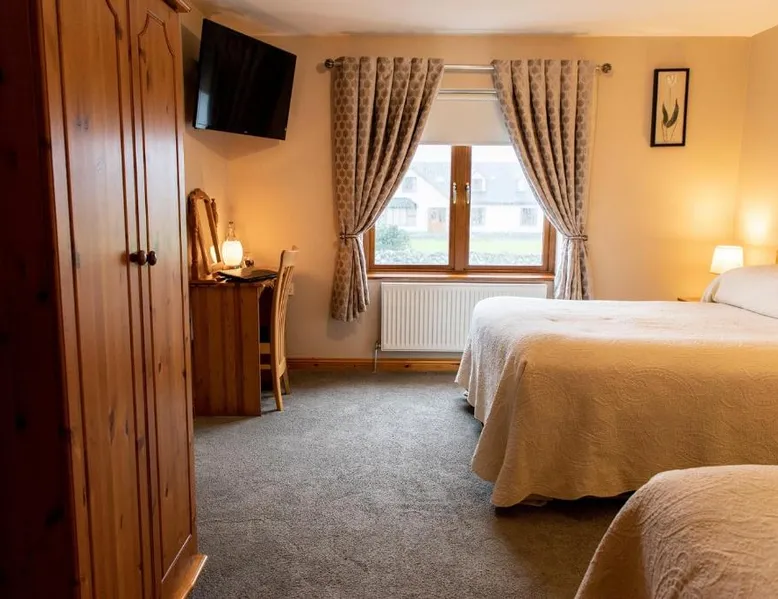 Comfortable Accommodations: Twin Peaks B&B in Doolin offers adults-only rooms with private bathrooms, walk-in showers, and free WiFi. Each room includes a work desk, TV, and electric kettle. Exceptional Facilities: Guests can enjoy a lounge, outdoor seating area, and bicycle parking. Additional amenities include free on-site private parking, luggage storage, and ground-floor units with wardrobes. Delicious Breakfast: A highly rated breakfast is provided by the property, featuring local ingredients and freshly prepared dishes. Prime Location: Located 42 mi from Shannon Airport, the guest house is near attractions such as the Cliffs of Moher (4.3 mi), Doolin Cave (3.1 mi), and Aillwee Cave (16 mi). Offering free toiletries, this double room includes a private bathroom with a walk-in shower and a hairdryer. The double room offers a wardrobe, an electric kettle, a carpeted floor, heating, as well as a flat-screen TV. The unit offers 1 bed.