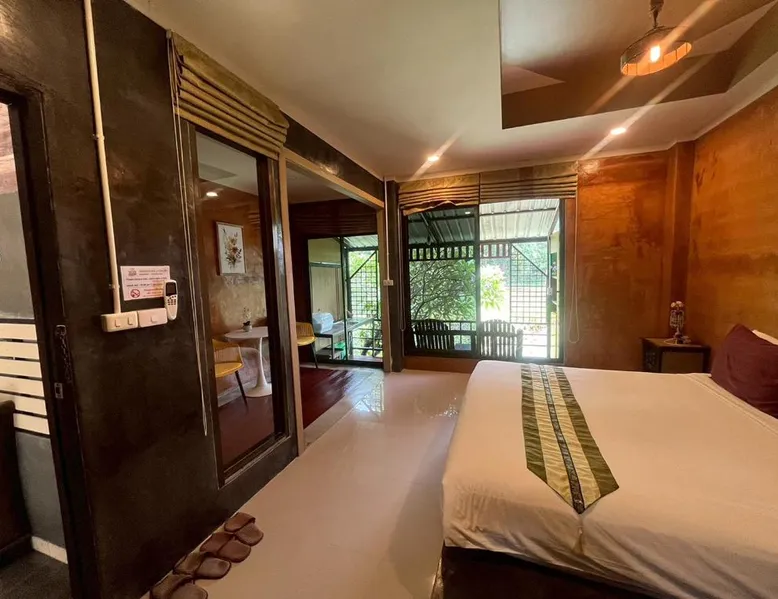 Located within a 5-minute ride from Chiang Rai Clock Tower, Saikaew Resort features cozy cottages with modern facilities with a laundry service. Free WiFi is provided throughout the resort. Saikaew Resort is a 5-minute drive from Sunday Walking Street and a 15-minute ride from Chiang Rai Airport. Wat Chiang Yuan is located 0.6 mi away. On-site parking is provided. Fitted with floor-to-ceiling glass doors, all air-conditioned cottages features a private balcony and a seating area. They are equipped with a cable TV, a fridge and an private bathroom. This air-conditioned twin room has a desk, a balcony, lake views and a private bathroom. The unit has 2 beds.