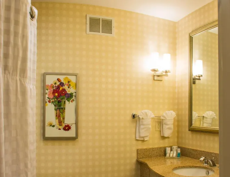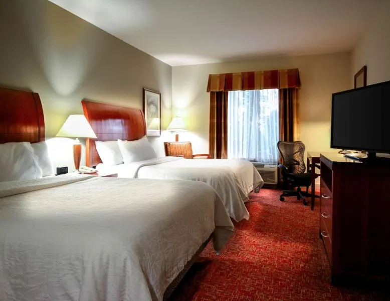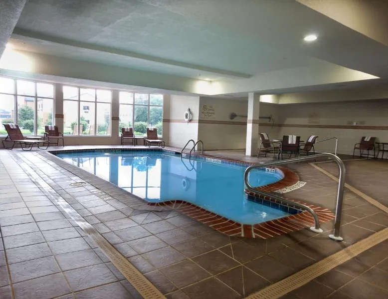 Comfortable Accommodations: Hilton Garden Inn Elkhart in Elkhart offers family rooms with air-conditioning, free WiFi, and amenities such as a tea and coffee maker, refrigerator, work desk, and free toiletries. Dining and Leisure: Guests can enjoy American cuisine at the on-site restaurant and unwind at the bar. The hotel features an indoor swimming pool, outdoor seating area, and a 24-hour front desk. Convenient Location: Located 22 mi from South Bend Regional Airport, the hotel is near attractions like Noter Dame Stadium (16 mi) and the Midwest Museum of American Art (4.3 mi). Free on-site parking is available. Guest Favorites: Guests appreciate the attentive property staff and excellent service support. The quadruple room features air conditioning, a tea and coffee maker and heating. The unit has 2 beds.