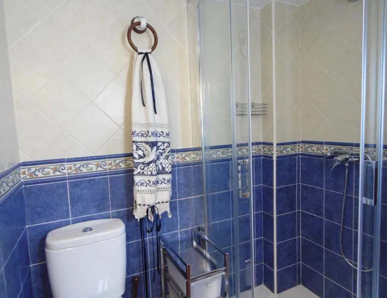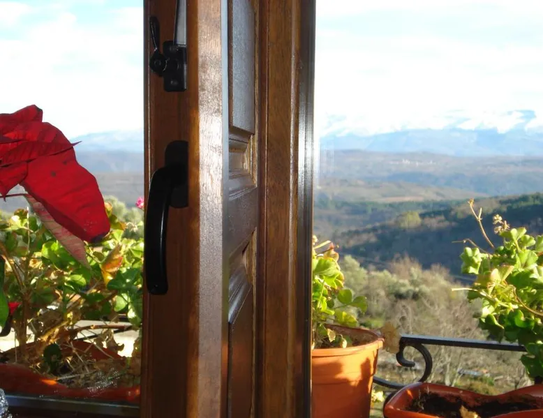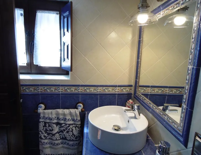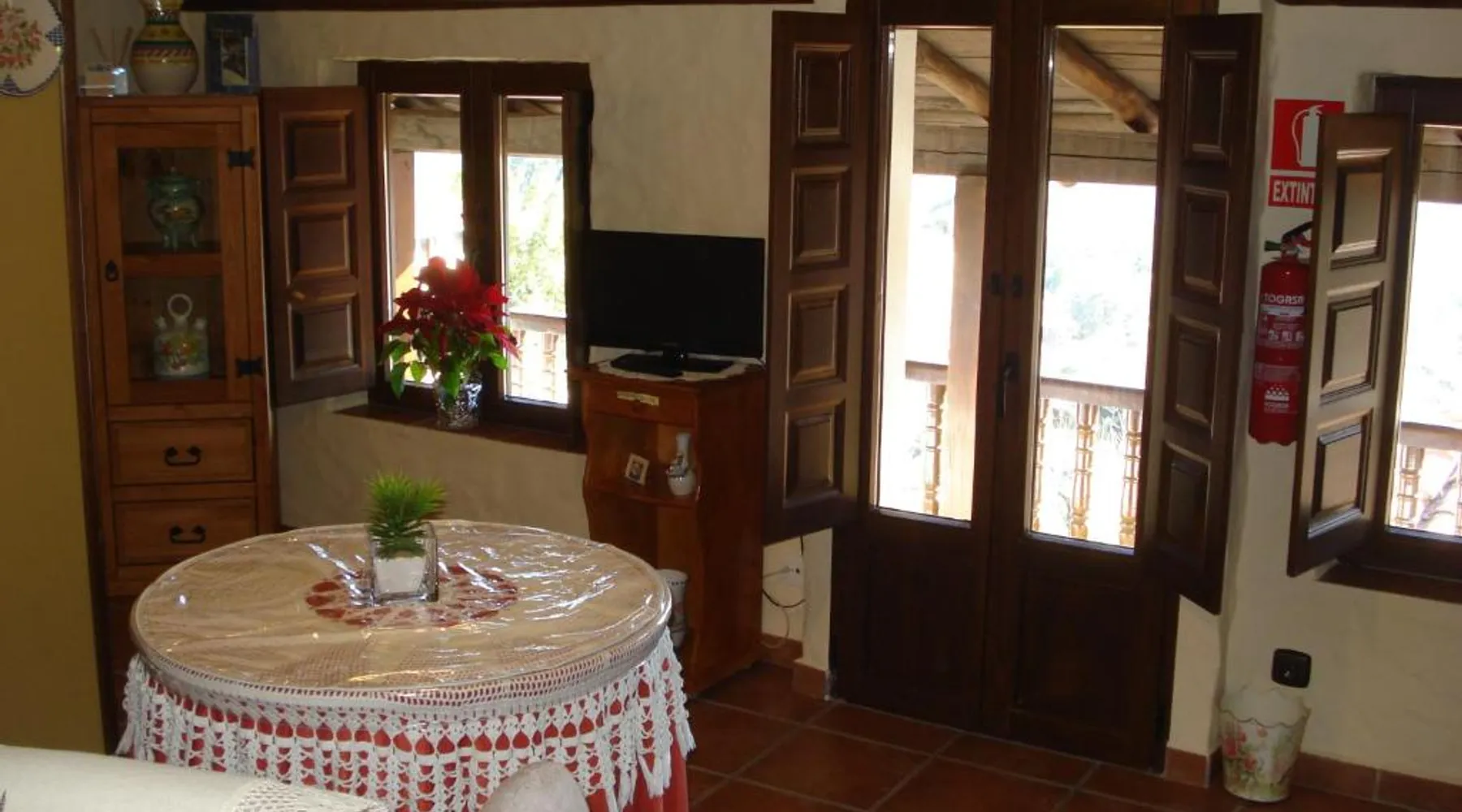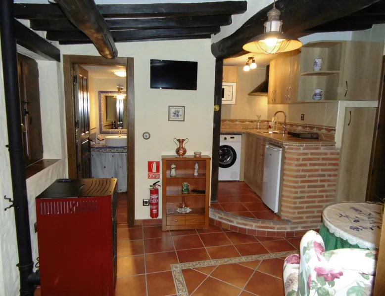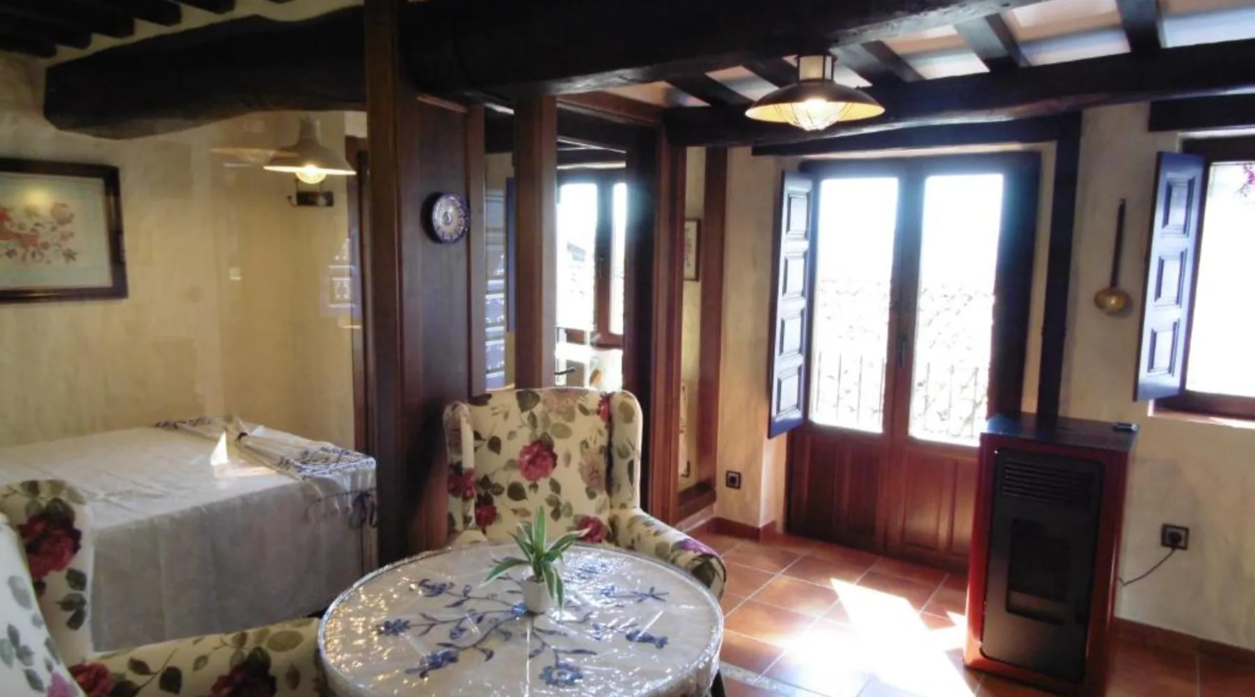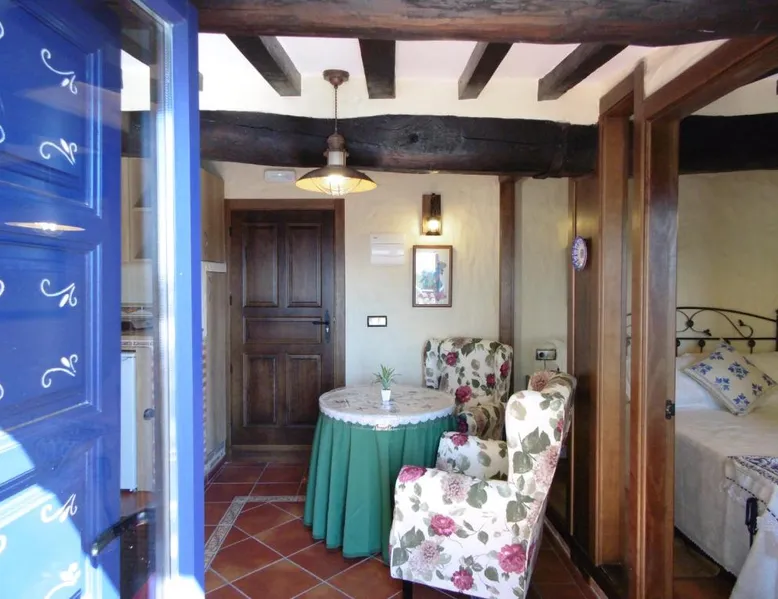 Comfortable Accommodations: Apartamentos Azahar in Mogarraz offers family rooms with free WiFi, ensuring a pleasant stay. Each apartment features a kitchenette, balcony with mountain views, and a private bathroom. Modern Amenities: Guests can enjoy amenities such as a washing machine, fireplace, and air-conditioning. Additional facilities include a dining area, TV, and a fully equipped kitchen with a coffee machine and microwave. Convenient Location: Located 57 mi from Salamanca Airport and 14 mi from Las Batuecas Natural Park, the property provides easy access to local attractions. Hiking enthusiasts can explore the surrounding area. Guest Satisfaction: Highly rated by guests for its breakfast, convenient location, and room cleanliness, Apartamentos Azahar offers a comfortable and hassle-free stay. This double room includes a seating area and a flat-screen TV. The private bathroom has a shower.