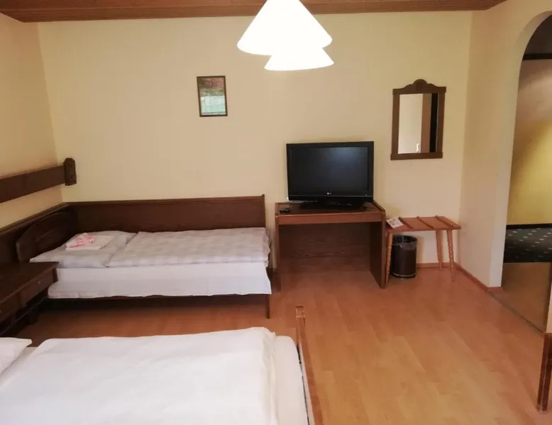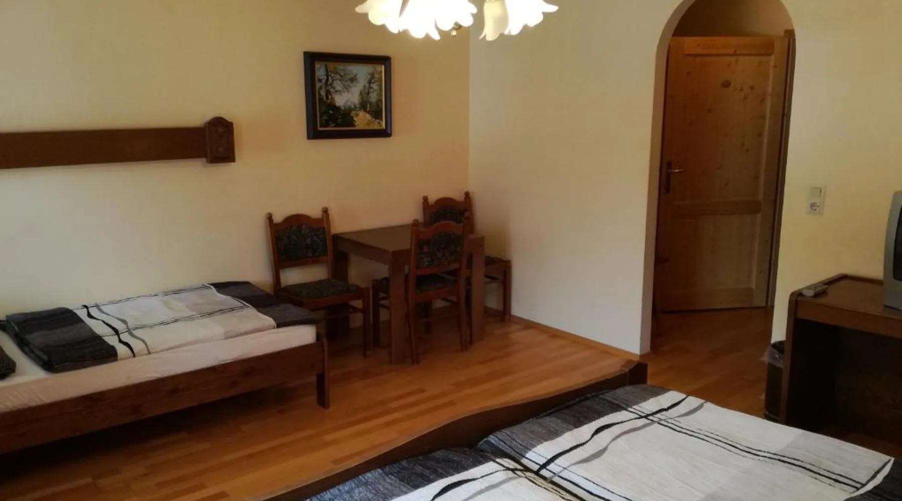 Comfortable Accommodations: Gasthof Kirchenwirt in Lackenhof offers family rooms with private bathrooms, balconies, and mountain views. Each room includes a work desk, TV, and free WiFi. Dining Experience: The traditional restaurant serves Austrian cuisine with vegetarian and vegan options. Guests enjoy a warm breakfast with fresh pastries, cheese, fruits, and juice. Leisure Facilities: The hotel features a sun terrace, bar, and indoor play area. Additional amenities include a lounge, elevator, and outdoor seating area. Location and Activities: Located 76 mi from Linz Airport, the property is near winter sports and attractions such as Gaming Charterhouse (9.9 mi) and Basilika Mariazell (17 mi). Guests can enjoy skiing, hiking, and cycling. Providing free toiletries, this triple room includes a private bathroom with a shower and a hairdryer. The triple room provides a private entrance, a wardrobe, a safe deposit box, parquet floors, as well as a TV with cable channels. The unit offers 2 beds.
