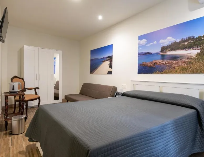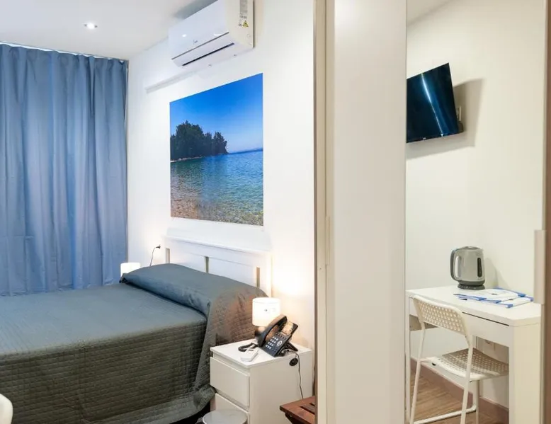 Comfortable Accommodations: Innmare Fortuna Hotel Dos Estrellas in Marín offers family rooms with air-conditioning, private bathrooms, and free WiFi. Each room includes a work desk, TV, and soundproofing for a pleasant stay. Exceptional Facilities: Guests can enjoy massage services, beauty treatments, and a fitness center. Additional amenities include a terrace, balcony, and mini-bar, ensuring relaxation and convenience. Convenient Location: Located 22 mi from Vigo Airport, the hotel is an 18-minute walk from Portocelo Beach. Nearby attractions include Pontevedra Railway Station (5 mi) and Teatro Principal (4.3 mi). Guests appreciate the convenient location and value for money. The double room offers air conditioning, a private entrance, a terrace with city views as well as a private bathroom featuring a shower. The unit offers 1 bed.