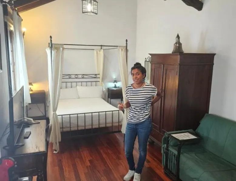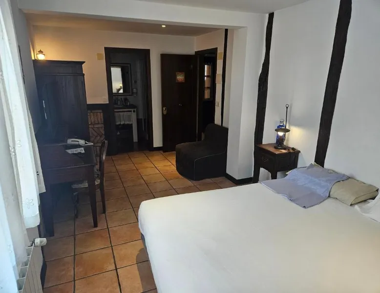Located in the attractive mountain town of Lesaka and surrounded by a striking landscape of valleys, this is a cozy and tastefully decorated hotel with traditional exposed beams and décor. An inviting hotel that offers a more personal touch with just 6 comfortable rooms, 2 of which are duplex and ideal for families or groups of 4 guests. In addition there is also a relaxation area with sauna and spa. The area caters well for outdoor enthusiasts and there is much to see and do. Just a 20 minute drive away takes you to the beaches of Donostia, Biarritz and Fuenterrabia, walking enthusiasts have the Baztan, Larrun and Señorio de Bertiz mountain ranges or you can take a day trip and visit the Zugarramurdi or Sara caves. The double room offers a tea and coffee maker, a wardrobe, a terrace with a quiet street view as well as a private bathroom featuring a shower. The unit offers 1 bed.