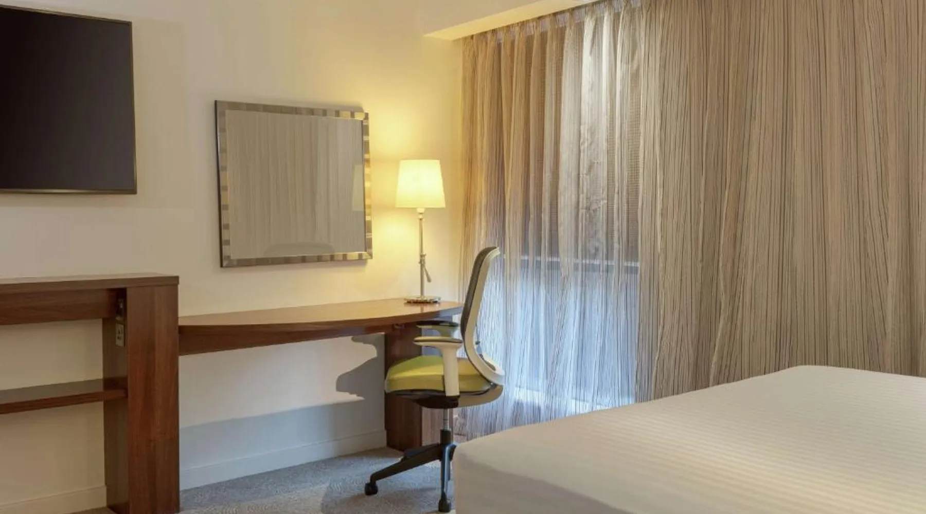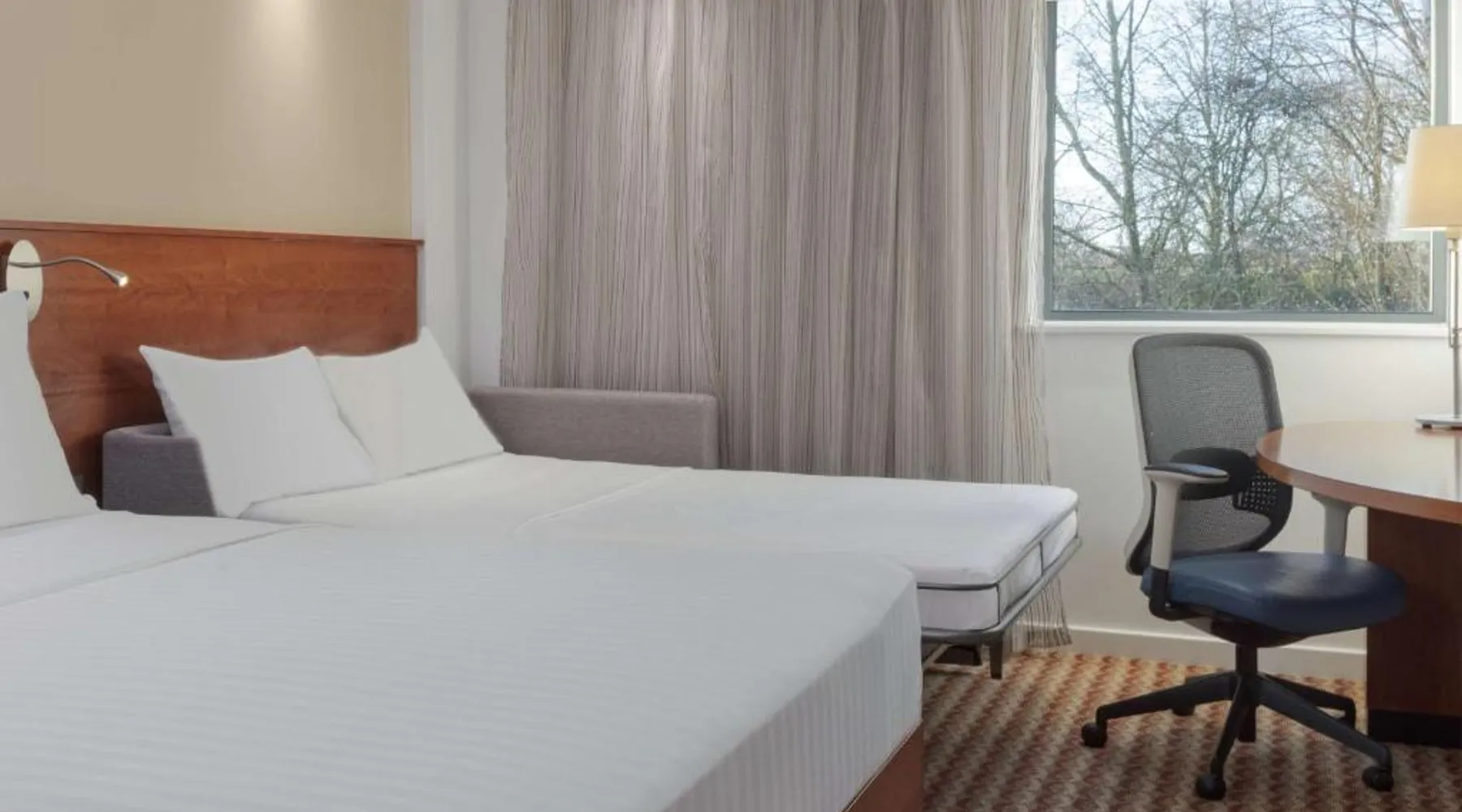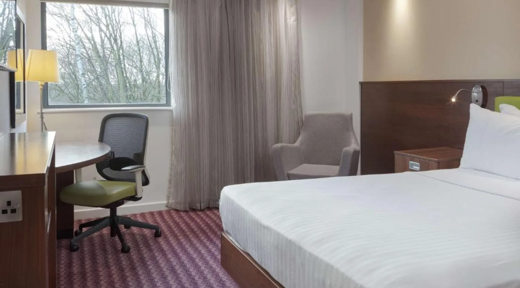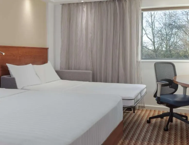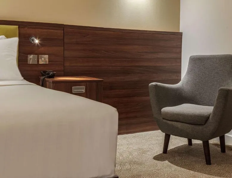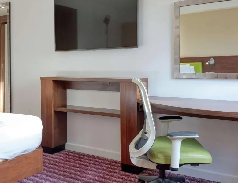 In Rockingham Leisure Park, Hampton has a fitness center and free private parking. There is a 24-hour snack shop and rooms feature free wired internet access and an LCD TV. The modern rooms with attached bathroom at the Hampton have an extra sofa bed, tea/coffee facilities, a work desk and a walk-in power shower. The Hampton Corby hotel bar serves hot snacks, while the restaurant offers traditional and international cuisine. A hot breakfast is available to guests. Hampton by Hilton Corby is a 20-minute drive from Kettering. The historic Rockingham Castle is 5 minutes' drive away. Corby Rail Station is within an 8-minute drive and London is a 90-minute train journey away. This double room is air-conditioned and features a flat-screen TV, a safe deposit box and heating. The unit offers 1 bed.