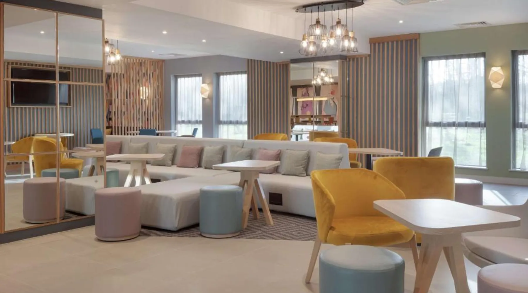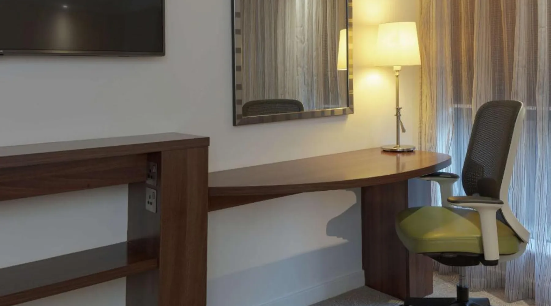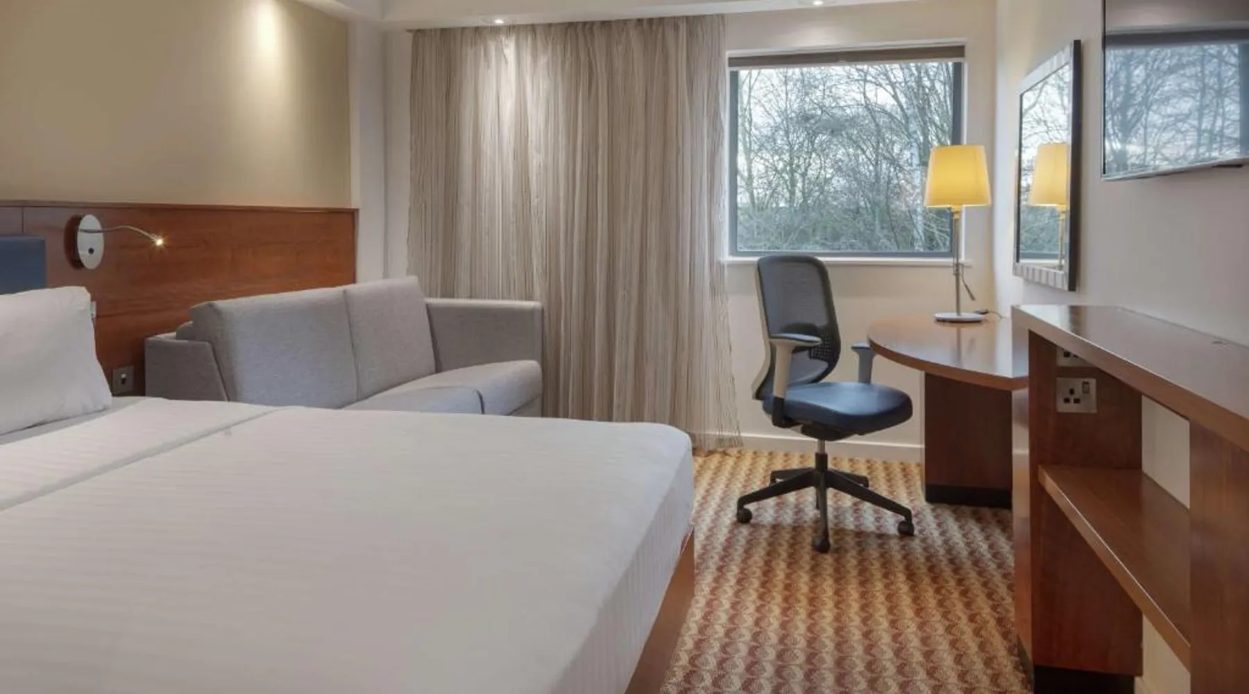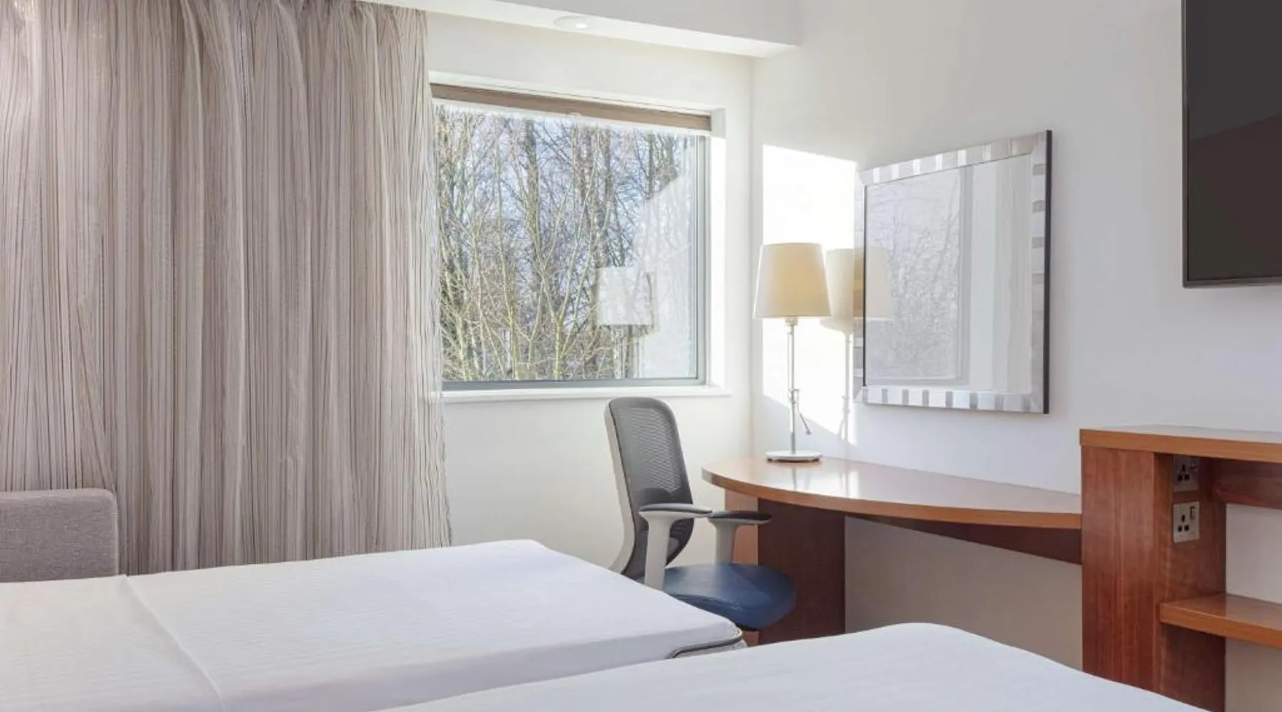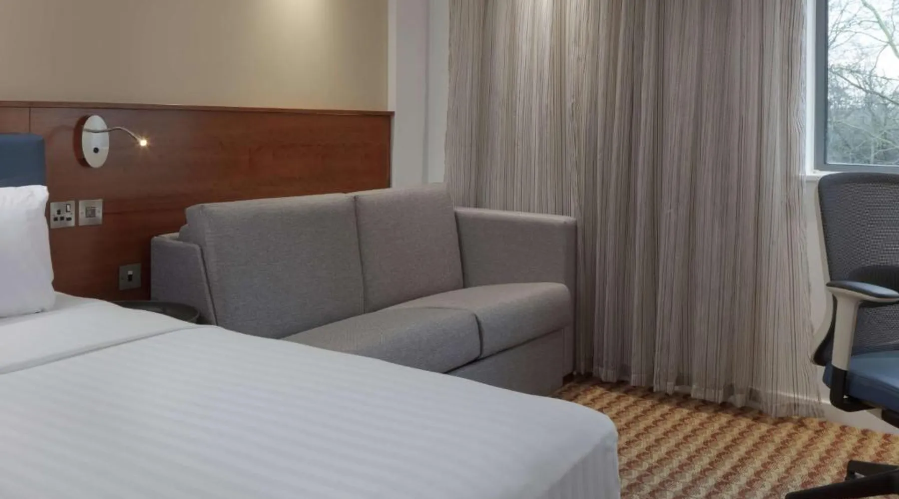 In Rockingham Leisure Park, Hampton has a fitness center and free private parking. There is a 24-hour snack shop and rooms feature free wired internet access and an LCD TV. The modern rooms with attached bathroom at the Hampton have an extra sofa bed, tea/coffee facilities, a work desk and a walk-in power shower. The Hampton Corby hotel bar serves hot snacks, while the restaurant offers traditional and international cuisine. A hot breakfast is available to guests. Hampton by Hilton Corby is a 20-minute drive from Kettering. The historic Rockingham Castle is 5 minutes' drive away. Corby Rail Station is within an 8-minute drive and London is a 90-minute train journey away. This double room is air-conditioned and features a flat-screen TV, a safe deposit box and heating. The unit offers 1 bed.
