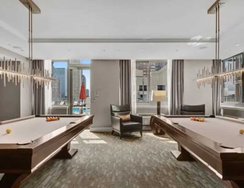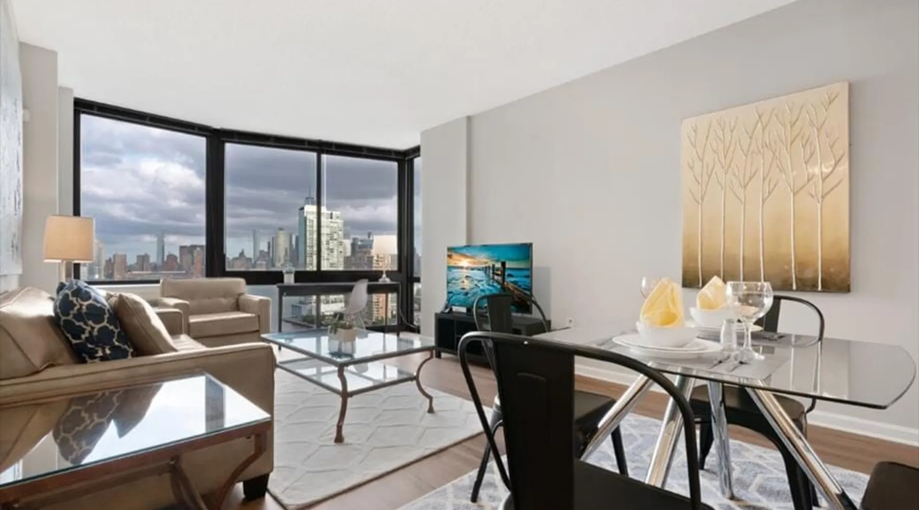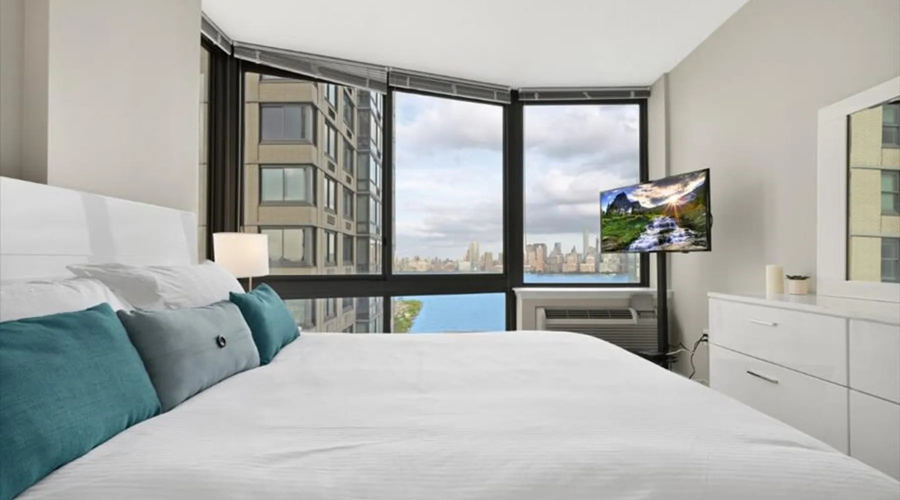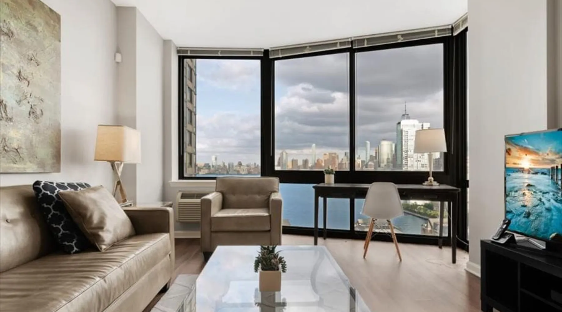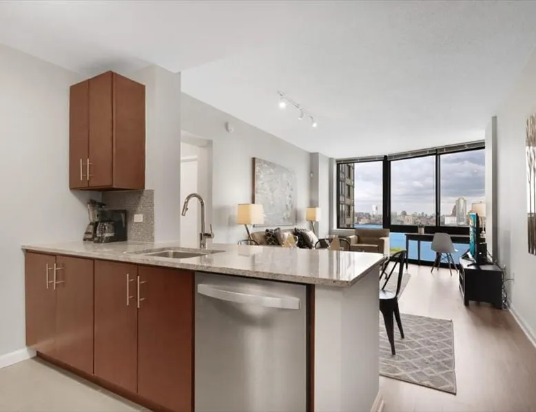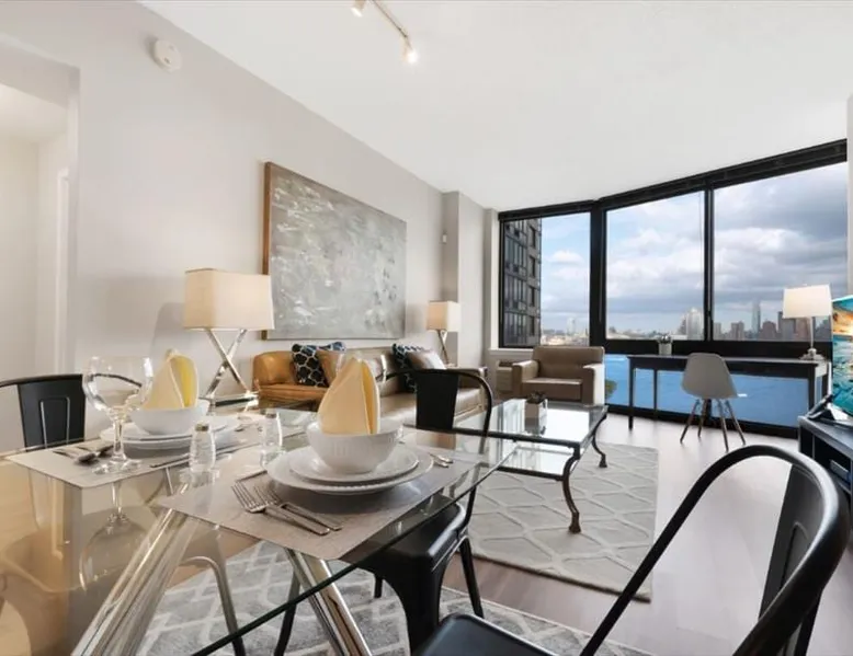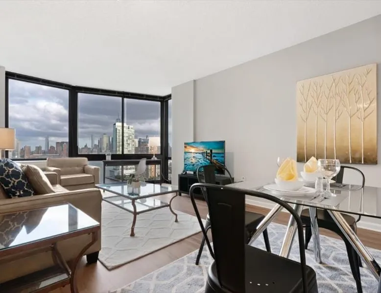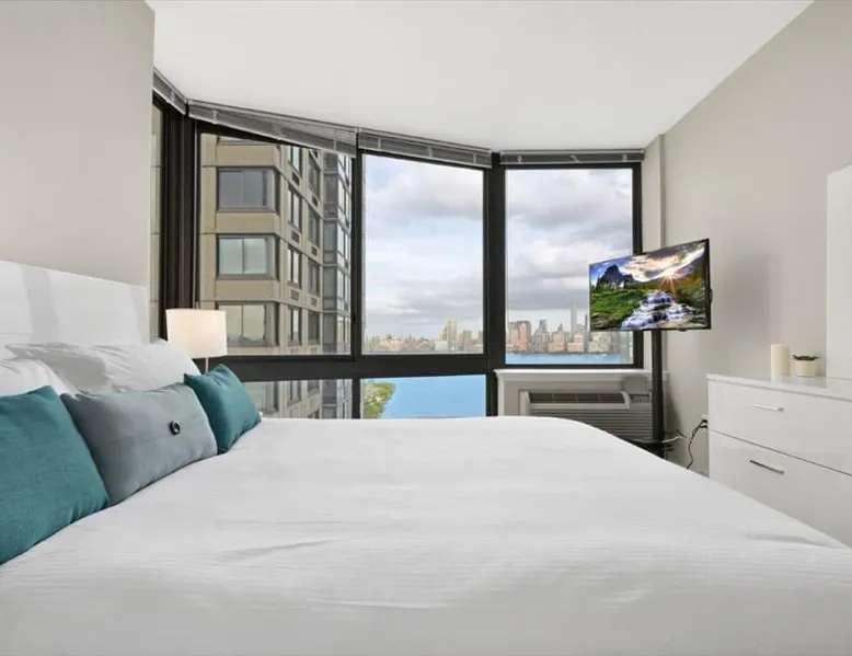 Soaring 50 stories above the Hudson River, this glamorous tower has everything a traveler would need (and more!) for a trip to the NYC metro. Enjoy all the bells and whistles, including: Upscale furnishings, tall ceilings, and gourmet kitchens in every unit Resort-style building amenities such as an outdoor pool, theater room, gym, and 24/7 concierge Light rail steps from the front door and easy access to PATH Walkable neighborhood a block from Newport Centre The space Why stay in Manhattan when you can savor the peace and quiet of this luxurious Jersey City high-rise? Away from the hustle and bustle of Times Square and Fifth Avenue, this Downtown Jersey City building is a better value than anything you’d find across the Hudson - and you can still get to NYC in minutes via the ferry or the PATH train. Rest and relax in this peaceful oasis perched on the edge of the river, which features plush mattresses, sophisticated wood furnishings, and spacious closets so you can unpack and stay for a while. In the bathroom, you’ll find masterful tile work and modern fixtures - plus towels and toiletries provided for your convenience. After a day at the Metropolitan Museum of Art, a matinee show on Broadway, or a packed agenda of meetings, you’re bound to be hungry, Cook up a storm in the full kitchen, which features stainless steel appliances, including a full-size fridge and freezer, an electric stove, an oven, a microwave, and a dishwasher. In addition to glamorous granite countertops, the dark wood cabinets are stocked with dishes, cookware, and utensils - and all-important extras like a coffee maker and a blender. Thanks to the spacious floor plan and nine-foot ceilings, there’s plenty of room for friends, family, or colleagues - or just enjoy all that space solo! Dine in style at the dining table, catch up on email at the desk, or kick back and watch your favorite show on the couch. The living space is illuminated by natural light from the large windows, which open up to expansive city views. This apartment has all the essential amenities: Full kitchen Flat-screen TV Washer and dryer High speed wireless internet Heat and air conditioning Linens and towels The building also has more than enough luxurious facilities to keep everyone entertained, from a sunny outdoor pool to a state-of-the art fitness center to a playground designed especially for kids. Year-round fun can be had outside on the sundeck or inside the cozy lobby by the warmth of a fireplace. Families will appreciate the children’s playroom, the Hollywood-style theater room, and the pool tables in the club room. And business travelers will relish the convenience of an on-site business center and conference room. Thanks to 24-hour concierge service, you’ll always have a friendly face nearby to help with ticket purchases, restaurant reservations, and area information. Complete building features: Outdoor pool and sun deck Community greenscape with BBQs and outdoor seating Fitness center Whirlpool spa Club room with billiards and TVs Children’s playroom and playground Lobby area with fireplaces Theater room Business center and conference room Dog run and washing station Ground-floor retail 24-hour concierge service Covered parking garage Heading into NYC or exploring the NY metro area? This high-rise is conveniently located down the street from the NY Waterway Ferry, the Hudson-Bergen Light Rail, and the PATH train. Getting into the Big Apple has never been easier! Guest access Building Amenities • 24 hour doorman • 24 hour concierge services • Heated outdoor pool, whirlpool spa, and lounge pool • Sundeck with fireside seating • Clubroom with billiards & HDTVs • Large conference room • Health & Fitness center • Community greenscape with outdoor seating • Pet friendly with dog run and pet wash room • State-of-the-art theater room • Crayon Corner playroom and outdoor playground • Fire pit & outdoor grilling area • Lobby area with fireplaces • Ground-floor retail • Covered parking • Non-smoking Other things to note Street Closure from 2AM to 2PM the next day - Garage will be inaccessible from 6th Street and Washington Blvd