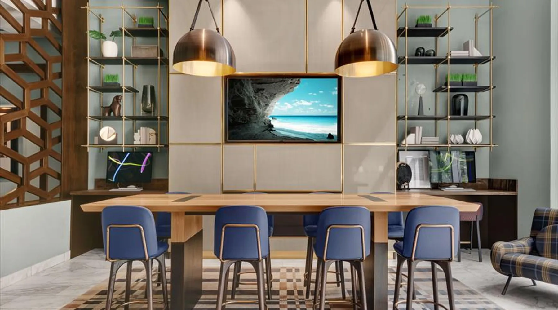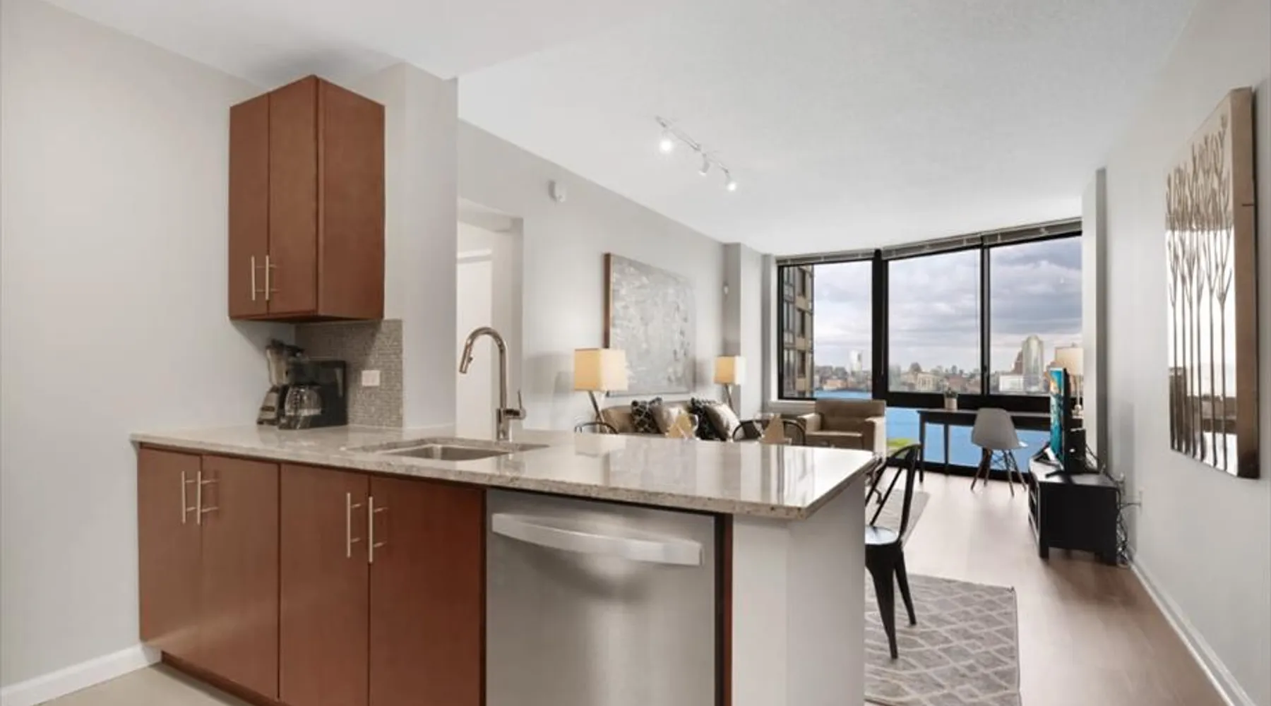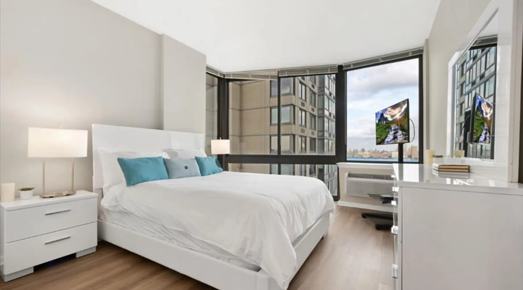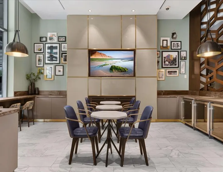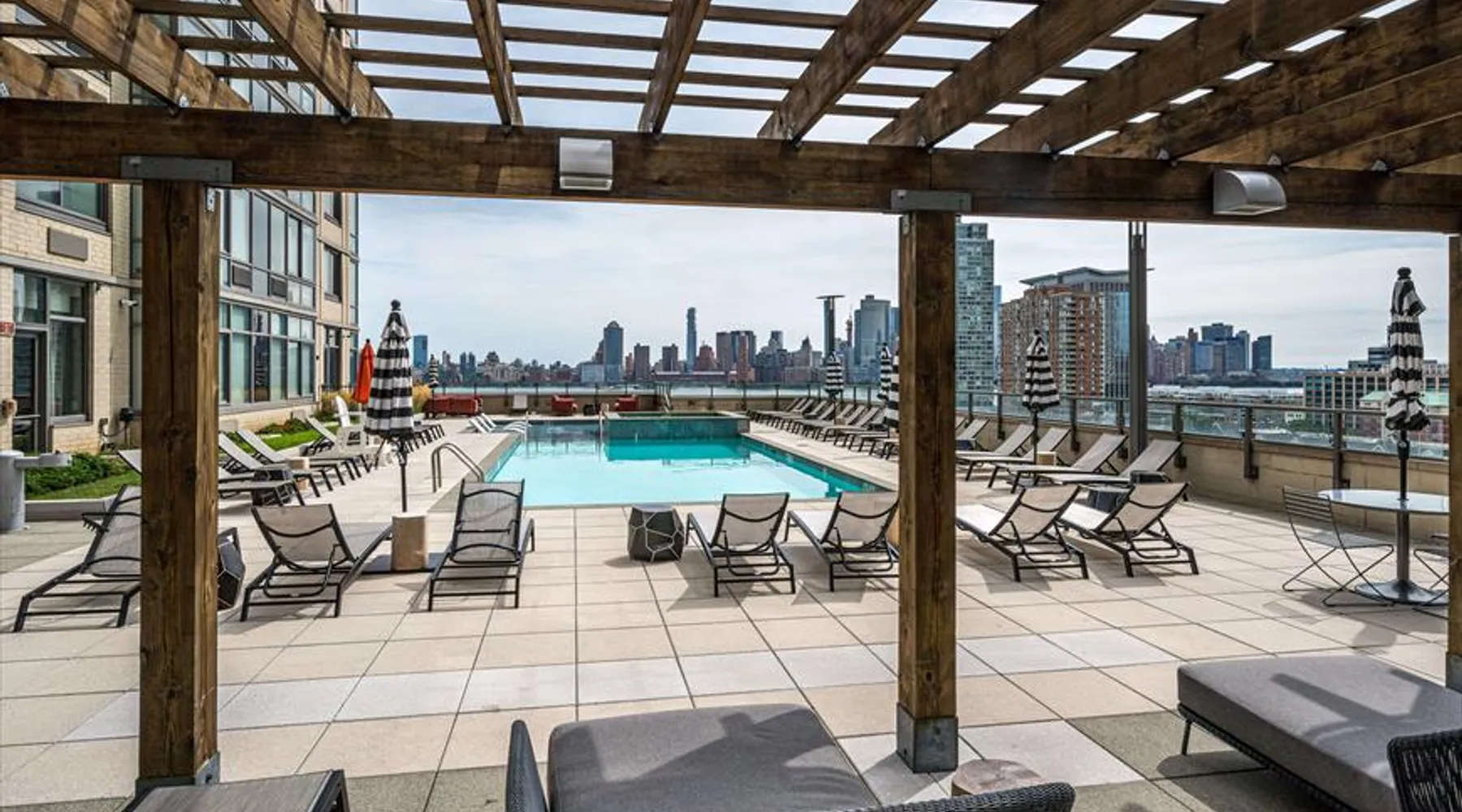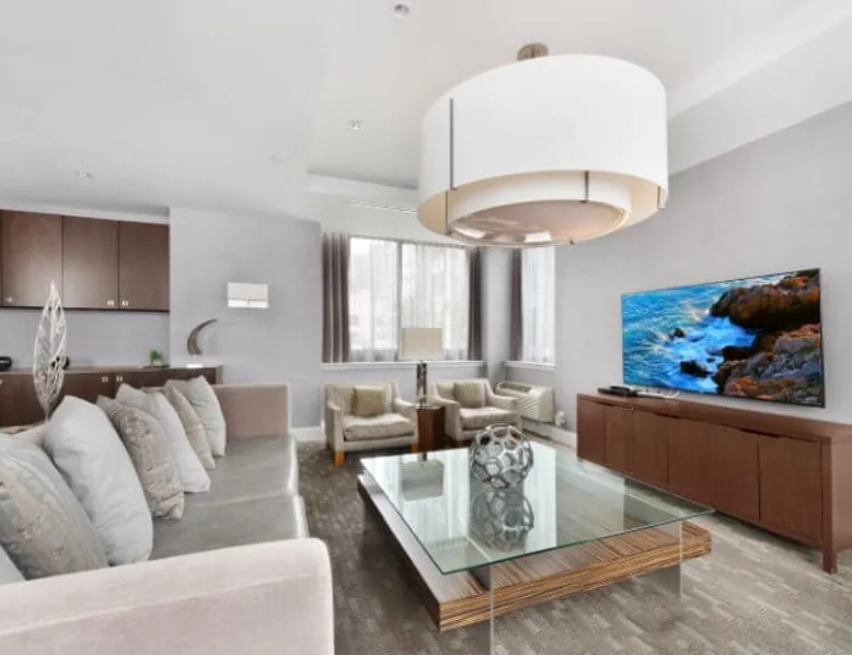 Soaring 50 stories above the Hudson River, this glamorous tower has everything a traveler would need (and more!) for a trip to the NYC metro. Enjoy all the bells and whistles, including: Upscale furnishings, tall ceilings, and gourmet kitchens in every unit Resort-style building amenities such as an outdoor pool, theater room, gym, and 24/7 concierge Light rail steps from the front door and easy access to PATH Walkable neighborhood a block from Newport Centre The space Why stay in Manhattan when you can savor the peace and quiet of this luxurious Jersey City high-rise? Away from the hustle and bustle of Times Square and Fifth Avenue, this Downtown Jersey City building is a better value than anything you’d find across the Hudson - and you can still get to NYC in minutes via the ferry or the PATH train. Rest and relax in this peaceful oasis perched on the edge of the river, which features plush mattresses, sophisticated wood furnishings, and spacious closets so you can unpack and stay for a while. In the bathroom, you’ll find masterful tile work and modern fixtures - plus towels and toiletries provided for your convenience. After a day at the Metropolitan Museum of Art, a matinee show on Broadway, or a packed agenda of meetings, you’re bound to be hungry, Cook up a storm in the full kitchen, which features stainless steel appliances, including a full-size fridge and freezer, an electric stove, an oven, a microwave, and a dishwasher. In addition to glamorous granite countertops, the dark wood cabinets are stocked with dishes, cookware, and utensils - and all-important extras like a coffee maker and a blender. Thanks to the spacious floor plan and nine-foot ceilings, there’s plenty of room for friends, family, or colleagues - or just enjoy all that space solo! Dine in style at the dining table, catch up on email at the desk, or kick back and watch your favorite show on the couch. The living space is illuminated by natural light from the large windows, which open up to expansive city views. This apartment has all the essential amenities: Full kitchen Flat-screen TV Washer and dryer High speed wireless internet Heat and air conditioning Linens and towels The building also has more than enough luxurious facilities to keep everyone entertained, from a sunny outdoor pool to a state-of-the art fitness center to a playground designed especially for kids. Year-round fun can be had outside on the sundeck or inside the cozy lobby by the warmth of a fireplace. Families will appreciate the children’s playroom, the Hollywood-style theater room, and the pool tables in the club room. And business travelers will relish the convenience of an on-site business center and conference room. Thanks to 24-hour concierge service, you’ll always have a friendly face nearby to help with ticket purchases, restaurant reservations, and area information. Complete building features: Outdoor pool and sun deck Community greenscape with BBQs and outdoor seating Fitness center Whirlpool spa Club room with billiards and TVs Children’s playroom and playground Lobby area with fireplaces Theater room Business center and conference room Dog run and washing station Ground-floor retail 24-hour concierge service Covered parking garage Heading into NYC or exploring the NY metro area? This high-rise is conveniently located down the street from the NY Waterway Ferry, the Hudson-Bergen Light Rail, and the PATH train. Getting into the Big Apple has never been easier! Guest access Building Amenities • 24 hour doorman • 24 hour concierge services • Heated outdoor pool, whirlpool spa, and lounge pool • Sundeck with fireside seating • Clubroom with billiards & HDTVs • Large conference room • Health & Fitness center • Community greenscape with outdoor seating • Pet friendly with dog run and pet wash room • State-of-the-art theater room • Crayon Corner playroom and outdoor playground • Fire pit & outdoor grilling area • Lobby area with fireplaces • Ground-floor retail • Covered parking • Non-smoking Other things to note Street Closure from 2AM to 2PM the next day - Garage will be inaccessible from 6th Street and Washington Blvd