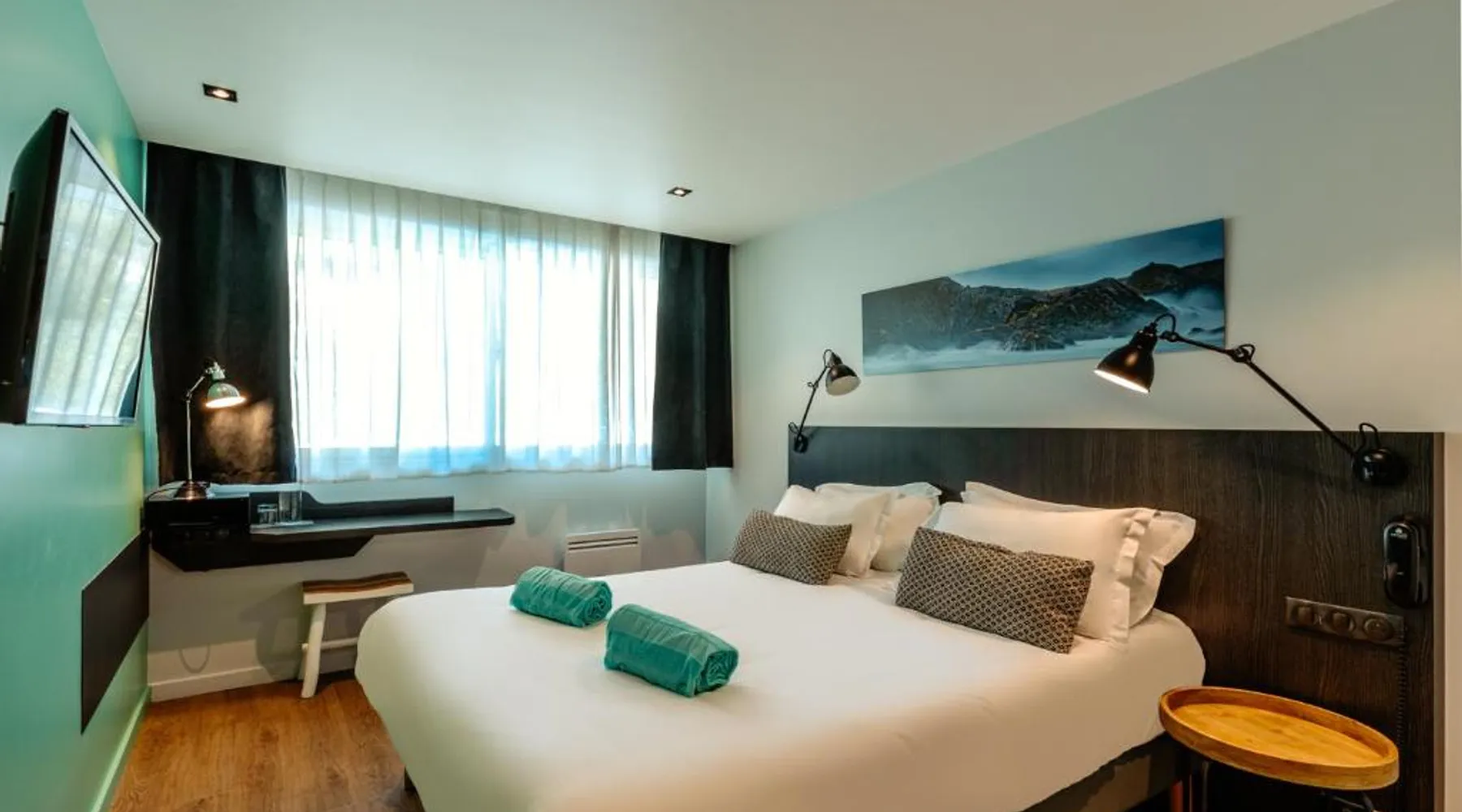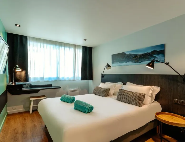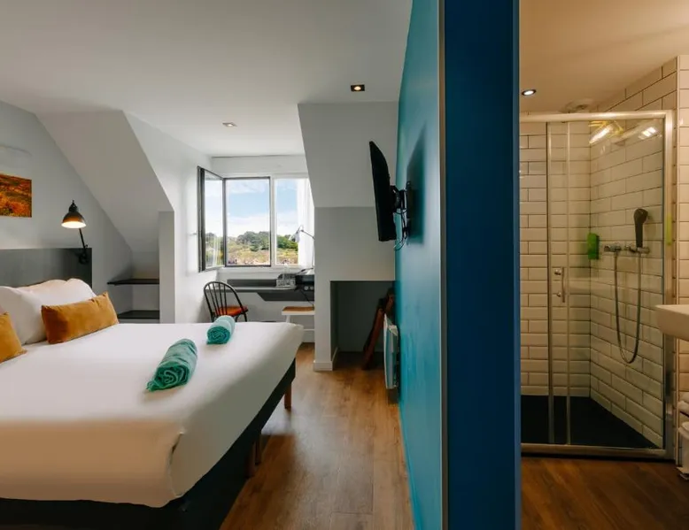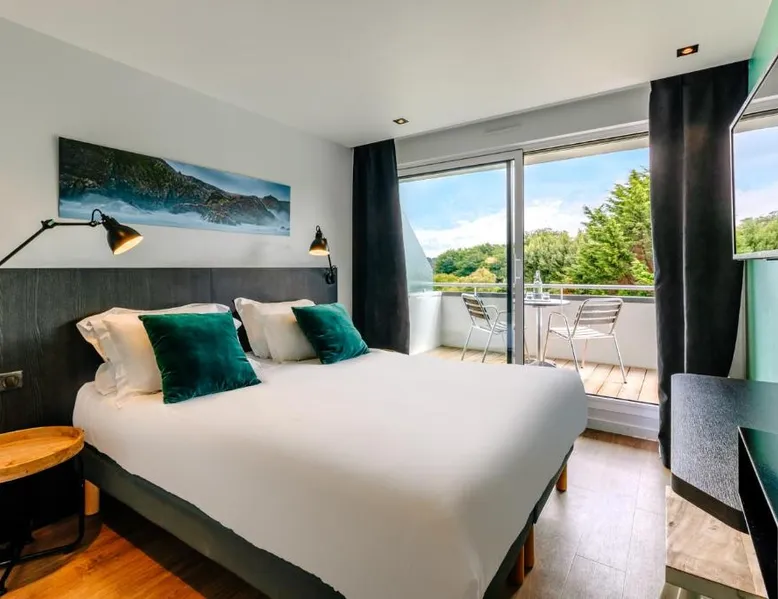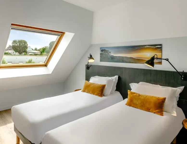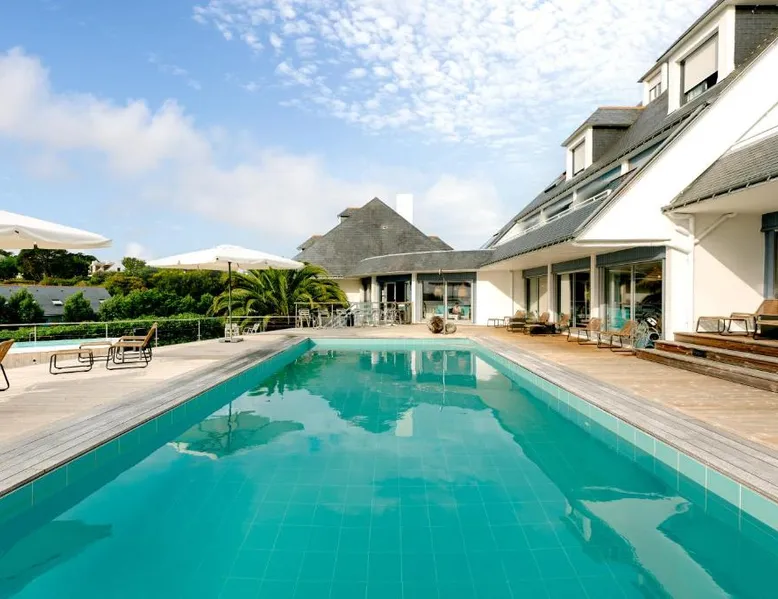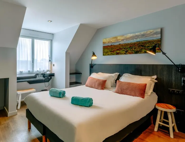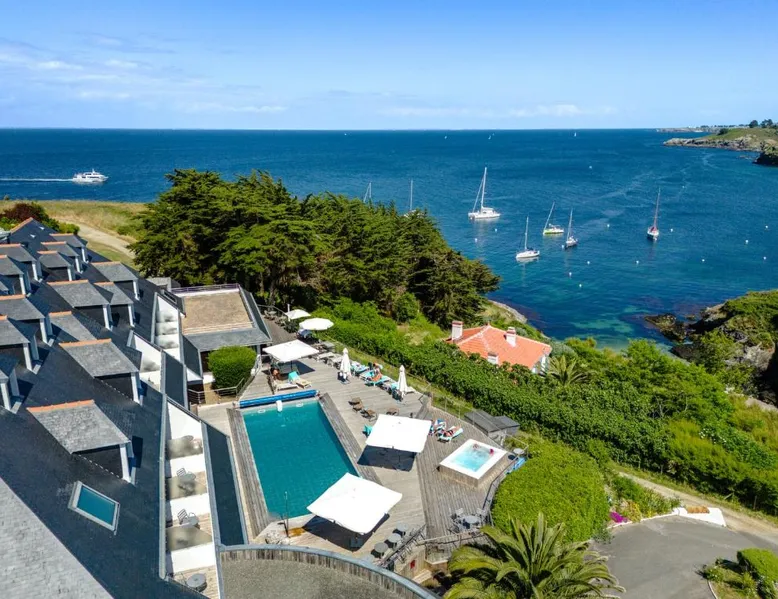 Le Cardinal is located on Sauzon Bay, on the coast of Brittany. It has an outdoor swimming pool, a children’s playground and there is a small beach at the foot of the hotel. Guest rooms at Le Cardinal Hotel are equipped with cable TV, free Wi-Fi and a private bathroom. Some rooms also overlook the Bay of Sauzon. The Cardinal serves regional cuisine and offers a vegatarian buffet every evening. Guests can enjoy their meal with panoramic sea views. Free private parking is provided on site. This family room provides a pool with a view. Providing free toiletries, this family room includes a private bathroom with a walk-in shower and a hairdryer. This family room features a wardrobe, heating and a flat-screen TV with cable channels. The unit offers 3 beds.