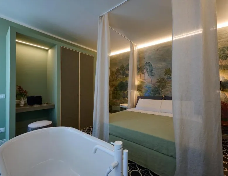 Comfortable Accommodations: Villa Marengo Guest House in Spinetta Marengo offers family rooms with private bathrooms, air-conditioning, and free WiFi. Each room includes a tea and coffee maker, work desk, and TV. Relaxing Facilities: Guests can enjoy a sauna, terrace, and outdoor play area. Additional amenities include a balcony with garden or city views, spa bath, and outdoor seating. Convenient Services: The guest house provides private check-in and check-out, daily housekeeping, room service, and luggage storage. Free on-site parking is available, and Genoa Cristoforo Colombo Airport is 50 mi away. Nearby Attractions: Santa Trinita is a 6-minute walk, Castello di Marengo 1.2 mi, and Genoa Cristoforo Colombo Airport 50 mi away. This air-conditioned double room is consisted of of a flat-screen TV with cable channels, a private bathroom as well as a balcony with garden views. The unit has 1 bed.