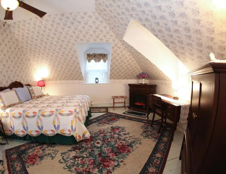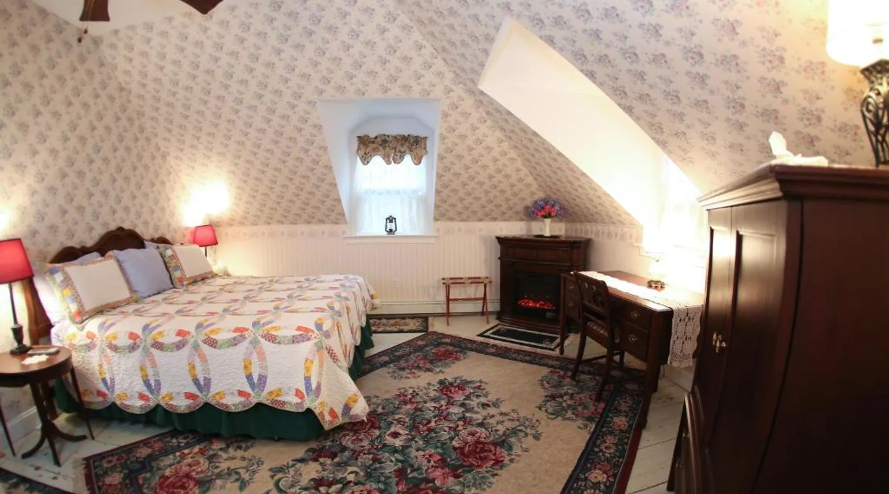 Historic Setting: Center Harbor Sutton House B & B in Center Harbor offers a historic building with a swimming pool, sun terrace, and lush garden. Guests enjoy free WiFi, ensuring connectivity during their stay. Comfortable Accommodations: Rooms feature air-conditioning, private bathrooms, and balconies with scenic views. Additional amenities include a solarium, indoor and outdoor play areas, and free on-site parking. Delicious Breakfast: A variety of breakfast options are available, including American, vegetarian, and gluten-free selections. Guests appreciate the quality and variety of local specialties, fresh pastries, and warm dishes. Activities and Services: The property offers fishing, skiing, hiking, and cycling. Services include private check-in and check-out, concierge, and paid airport shuttle. Lebanon Municipal Airport is 58 mi away. This room features a gas fireplace, cable TV and an private bathroom.