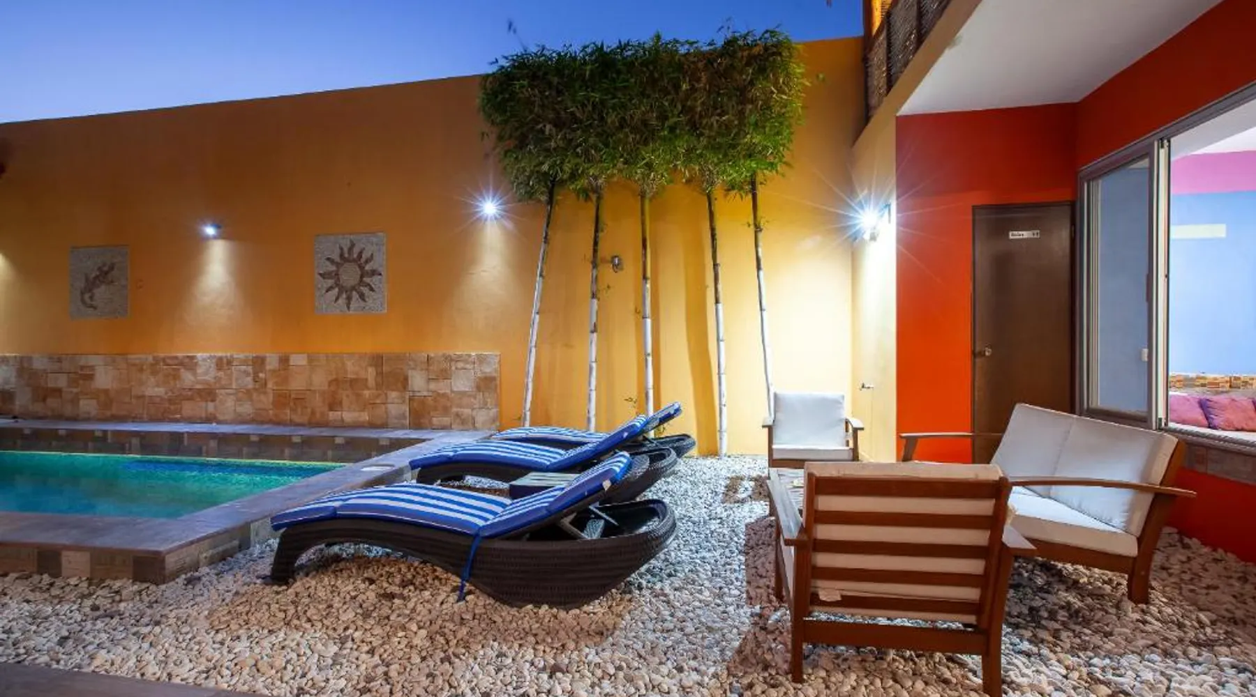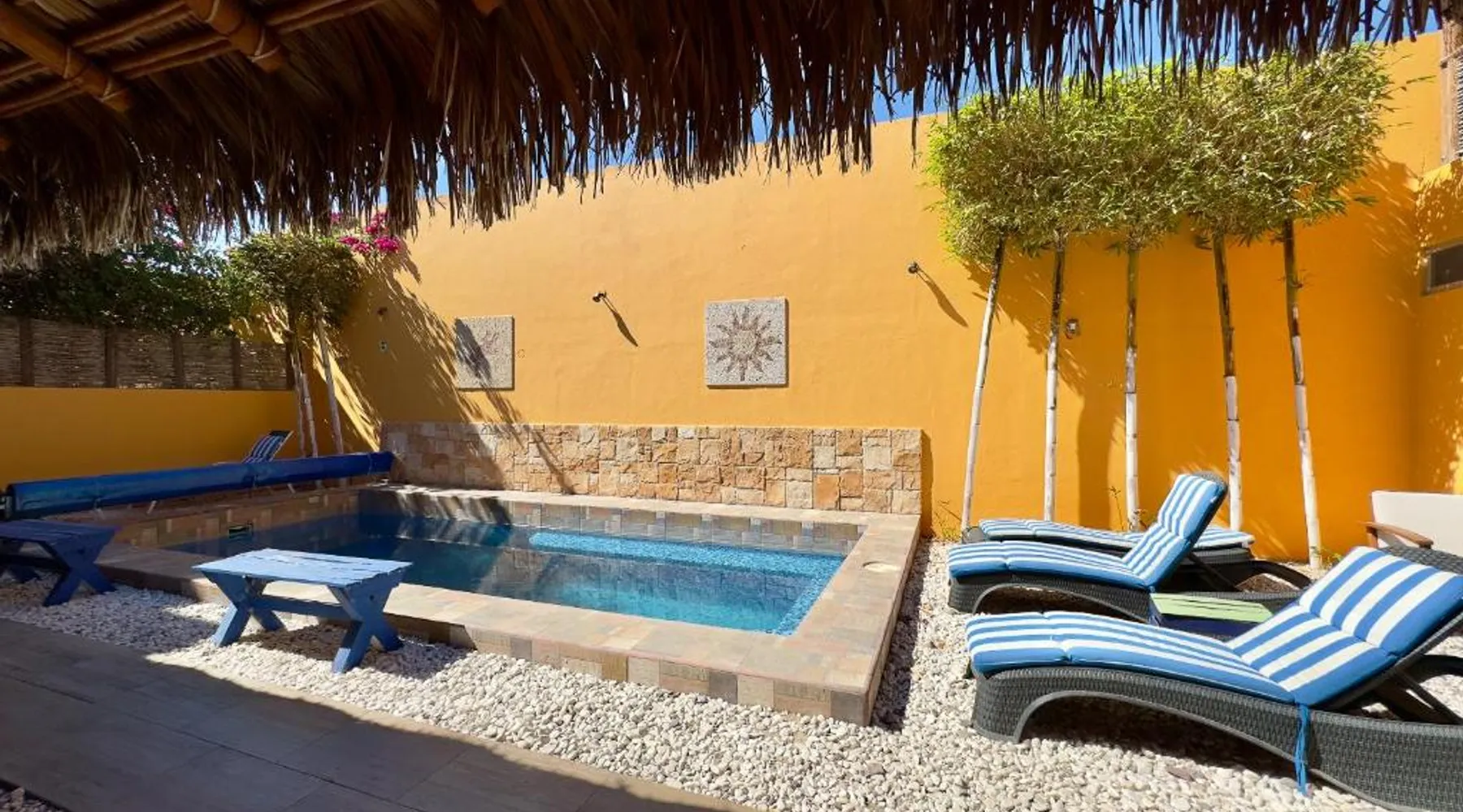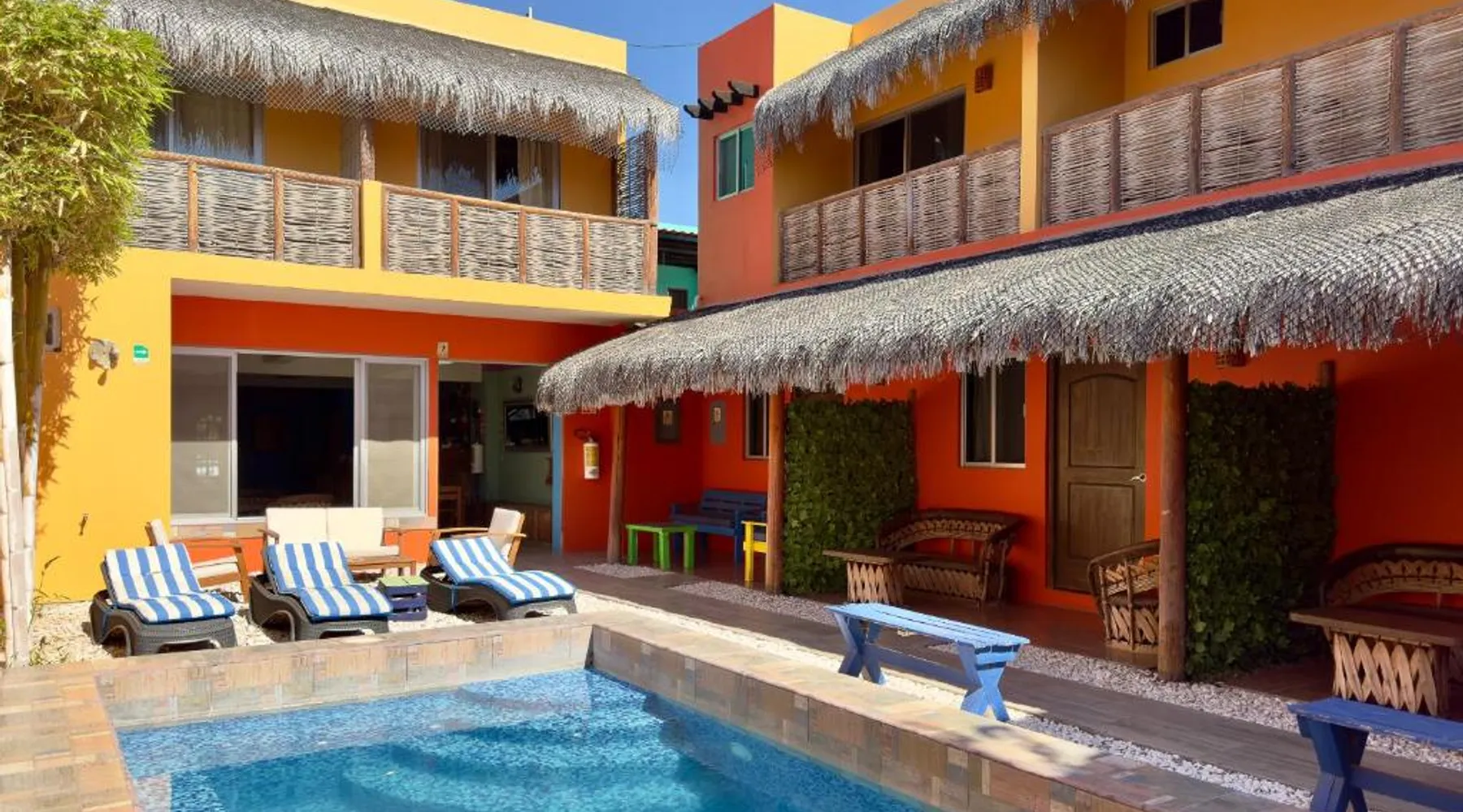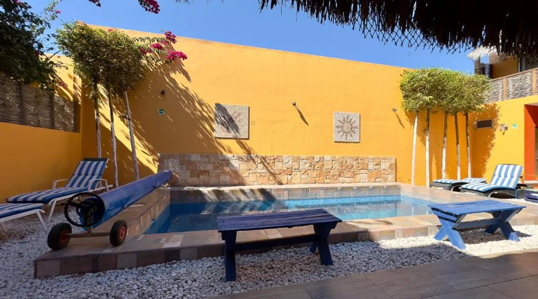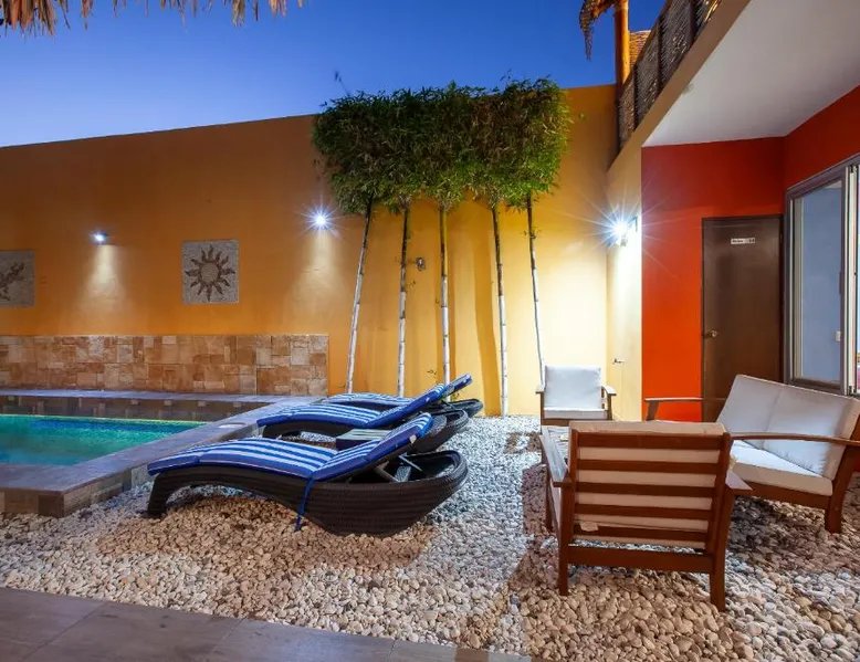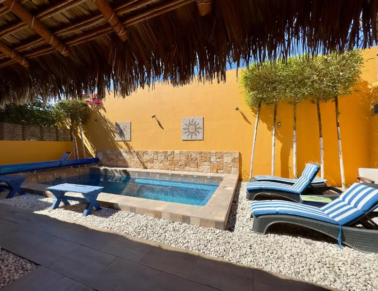 Offering a year-round outdoor pool and views of the pool, Casa Juarez B&B is located in La Paz. Certain rooms include a seating area to relax in after a busy day and a fridge. Rooms come with a private bathroom equipped with a shower. For your comfort, you will find free toiletries and a hairdryer. This accommodations features free WiFi and private parking. A flat-screen TV is provided. There is ticket service at the property. Manuel Márquez de León International Airport is 6.2 mi away. This one bedroom suite features a small kitchen, a balcony overlooking the pool, TV, ceiling fan and air conditioning. This room features a heated pool.