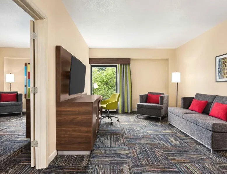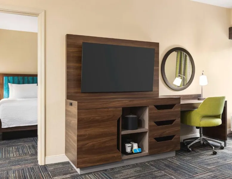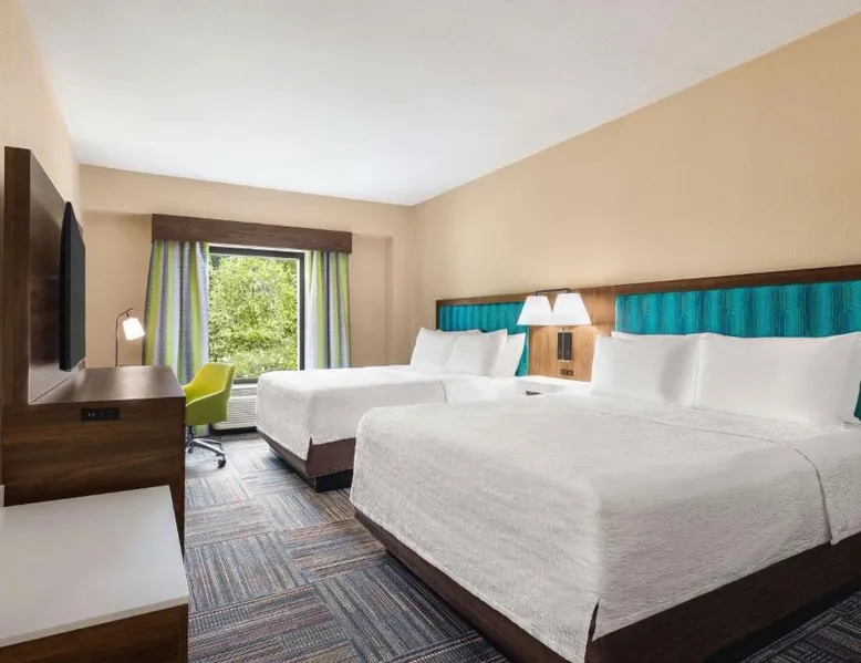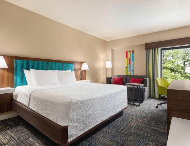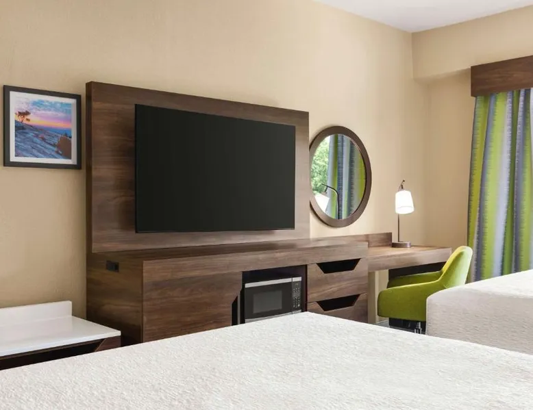 Comfortable Accommodations: Hampton Inn Atlanta-Stone Mountain in Stone Mountain offers comfortable rooms with free WiFi, air-conditioning, and modern amenities. Each room includes a tea and coffee maker, hairdryer, refrigerator, free toiletries, microwave, shower, TV, and kitchenware. Leisure Facilities: Guests can enjoy an outdoor swimming pool, fitness room, and a elevator. The hotel provides a 24-hour front desk, free on-site parking, and a seating area with a sofa bed. Convenient Location: Located 2.7 mi from Historic Stone Mountain Village, 6.2 mi from Marta-Indian Creek Station and Stone Mountain Carving, and 12 mi from Atlanta Botanical Garden and FOX Theater. Nearby attractions include Bradley Observatory and Martin Luther King Jr. National Historic Site. Guest Services: Guests appreciate the attentive staff, delicious breakfast provided by the property, and the cleanliness of the rooms. This room features cable TV and coffee-making facilities.