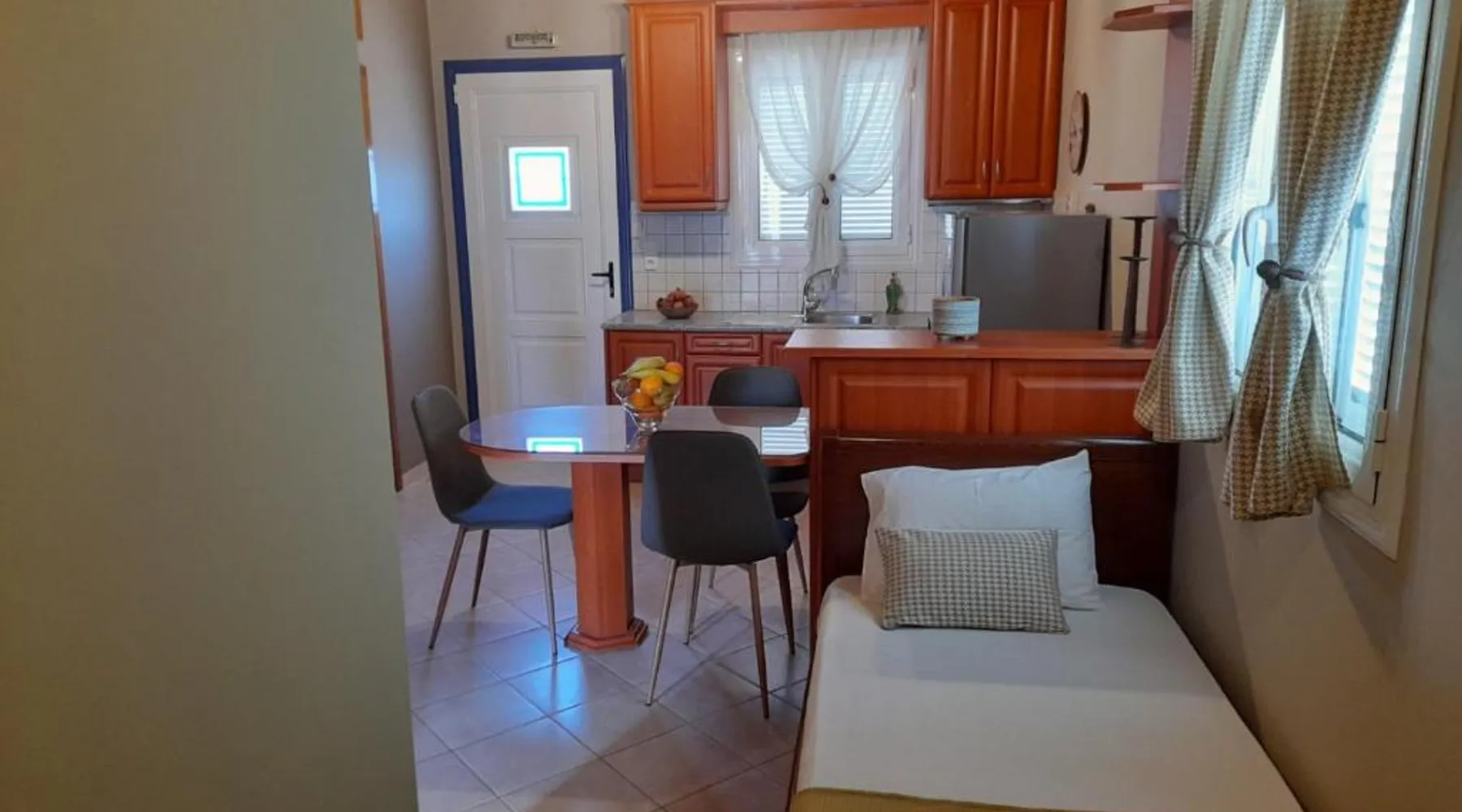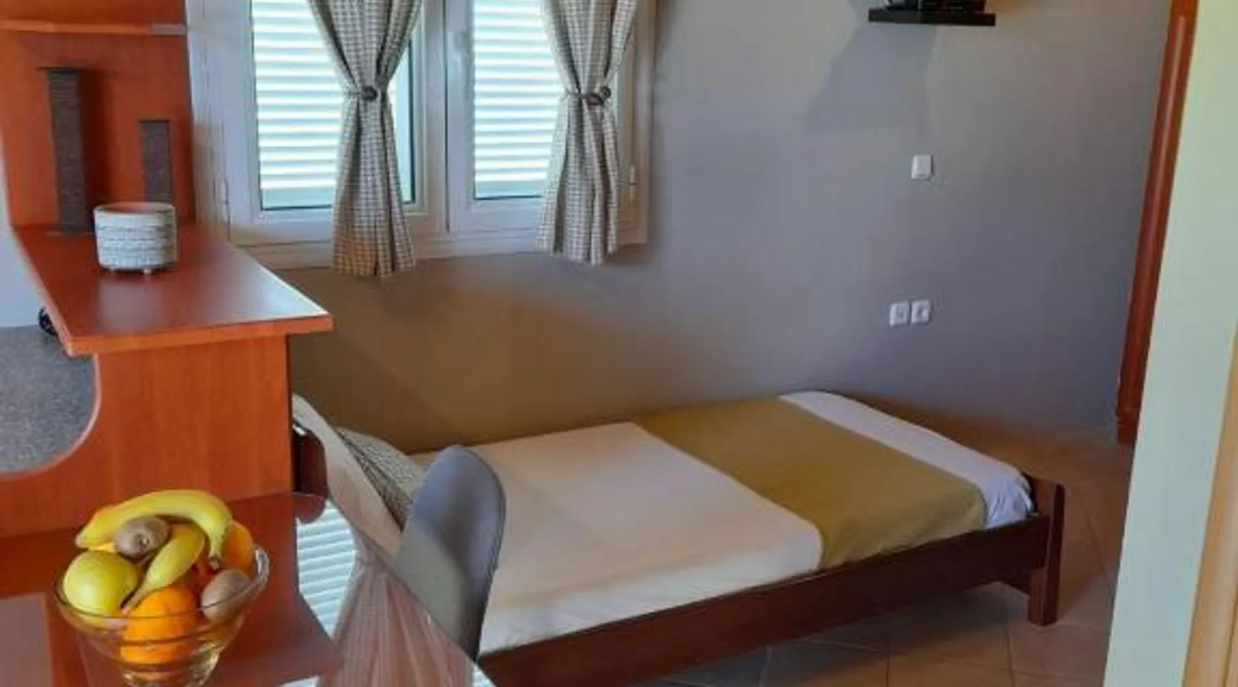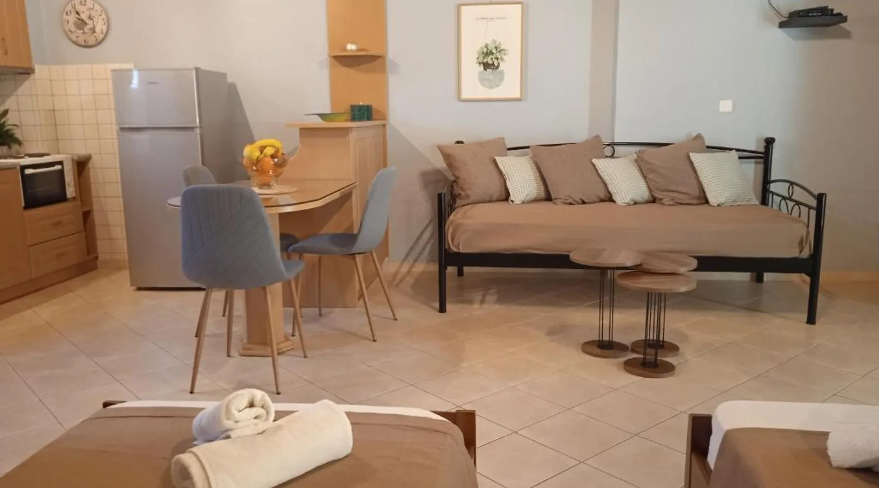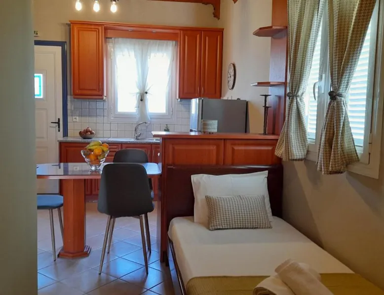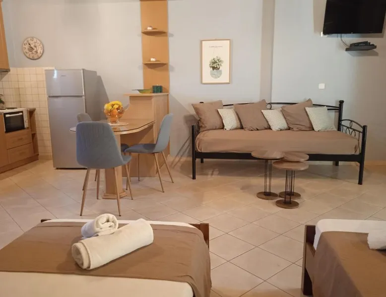 Comfortable Accommodations: Katerina house in Finikounta offers a sun terrace, garden, and free WiFi. The apartment features air-conditioning, a balcony, and a private bathroom with a walk-in shower. Modern Amenities: Guests enjoy a fully equipped kitchen, barbecue, and outdoor dining area. Additional amenities include a sofa bed, TV, and soundproofing. Convenient Location: Located 29 mi from Kalamata International Airport, the property is a 2-minute walk from Mavrovouni Beach. Nearby attractions include the children's playground and picnic area. Guest Satisfaction: Highly rated for beach access, room cleanliness, and convenient location. Guests will find a stovetop, a refrigerator, kitchenware and an oven in the fully equipped kitchen. The studio also features a barbecue. This air-conditioned studio is consisted of of a flat-screen TV with cable channels, a private bathroom as well as a terrace with garden views. The unit has 3 beds.