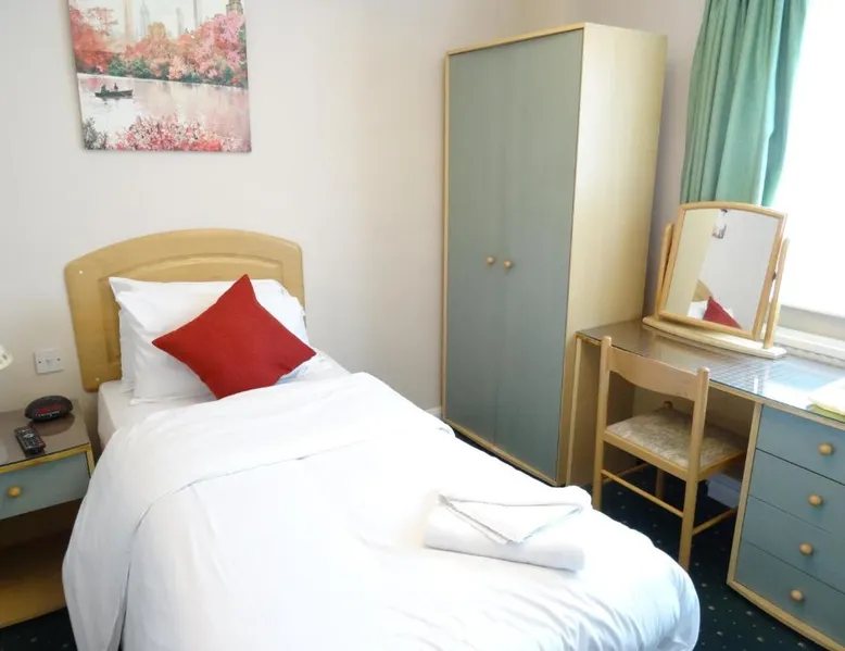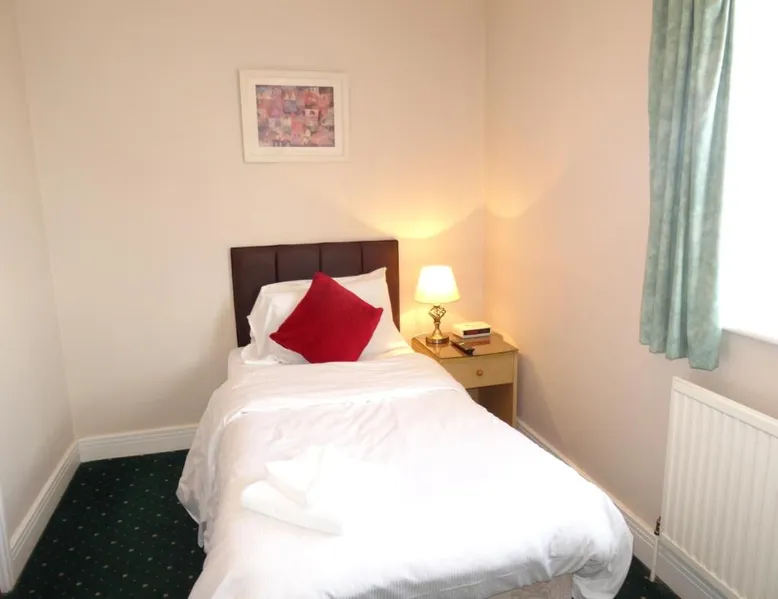 Comfortable Accommodations: AJ Lodge in Slough offers family rooms with private bathrooms, carpeted floors, and modern amenities including free WiFi, a work desk, and a TV. Each room includes a tea and coffee maker, electric kettle, and free toiletries. Delicious Breakfast: Guests enjoy a continental or full English/Irish breakfast with warm dishes, fresh pastries, fruits, and juice. Vegetarian options are available, ensuring a satisfying start to the day. Convenient Facilities: The property features a lounge, housekeeping service, bicycle parking, and free on-site parking. Additional amenities include a work desk, wardrobe, and free toiletries. Prime Location: Located 9.9 mi from London Heathrow Airport, AJ Lodge is near attractions such as Windsor Castle (3.7 mi), Legoland Windsor (5 mi), and an ice-skating rink. Highly rated for its breakfast, staff, and room cleanliness. This single room includes a flat-screen TV with cable channels and a shared bathroom. The unit offers 1 bed.