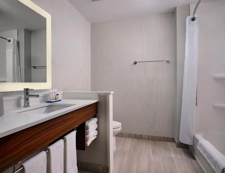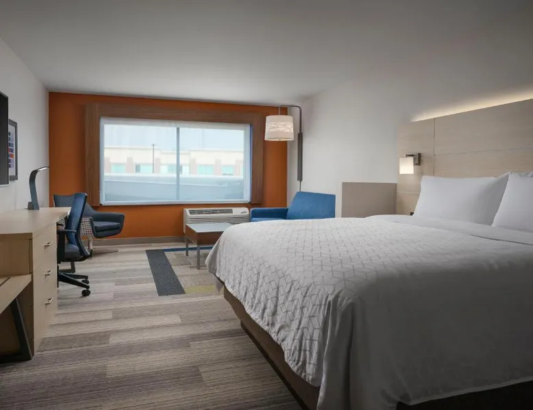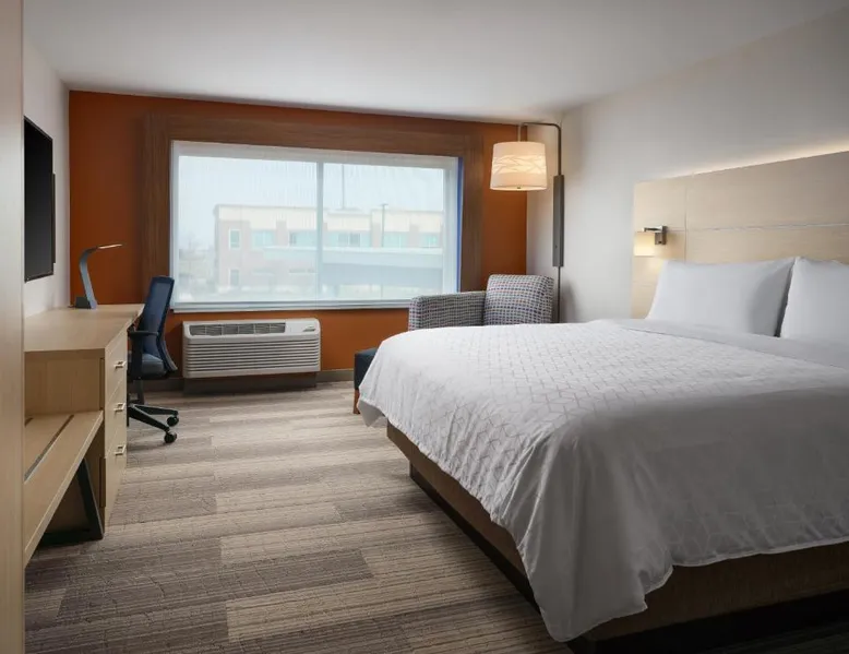 Comfortable Accommodations: Holiday Inn Express & Suites - Lockport by IHG in Lockport offers spacious rooms with air-conditioning, private bathrooms, and free WiFi. Guests enjoy amenities such as tea and coffee makers, hairdryers, and work desks. Leisure Facilities: The hotel features a fitness center, terrace, indoor swimming pool, and outdoor seating area. Additional facilities include a lounge, business area, and child-friendly buffet. Convenient Location: Located 25 mi from Midway International Airport, the property is near attractions like Joliet Area Historical Museum (7.5 mi) and Chicagoland Speedway (16 mi). Free on-site private parking is available. Guest Satisfaction: Highly rated for room cleanliness, breakfast provided by the property, and room size. The spacious double room offers air conditioning, a tea and coffee maker, as well as a private bathroom featuring a bath and a shower. The double room features a wardrobe, tumble dryer, a carpeted floor, heating, as well as a flat-screen TV. The unit offers 2 beds.