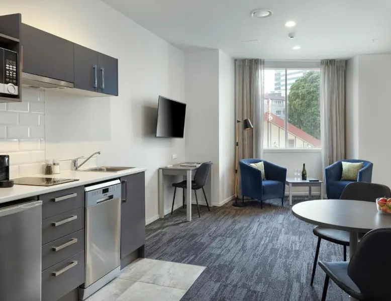 Rebuilt in 2014, Quest on Thorndon offers art deco-style apartments with free WiFi and a fully equipped kitchen. Guests receive free access to the CityFitness gym located next to the property. Quest on Thorndon Apartments are located in the government district of Thorndon, just 2 minutes' walk from Sky Stadium and Central Station. It is one of the closest accommodations options from the Interisland Ferry Terminal, just 1.2 mi away. The air-conditioned apartments feature a dining area and laundry facilities. Each one Bedroom apartment offers a separate lounge area where you can relax after a day of sightseeing. An iPod docking station and a flat-screen TV with free movie channels is provided. This air-conditioned apartment features a fully equipped kitchen with a dishwasher, a dining setting and laundry facilities. It includes a flat-screen TV with free movie channels.