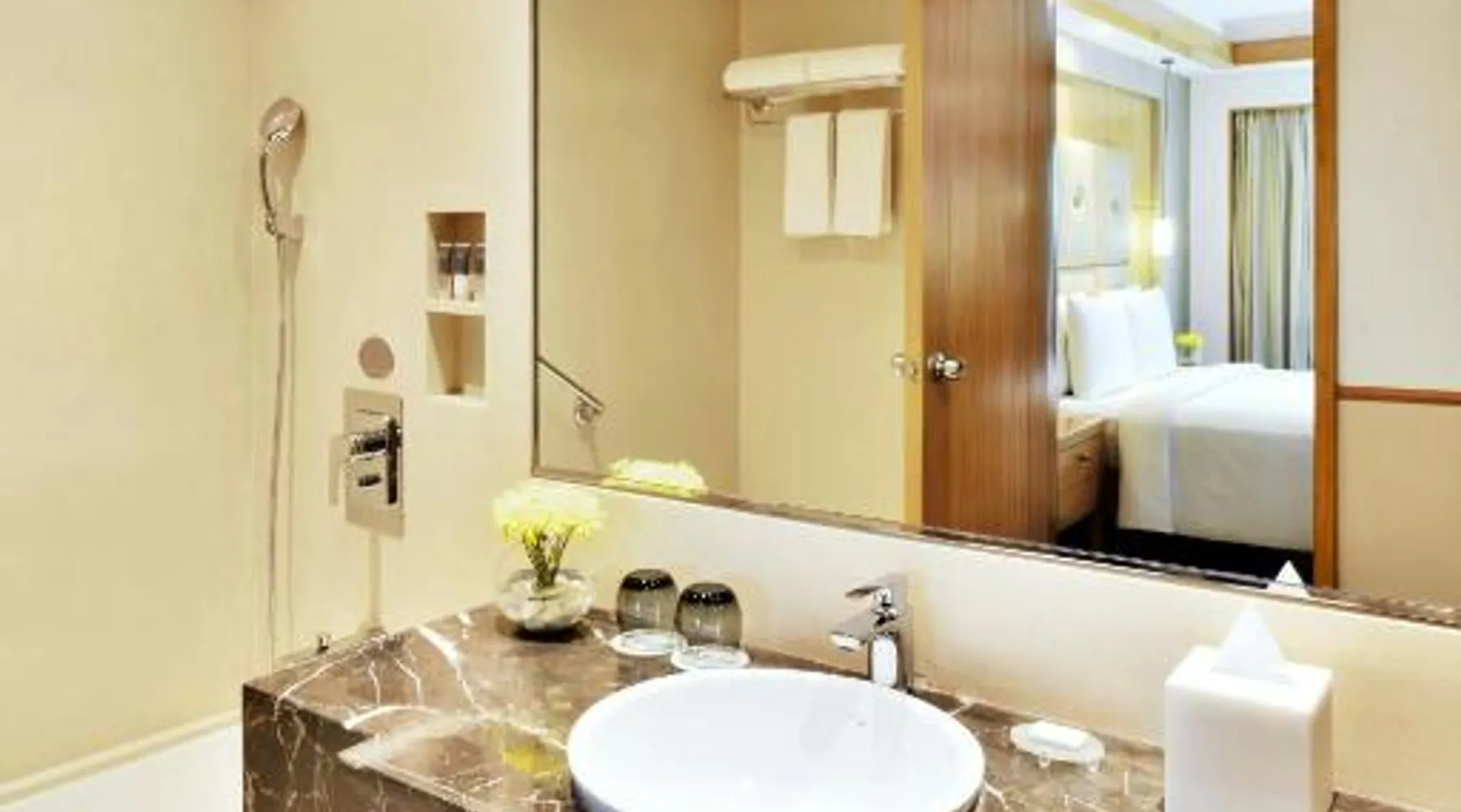 Courtyard by Marriott is located in Chennai’s central business district, a 15-minute drive from Marina Beach. It offers newly renovated rooms, a spa, 24-hour fitness center, take a complimentary steam or a jacuzzi to relax and 3 dining options. Guests enjoy free parking. Modern décor and hardwood furnishings feature throughout the air-conditioned guestrooms. All rooms at Marriott Courtyard have a seating area and a flat-screen TV. Paprika restaurant serves a fine selection of international dishes, and is available for all-day dining. Other dining choices at Rhapsody restro-bar and fresh baked breads at Muffin Tree. For convenience, the hotel provides currency exchange and car rental services. Courtyard Marriott is 1.4 mi from Thousand Lights Mosque, 1.4 mi from the US Consulate and 1.3 mi from Spencer’s Plaza. Madras Central Station is 3.7 mi from the hotel. The Chennai International Airport is 9.3 mi. Modern décor and hardwood furnishings feature throughout the air-conditioned newly renovated guestrooms. All rooms at Courtyard by Marriott Chennai have a seating area and a flat-screen TV. A bathtub and hot shower are provided. Additional benefits: - Lounge access - Afternoon tea & dessert - Nonalcoholic beverage